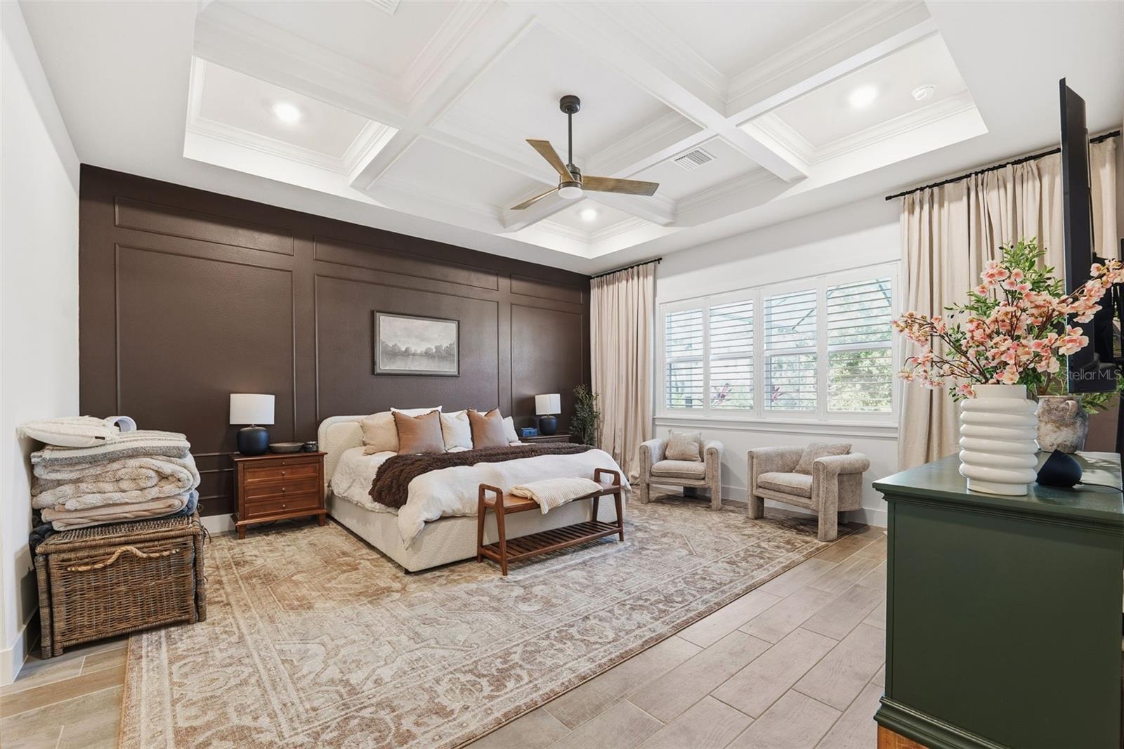 - Chair Rail, Coffered Ceiling(s), Crown Molding, Pest Guard System, Smart Home