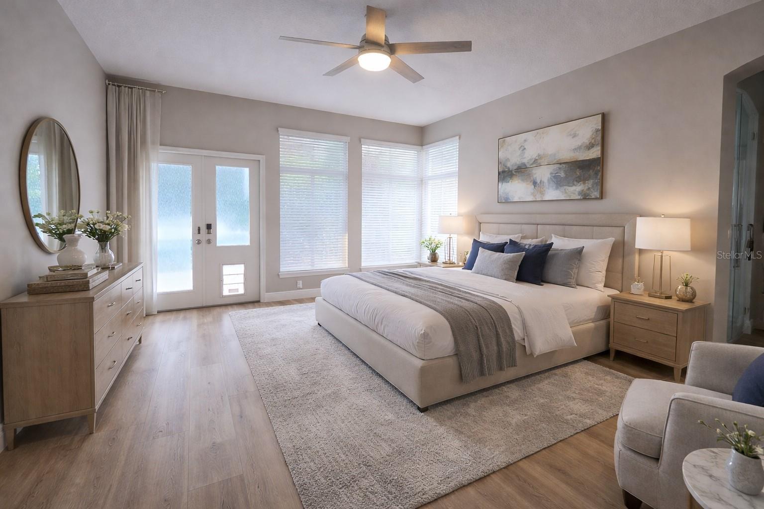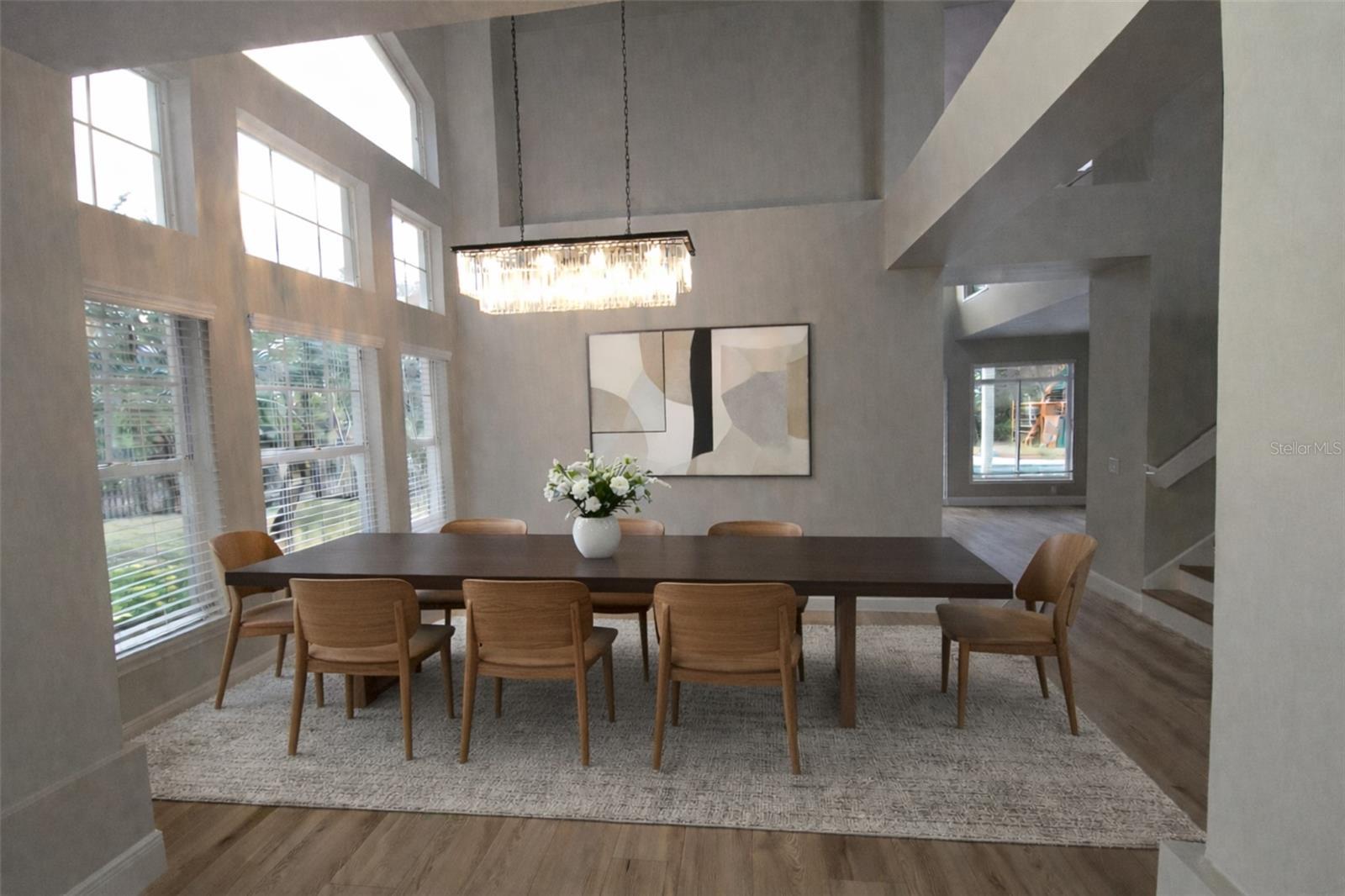 Under contract-accepting backup offers. One or more photo(s) has been virtually staged. Beautifully renovated two-story home on a quiet cul-de-sac in gated HUNTER'S GREEN (village of Wynstone). Featuring soaring ceilings, luxury vinyl plank flooring throughout, updated kitchen with quartz countertops, 42" cabinets and induction cooktop, custom bar with wine cooler, and two fireplaces. First floor primary suite with spa-style wet-room bath. Oversized saltwater pool & spa, fully fenced yard backing to conservation on over 1/3 acre. Loft, private office with separate entrance, plus flex space allow the home to live like 4-5 bedrooms. Thoughtfully presented to be a place where family, friends, and memories naturally come together. Ideal for family living and entertaining - this home checks all the boxes!