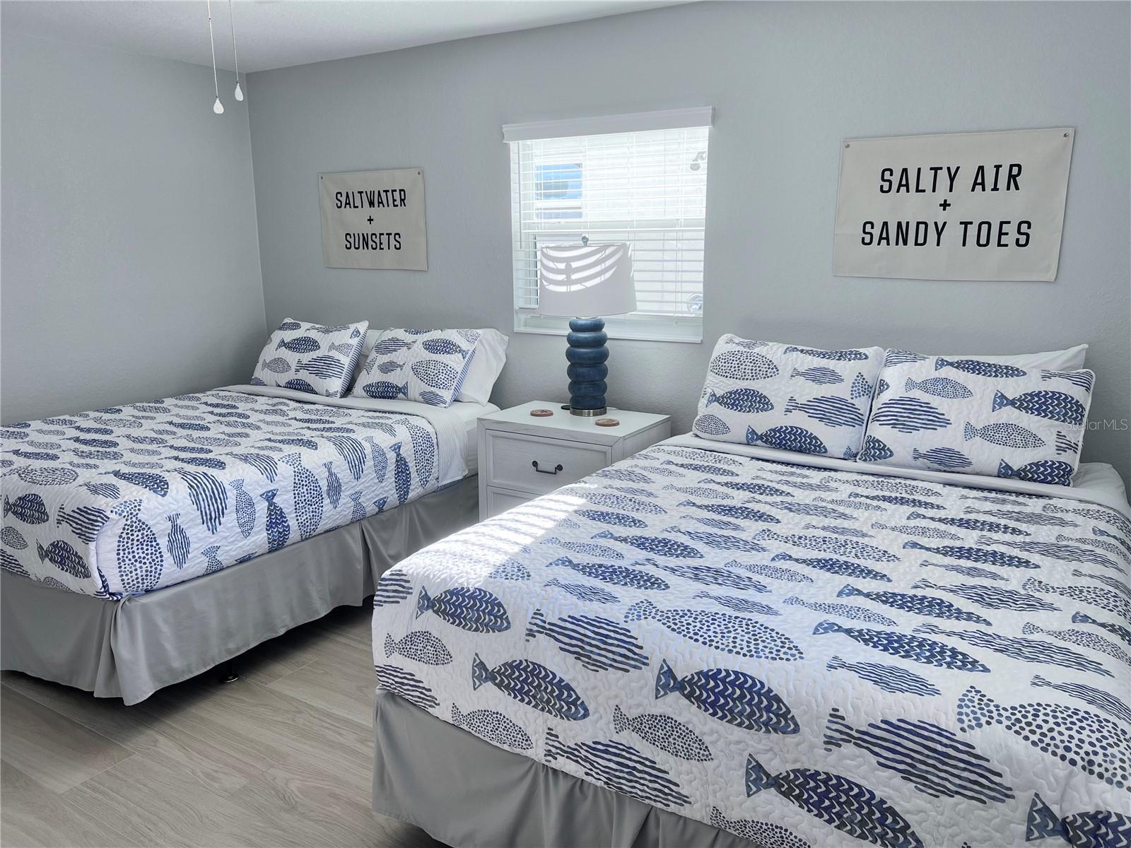 Enjoy your beach vacation in this beautiful large 2 bedroom, 2 bathroom private villa. Located halfway between the private beach and the pool/clubhouse. This unit can sleep up to 6 comfortably. Flat screen HD TV's in the living room and in each bedroom and ceiling fans throughout. Updated with tile throughout, and fully appointed kitchen with new stainless steel appliances. Roomy master bedroom with 1 queen bed and 1 full bed. Second bedroom with a king bed. Two recently renovated bathrooms with walk in showers and vanities with granite counter tops. Queen size sleeper sofa in spacious living room. Large screened in lanai and outdoor hot/cold shower. In unit wireless private WIFI. Casa Blanca is within a short distance of Crescent Beach Village restaurants and shops, with Siesta Key Village just a short drive north on the key.