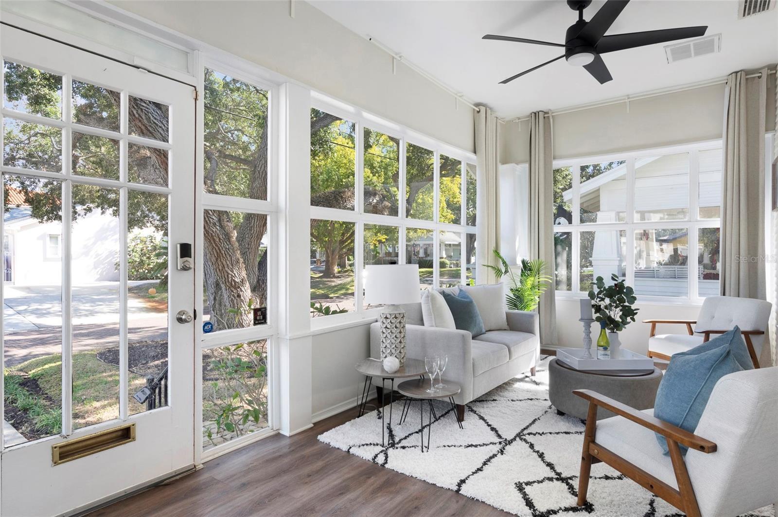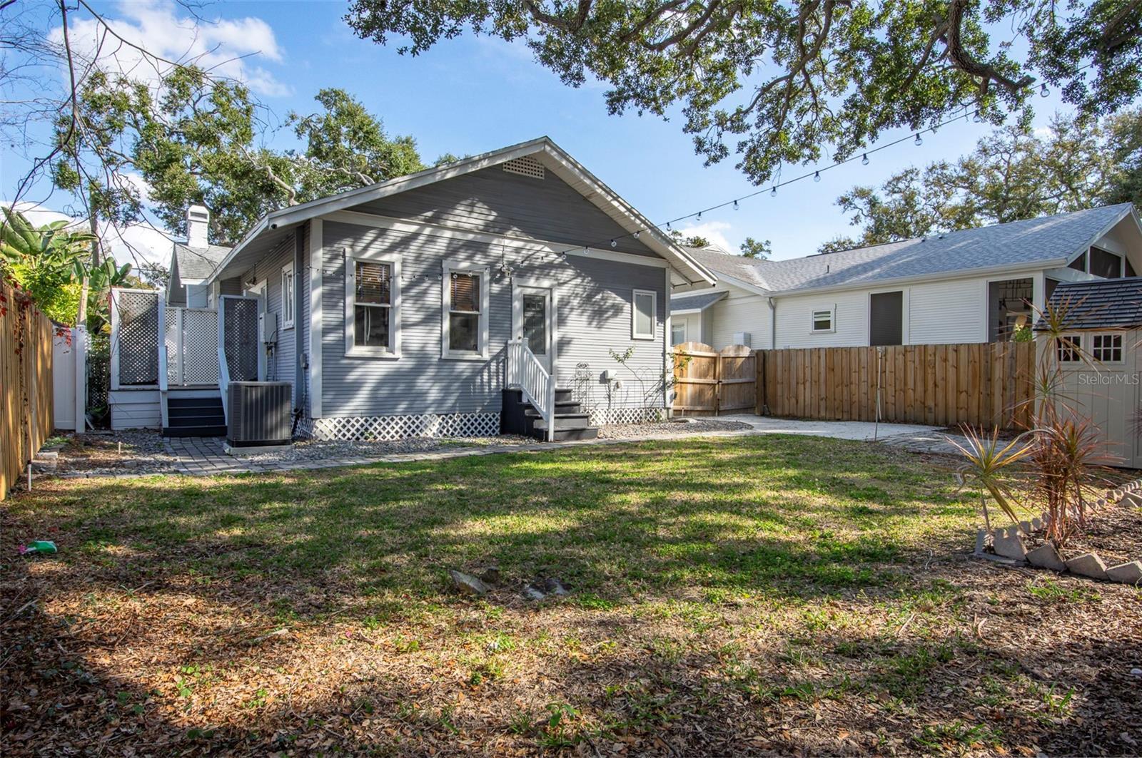 This well-maintained 1922 bungalow is located on a charming brick-lined street in the highly desirable Palma Ceia Park neighborhood, within the sought-after Plant High School district. The property is located in FEMA Flood Zone X, and no flood insurance is required. Seller reports no flood damage during recent storms, including Hurricanes Helene and Milton. The home offers an exceptional walkable lifestyle, just a short stroll to Bayshore Boulevard as well as the restaurants, cafés, and shops along Bay to Bay Boulevard and MacDill Avenue, including neighborhood favorites such as Buddy Brew Coffee and Chill Bros Ice Cream. Inside, the home is filled with abundant natural light from large windows throughout, creating a bright and welcoming atmosphere. Timeless architectural details include crown molding throughout the home and built-in bookshelves that add both character and functionality. French doors open to a lattice-enclosed deck, providing a comfortable space for outdoor dining, relaxing, or entertaining year-round. The primary bedroom suite and second bedroom both feature sizable closets and custom plantation shutters, offering privacy and classic style. The second bathroom includes a beautiful antique clawfoot bathtub that adds historic charm and elegance to the space. Significant recent updates provide peace of mind, including a brand new high-end HVAC system installed in 2024 and structural enhancements completed in 2021. Termite treatment is professionally maintained on a monthly preventative basis, and the mature trees on the property are routinely monitored and trimmed. Outside, the fenced-in yard provides privacy and flexibility for outdoor living. A storage shed offers additional convenience, while the long driveway extends from the front of the property all the way to the back, a rare and valuable feature for the area. This classic South Tampa bungalow offers historic charm, thoughtful maintenance, an unbeatable location, and modern upgrades in one of the city’s most beloved neighborhoods.