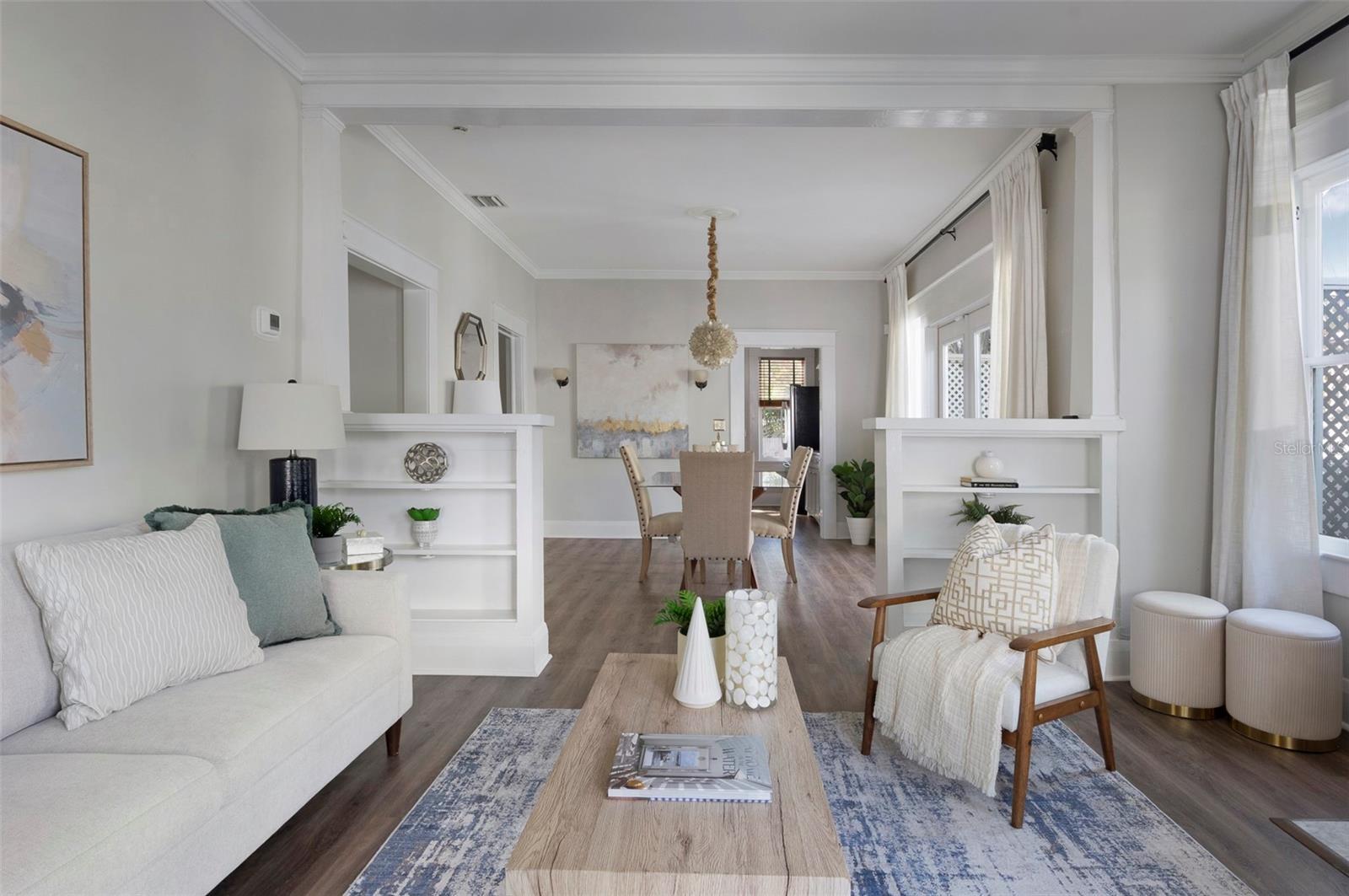 - Built-in Features, Ceiling Fans(s), Crown Molding, Thermostat, Window Treatments