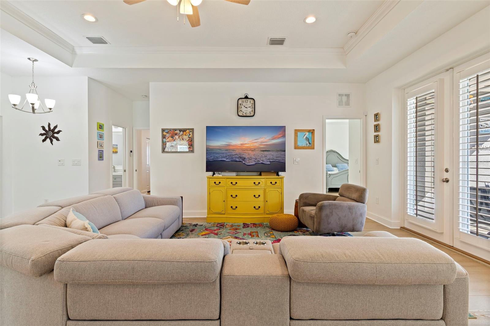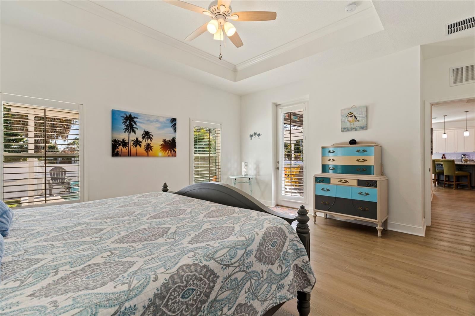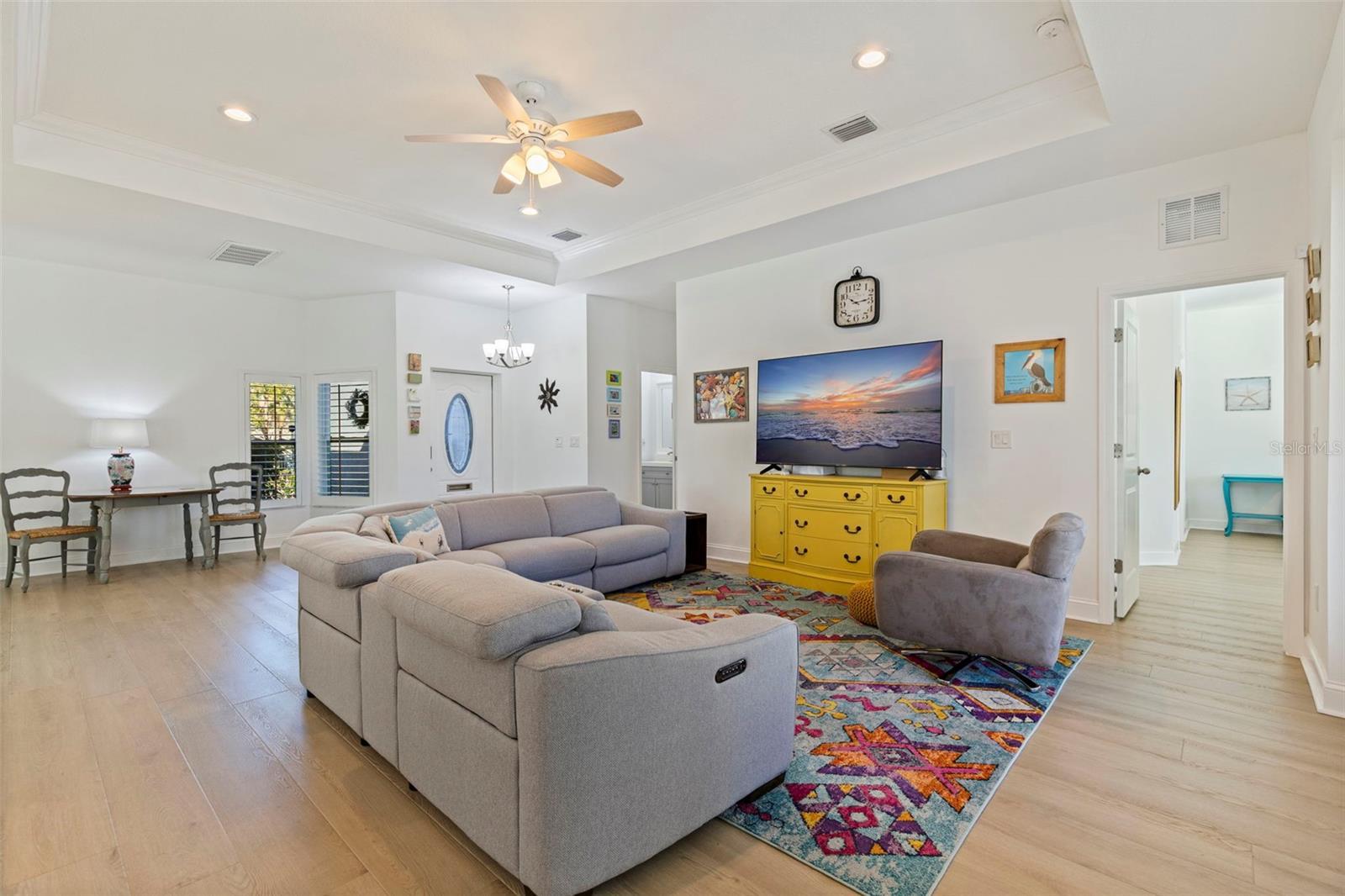 - Ceiling Fans(s), Crown Molding, High Ceilings, Kitchen/Family Room Combo, Primary Bedroom Main Floor, Split Bedroom, Stone Counters, Thermostat, Tray Ceiling(s), Walk-In Closet(s)