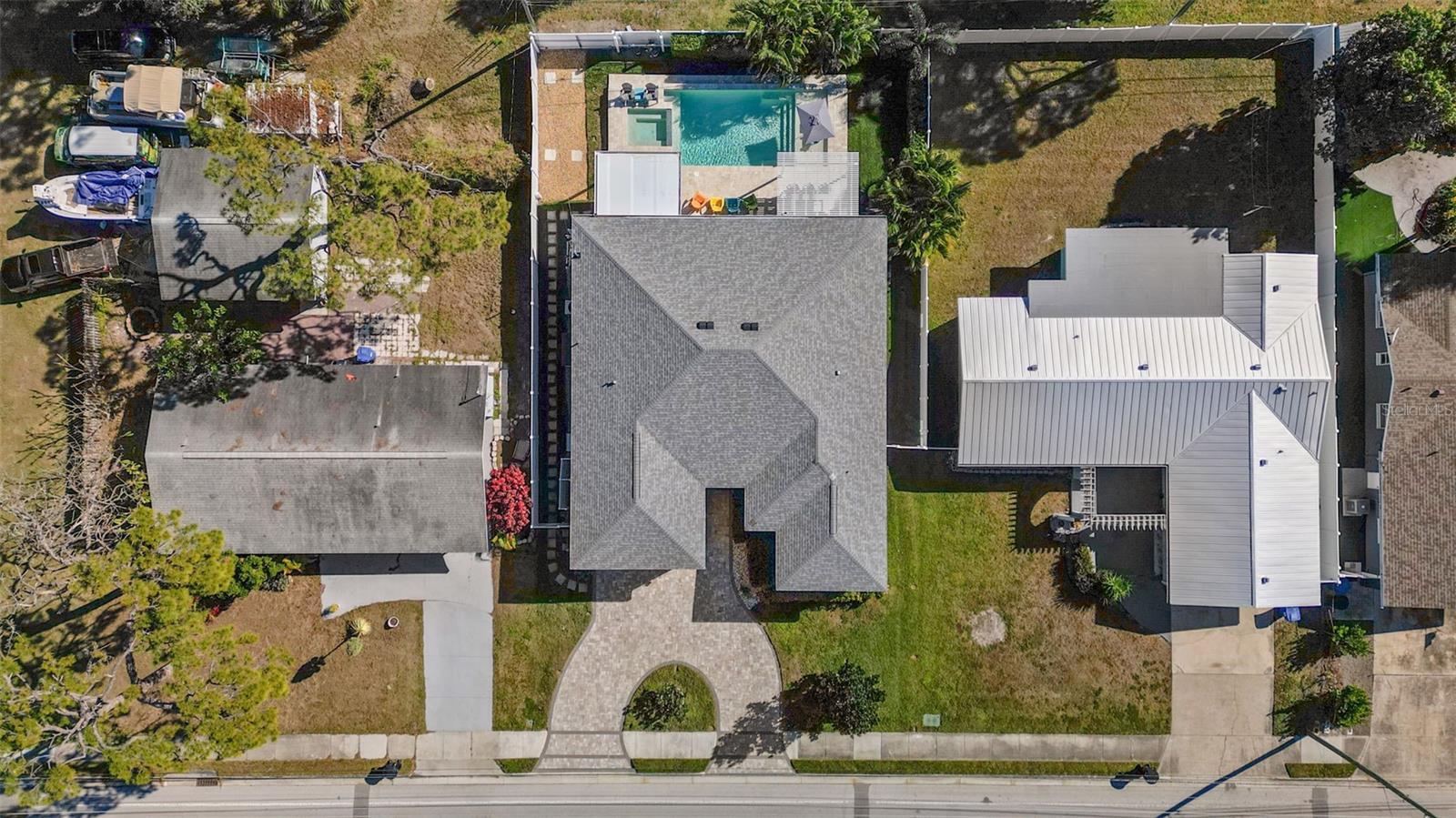 Beautifully Upgraded Elevated Home in Pinellas Point just blocks from Maximo Park. The “Sunshine House” is a 2020 custom home with 4 beds and 2.5 baths. Built to hurricane standards, impact windows and elevated to 13 feet, this home offers peace of mind along with exceptional indoor/outdoor lifestyle. The private primary suite is thoughtfully positioned on one side of the home with a spa bath, freestanding soaking tub, water closet, walk-in shower, and an impressive 12’ x 8’ walk-in closet with a security system panic button. The opposite wing offers three generously sized bedrooms. Spacious guest bath with double vanity. The great room, family room, and primary bedroom showcase tray ceilings with crown molding, while the remaining areas feature 9’4” ceilings, creating an open and airy feel throughout. Eight-foot French glass doors open to a covered rear porch overlooking a backyard with an oasis of greenery and an alleyway for added privacy. Interior features include impact-rated windows and doors. Guest half bath features pocket door as well as several other well placed pocket doors throughout the home. The kitchen features granite countertops, a large center island, walk in pantry, under cabinet lighting, stainless-steel farm-sink, garbage disposal, microwave, LG appliance package including stainless flat-top range/oven, and fridge with ice and water dispenser. Significant owner upgrades elevate this home well beyond new construction. Luxury CALI High Tide vinyl plank flooring, along with whole-house plantation shutters, upgraded USB charging outlets, and a state-of-the-art 2024 Daikin high-efficiency HVAC system, 4 ton, 18 Seer, advanced air purification using ultraviolet technology to reduce mold, viruses, and bacteria. Spacious indoor laundry. The backyard has been transformed into a private resort-style retreat, custom designed concrete salt water pool and spa with tile and pebble-tech finish, fountain, seating shelf areas, electric heat pump, travertine paver deck, and Wi-Fi-controlled Pentair system. Smart app available to instantly control pool heater before you dip in! A retractable screened back porch to shade you and create a room, covered patio, pergola, and a fully equipped outdoor bar with sink, refrigerator, water service, string lights dimmable with Alexa, and fans make this space ideal for entertaining year-round. Additional exterior enhancements include a 6-foot vinyl privacy fence with oversized rolling gate and dual side gates, professional landscaping with sod, fox tail palms, areca palms, private wells for irrigation, solar-powered security cameras, outdoor hose reels, pool storage Suncast shed mounted on a hurricane pad, and thoughtful stepping stones. Outdoor shower with privacy. For recreational flexibility, the property includes dedicated RV, boat or Jet Ski parking with concrete tire pads, a 30-amp RV outlet, and additional exterior electrical and USB outlets. Water Leak defense system installed with auto shut off. A two-car finished garage with opener, storage shelving, painted floor and a brick paver circular driveway. This meticulously maintained home combines modern construction, extensive custom upgrades, smart technology, and exceptional outdoor living in one of St. Petersburg’s most sought-after neighborhoods. Take a short stroll to O’Neills Marina, Loggerhead Marina, Sunshine Skyway Bridge and Maximo Park that provides 7 boat ramps, playground, disc golf course, trails, and shoreline fishing.