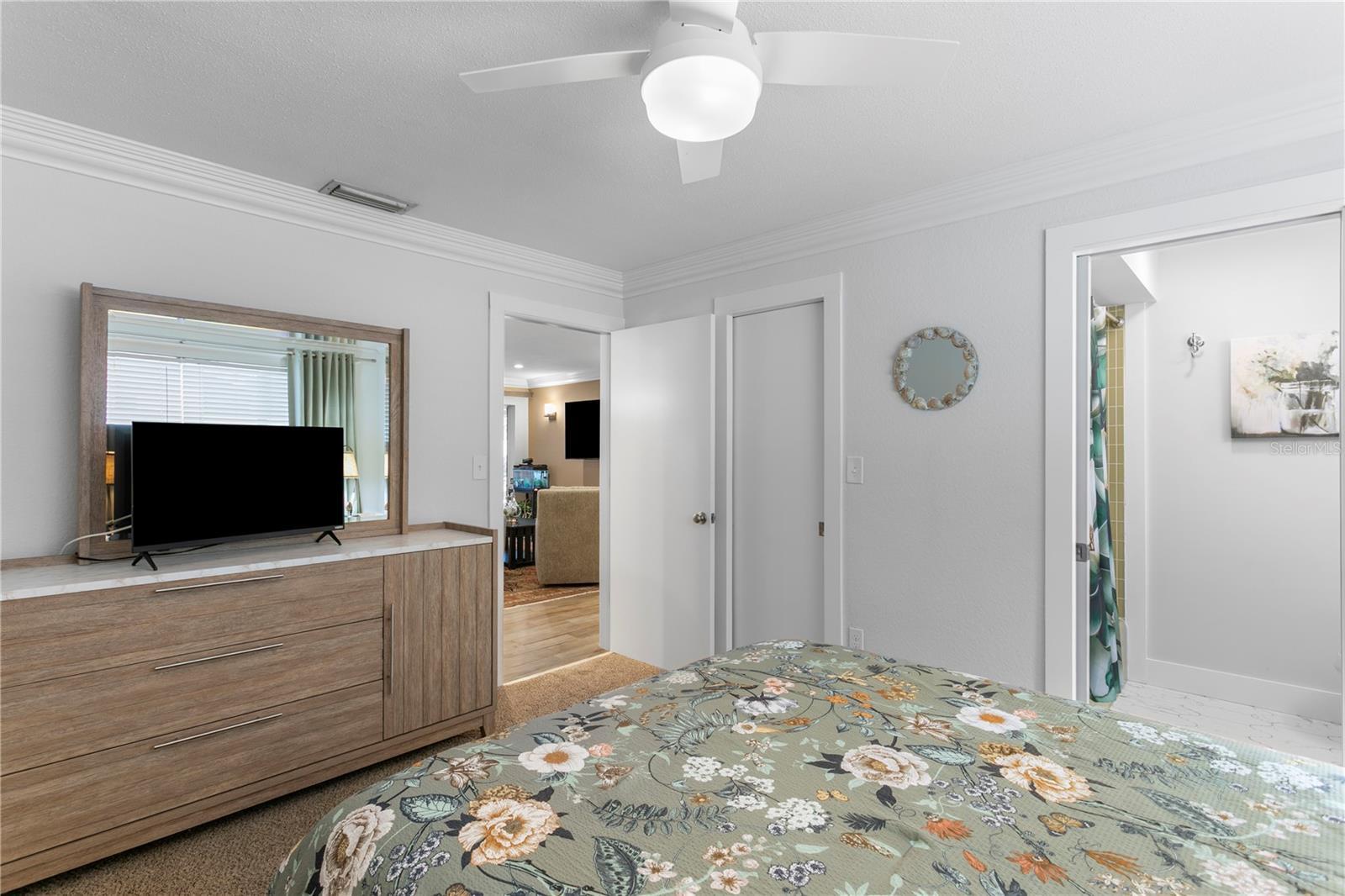 - Ceiling Fans(s), Crown Molding, Dry Bar, Living Room/Dining Room Combo, Primary Bedroom Main Floor, Stone Counters, Walk-In Closet(s), Window Treatments