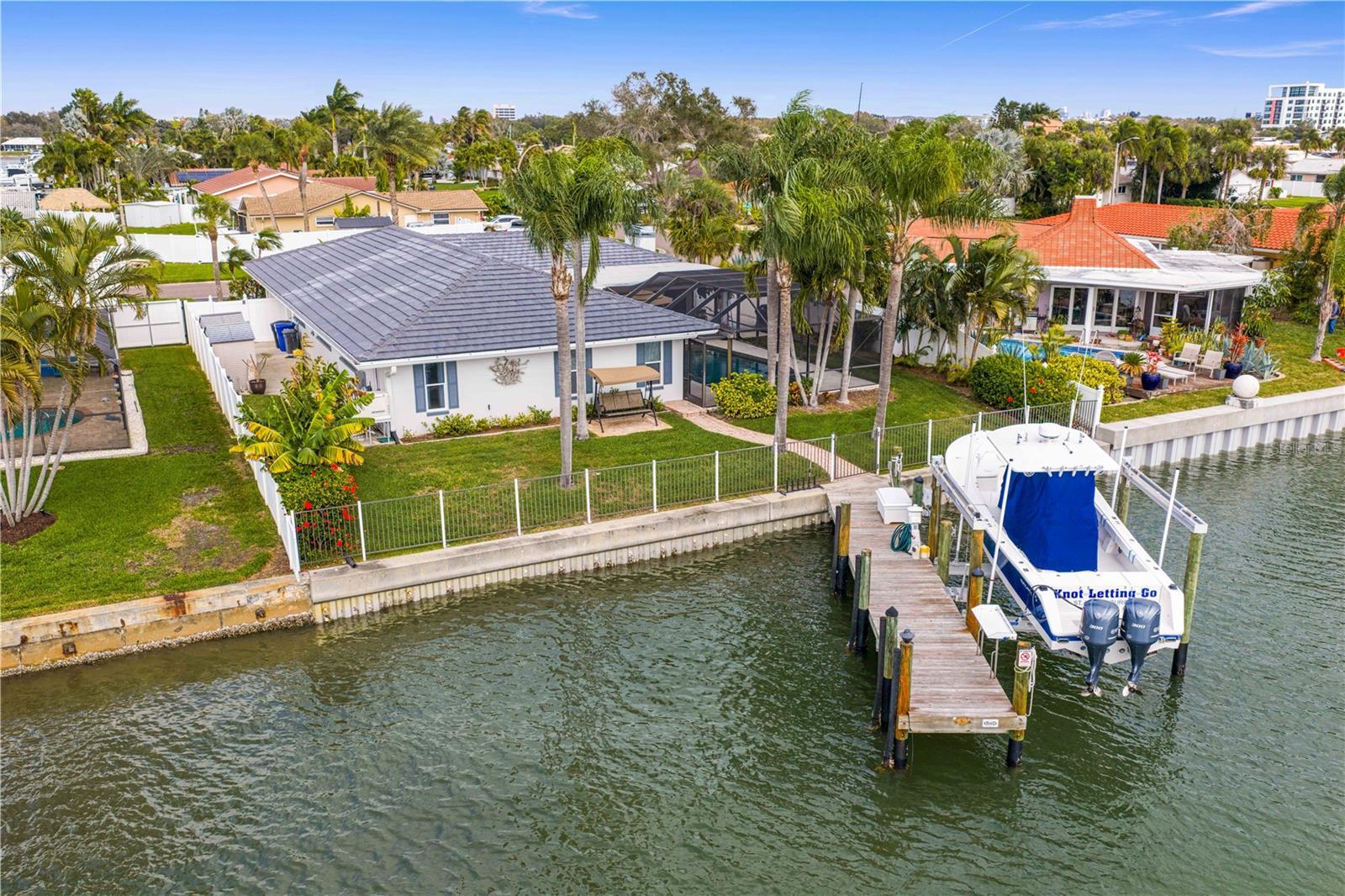 Under contract-accepting backup offers. Experience the FLORIDA COASTAL LIFESTYLE you’ve always dreamed of. This beautifully updated waterfront home offers a HEATED POOL, direct Intracoastal access, and a PRIVATE DOCK with a 16,000 lb lift plus space for a SECOND VESSEL—just minutes from open boating waters. From the moment you arrive, the home stands out with its lush landscaping, manicured lawn, PAVER DRIVEWAY, fresh exterior paint, and NEW ROOF. Sunlight dances across the exterior, hinting at the warmth and style waiting inside. Step through the welcoming foyer and into a living space designed for COMFORT AND ELEGANCE. Crown molding, thoughtfully placed lighting, and a COZY FIREPLACE create an inviting atmosphere perfect for relaxing or entertaining. The dining area flows seamlessly from the living room and overlooks both the pool and kitchen—an ideal setup for gatherings, whether you’re serving from the outdoor grill or your BEAUTIFULLY UPDATED KITCHEN. The kitchen truly is the heart of the home, featuring white shaker cabinetry, STRATEGIC TASK LIGHTING, upscale stone counters, stainless appliances, counter seating, and a VERSATILE ISLAND. When it’s time to unwind, the spacious family room offers the perfect spot to watch the game, complete with a custom entertainment bar, beverage fridge, ONYX COUNTER, and festive lighting. The primary suite is a luxurious retreat with serene views of both the Intracoastal and the pool. It includes a large closet and a FULLY UPDATED EN SUITE BATH with a curb-less walk in shower, designer mirrors, premium fixtures, and stylish lighting. FOUR ADDITIONAL BEDROOMS are bright and generously sized, including one with its own EN SUITE BATH. A beautifully updated full bath also serves the pool and guest rooms. The screened, HEATED POOL is a showstopper—surrounded by a travertine deck and designed for year-round enjoyment. For boaters, the private dock is fully equipped with ELECTRIC, WATER, a dock box, and a fish cleaning station. A personal security system and a WHOLE HOME GENERATOR give you PEACE OF MIND whether at home or away. With the Intracoastal, Boca Ciega Bay, and the Gulf just minutes away, this is a true BOATER"S PARADISE. All of this is located just minutes from Downtown St. Pete, world class beaches, restaurants, shops, and airports. A rare blend of LUXURY, LOCATION and COASTAL LIFESTYLE—this home truly has it all.
