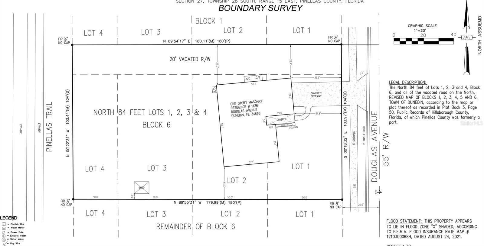 Rare MF-15 zoned development opportunity in the heart of Dunedin, directly fronting the Pinellas Trail and backing to a city park—one of the most desirable infill locations in Pinellas County. This ±0.43-acre assemblage (approximately 37,052 SF) consists of the north portions of Lots 1–4, Block 6, together with a fee-owned, vacated public right-of-way, creating a large, buildable site with flexible layout potential. The vacated right-of-way is part of the ownership and fully usable for development, enhancing site efficiency beyond typical Dunedin infill parcels. The property is surrounded by successful multifamily, residential, and mixed-use development, reinforcing both market demand and long-term value. Major advantage: The owner has met with the City of Dunedin, and up to four (4) multifamily units may be developed by right without the need for a City Development Order, resulting in significant time and cost savings. This streamlined approval path is rare in Dunedin and materially improves project feasibility and speed to vertical construction. The MF-15 zoning district allows up to 15 units per acre, with building heights up to 50 feet / 5 stories (subject to code and design review). Setback standards and dimensional criteria support efficient site planning, ideal for townhomes, boutique multifamily, or luxury rental units. Developers may also explore elevated or upper-level designs, which could capture possible water views depending on unit configuration. The site’s direct Pinellas Trail frontage creates a premium lifestyle appeal—walk or bike directly to Downtown Dunedin, local breweries, restaurants, shops, marina, and waterfront parks. Trail-facing units command higher rents and resale values, while the adjacent park provides permanent green space buffering and privacy—an increasingly rare combination. Utilities are in place, including public water, sewer, and electric, and the property is located within city limits on a paved, publicly maintained road. The surrounding neighborhood reflects active redevelopment momentum, including multifamily and mixed-use projects, further validating the site’s highest and best use. This offering is ideal for a developer or investor seeking a “ready-to-build” Dunedin project with zoning certainty, reduced entitlement risk, and exceptional location fundamentals. This extremely rare opportunity combines MF-15 zoning, trail frontage, park adjacency, downtown proximity, and development-order exemption in one package. Sold for land value only. No access to the existing home until under contract.