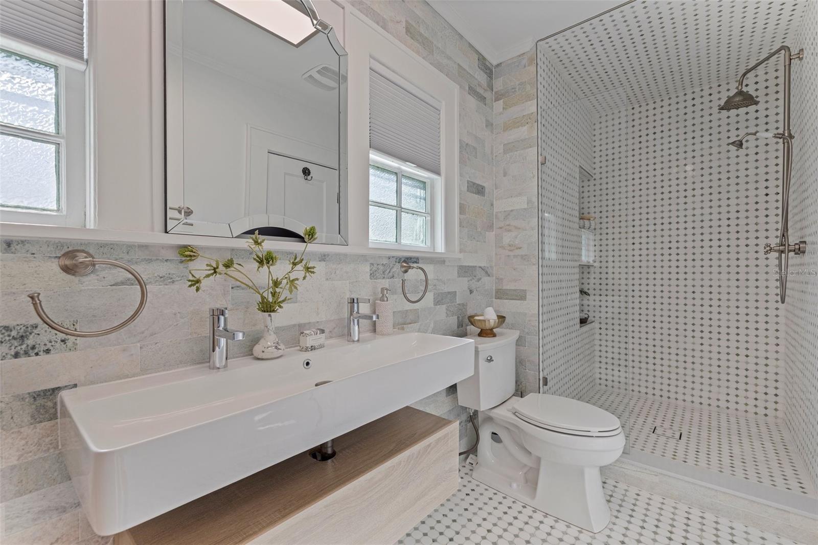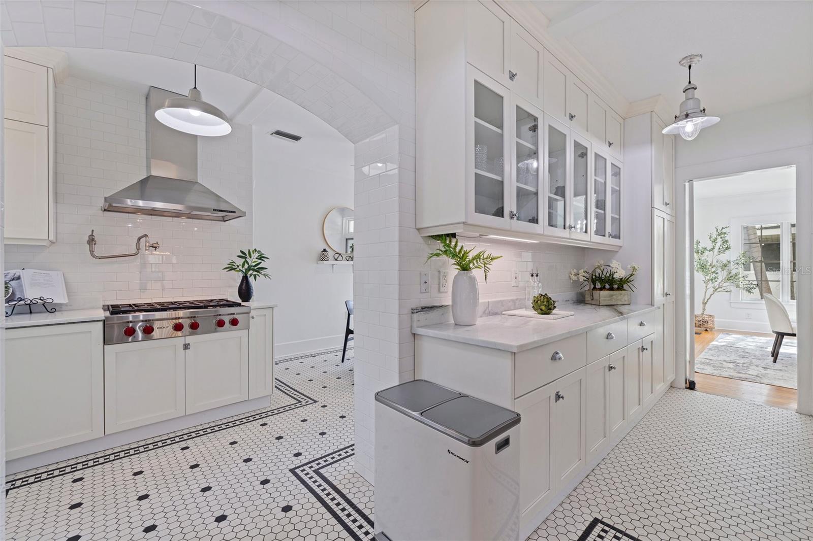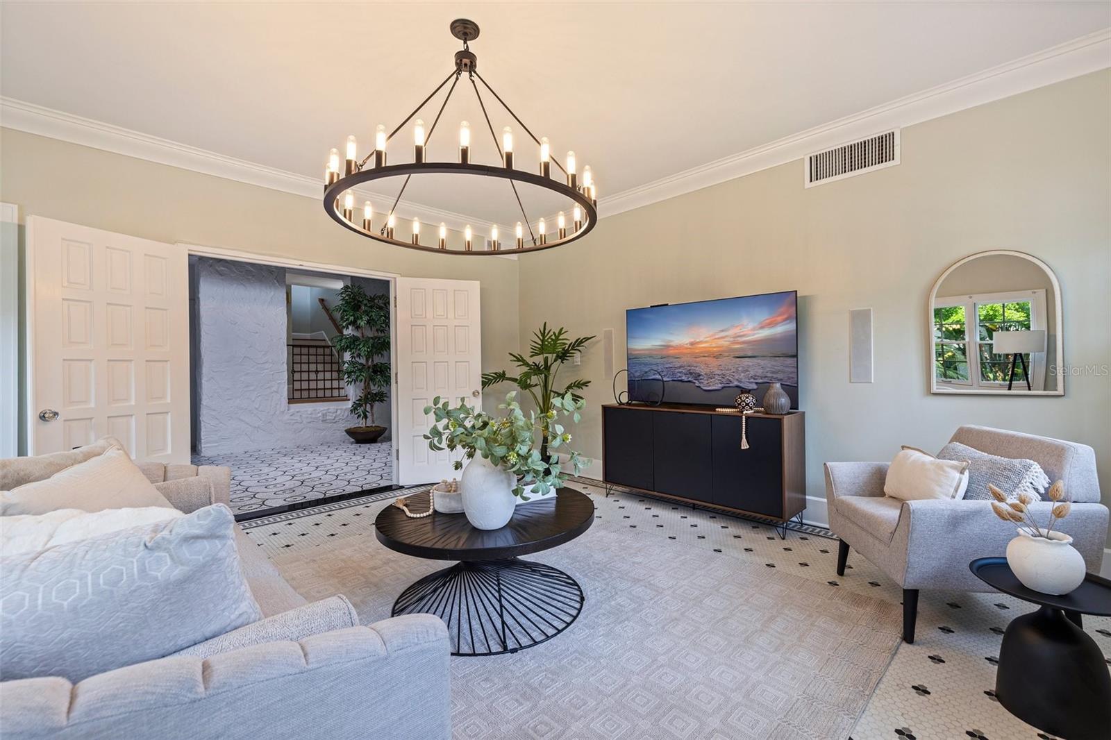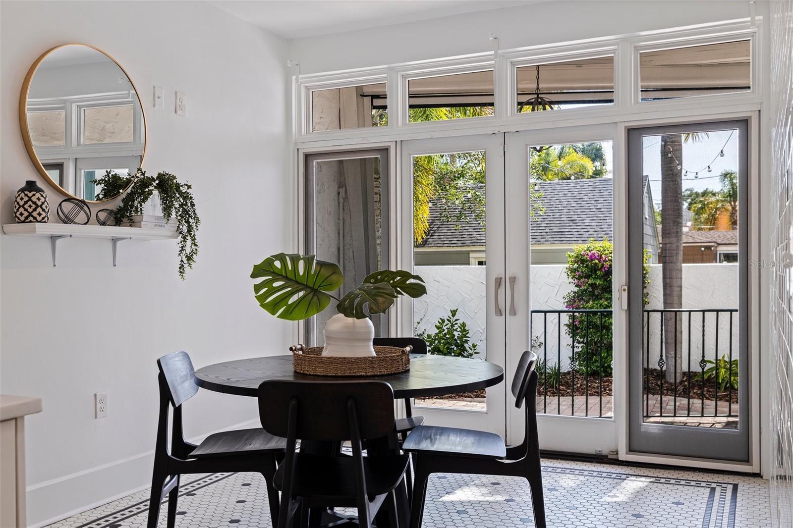 Step into a piece of St. Petersburg history with this exceptional Mediterranean estate in the coveted heart of Old Northeast in a NON FLODD ZONE—a home where timeless elegance meets modern luxury in one of the most desirable neighborhoods in the city. Sitting on a large corner lot along the coveted Cherry St, this residence boasts an impressive Mediterranean facade complemented by beautifully landscaped grounds. Inside, the home is filled with distinctive architectural features such as gleaming hardwood floors, intricate mosaic tile, vintage glass doorknobs, and crown molding that highlight the craftsmanship of a bygone era. As you enter, you're immediately captivated by a grand foyer, where an expansive skylight floods the space with radiant natural light. The awe-inspiring mosaic tile work beneath your feet is a true masterpiece, setting the tone for the elegance that flows throughout this exceptional home. The formal living room, anchored by a striking marble gas fireplace, creates an inviting ambiance for both quiet moments and entertaining. Adjacent, a versatile space, currently used as additional entertaining space, could easily serve as a 4th bedroom—thanks to its proximity to a full bathroom—or as a home office. The gourmet European kitchen features honed granite countertops, timeless subway tile, and deluxe appliances, including a brand-new refrigerator and a new Wolf 6-burner natural gas range, built-in microwave, and wall oven. For formal gatherings, the dining room offers an elegant setting, while the breakfast nook provides a charming retreat for morning coffee, opening seamlessly to a private patio—perfect for al fresco dining and enjoying the Florida sun. The second floor houses the private primary suite, offering an updated bathroom with tons of storage and a spacious walk-in shower. Two guest rooms share a beautifully updated bathroom, and the showstopper of the home is the rooftop terrace. This rare feature provides breathtaking views and is an exceptional space for entertaining or unwinding while enjoying the tranquility of the neighborhood. Outside, the expansive corner lot offers ample potential, with renderings available for a future plunge pool to create your ultimate backyard retreat. The property also boasts an attached 2-car garage and a front driveway—a unique feature in this coveted neighborhood. Recent updates include all-new plumbing, fresh interior and exterior paint, updated electrical, a new HVAC system, water purification system, new landscaping with irrigation and some updated Pella windows ensuring modern comfort alongside vintage charm. Located just steps from the sparkling waters of Tampa Bay, this home offers an idyllic lifestyle with scenic walks, bike rides, and easy access to downtown St. Petersburg’s vibrant waterfront dining, cultural venues, and boutique shopping. Whether by bike, foot, or golf cart, everything you need is within reach. Experience luxury living at its finest in this rare, beautifully restored estate—a true showcase of Mediterranean elegance and modern sophistication.