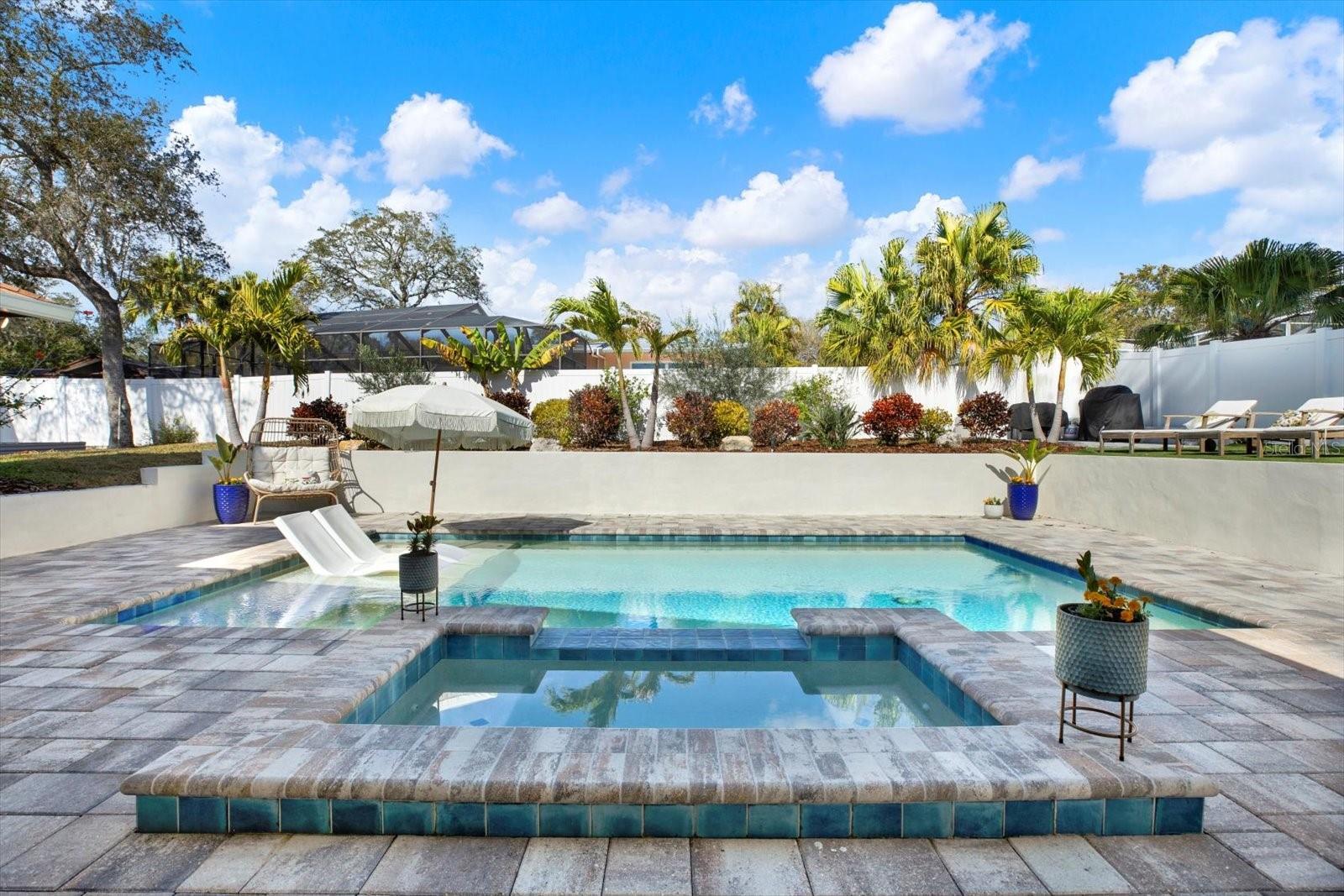 Under contract-accepting backup offers. Welcome to your Dunedin dream home! This effortlessly stylish pool home blends modern design with relaxed, vacation-at-home vibes from the moment you walk in. Sunlight pours through the open layout, highlighting fresh finishes, a sleek kitchen made for gathering, and inviting living spaces that feel both polished and comfortable for both everyday comfort and entertaining. Slide open the doors and step into your private backyard oasis—sparkling pool, sun shelf, spa, and a covered patio that practically begs for morning coffee, lazy afternoons, and evening cocktails under the stars. It’s the kind of space where weekends stretch a little longer and entertaining feels effortless. The spacious bedrooms offer flexibility for guests, a home office, or a growing family. The primary suite feels like a boutique hotel escape, with peaceful pool views, a spa-inspired bath, and easy access to the outdoors for that seamless indoor-outdoor lifestyle Florida does best. Thoughtfully updated and move-in ready, this home lets you focus less on to-do lists and more on enjoying where you live. And the location? Pure Dunedin magic. You’re minutes from downtown’s charming shops and restaurants, close to waterfront parks and breweries, a short ride to award-winning beaches, and right near the Pinellas Trail. Whole home remodel and floorplan improvements 2022, Pool/spa installed 2023, Impact windows/sliders 2022, solar panels 2023 (paid before closing), 240 volt electric car charging, Insulation 2024, Roof 2020, AC 2019. Full list of extensive updates available from listing agent.