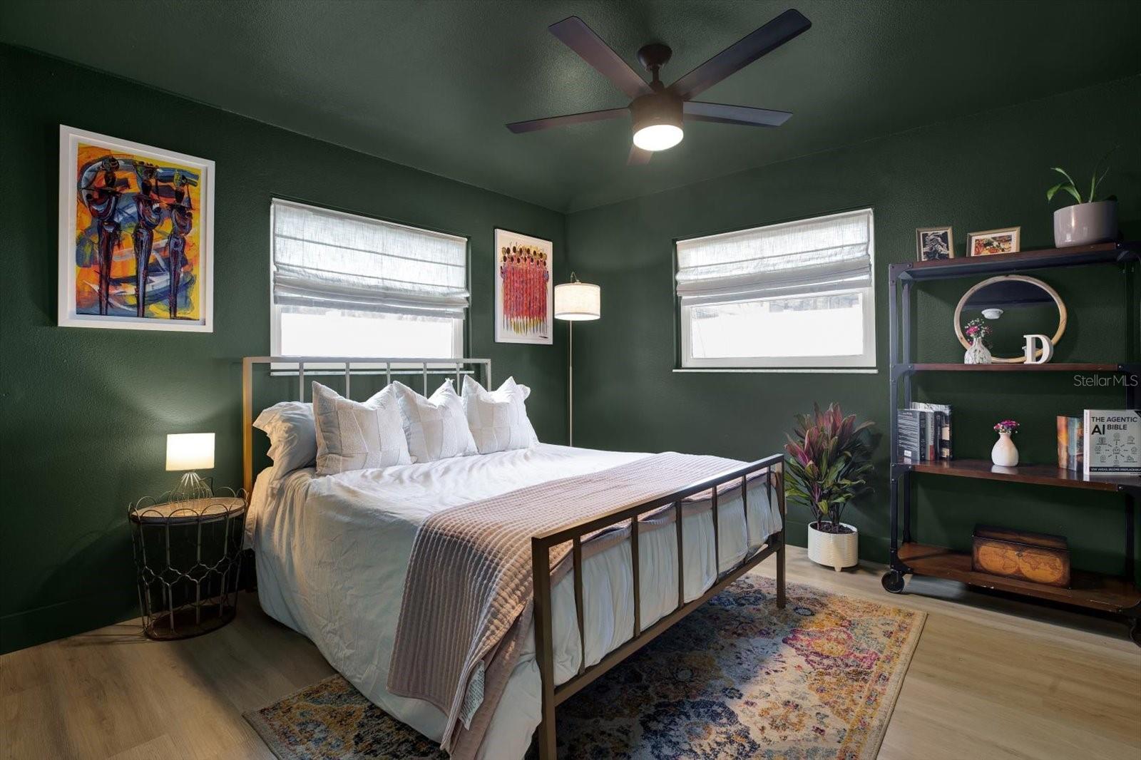 - Ceiling Fans(s), Dry Bar, Eat-in Kitchen, High Ceilings, Kitchen/Family Room Combo, Open Floorplan, Primary Bedroom Main Floor, Smart Home, Split Bedroom, Stone Counters, Walk-In Closet(s), Window Treatments
