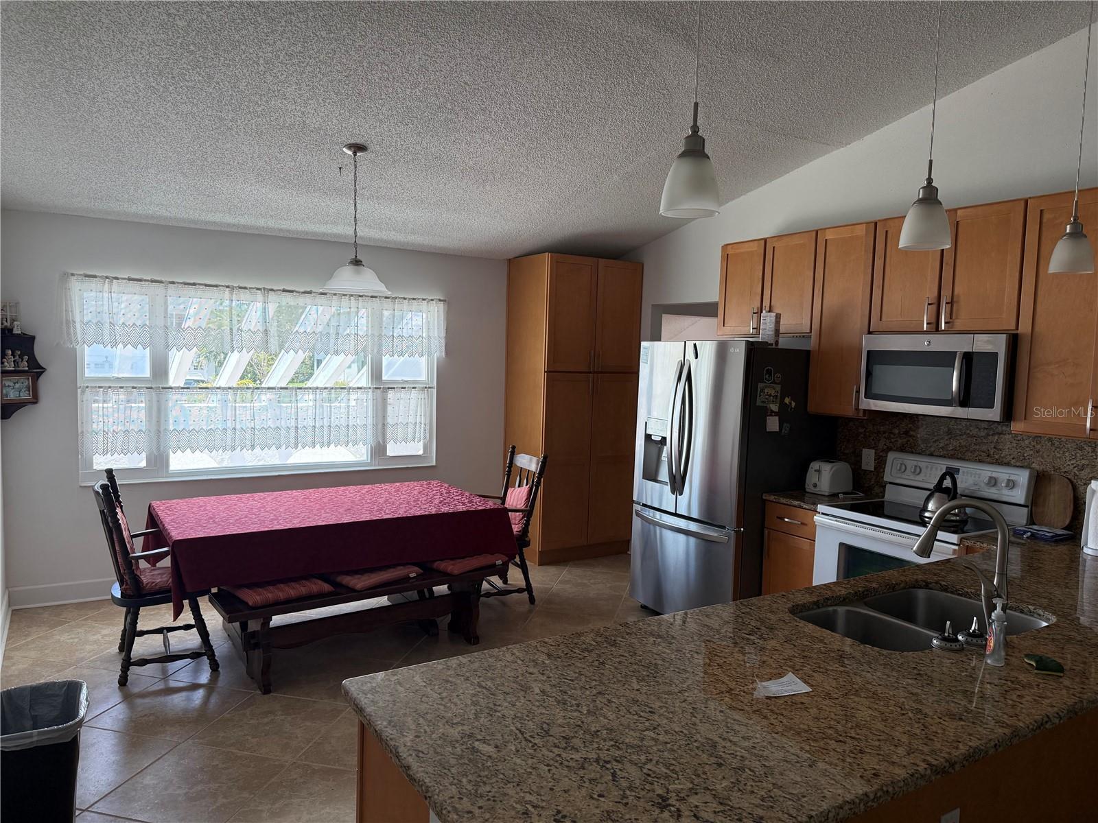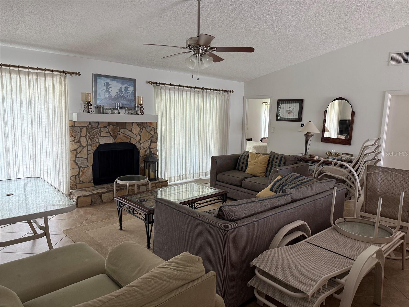 - Ceiling Fans(s), Eat-in Kitchen, Primary Bedroom Main Floor, Split Bedroom, Stone Counters, Thermostat, Window Treatments