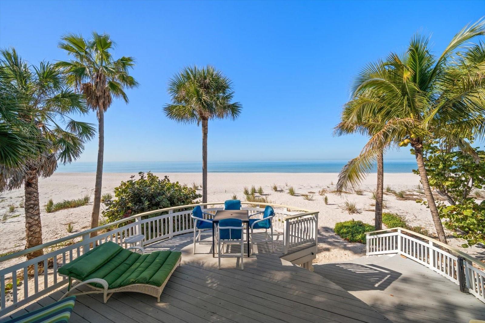 Ready to exchange snowdrifts for sand dunes & coconut palms? This Elevated Beach House has amazing Beach views & an incredible location, directly on the sand on the Gulf of Mexico. Located in the eclectic neighborhood of Sunset Beach. Feel the Boho Vibes with artistic accents, white washed walls & bamboo floors. This well-maintained beach house has an open floor plan throughout to invite the water views inside. A gleaming kitchen with solid wood cabinets, cooking island, breakfast bar & pantry. The main level bathroom adorned with a mesmerizing floor to ceiling mural entitled Mermaid Dreams. Each bedroom has vaulted ceilings & an ensuite bathroom. A private balcony completes the owner’s suite. The second living room could easily be converted into an additional bedroom if needed. If you were made for outdoor beach living, this house was made for you. Love was poured into the multi-level circular decks & grand staircase which pull you towards the white sands and turquoise waters of the Gulf. Come to Sunset Beach where the Sunset is celebrated daily, your sunglasses are your most important accessory & your neighbors become your friends. A freshly Re-nourished beach awaits your arrival. Feature sheet, operating expenses, Suvey, elevation certificate & aerial video available on the virtual tour.
