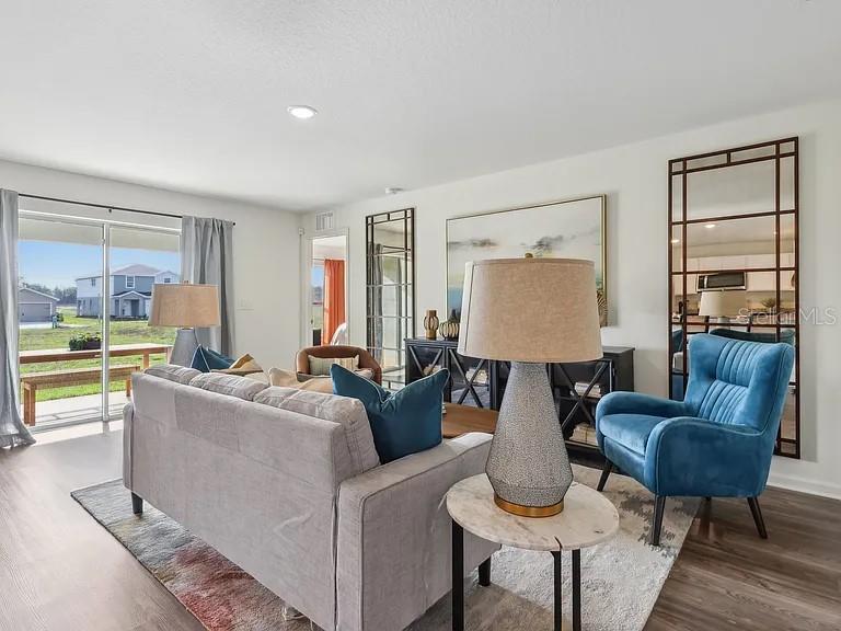 One or more photo(s) has been virtually staged. Located at 9965 N Elkcam Blvd in Citrus Springs, Citrus County, FL 34433, this well-designed and newly built 4 bedroom, 2 bath home offers approximately 1,811 square feet of living space with a functional and open layout. The exterior highlight a clean, contemporary faade with an attached garage and a neatly maintained yard. Inside, the home features an open-concept living and dining area that provides a comfortable flow for everyday living and entertaining. Large windows and sliding glass doors allow for ample natural light and offer views of the backyard. The kitchen is centrally located and includes generous counter space, modern cabinetry, and a large island that opens to the main living area. Adjacent dining space provides flexibility for a variety of uses. The bedrooms are well-proportioned, with neutral finishes and ample closet space. The primary bedroom includes a private bathroom with dual vanities and a walk-in shower. Additional bedrooms can be used for a variety of purposes depending on individual needs. The covered rear patio extends the living space outdoors and overlooks the backyard, offering a versatile area for relaxation or outdoor activities. The homes layout, finishes, and outdoor space are designed to support comfortable daily living. This property is situated in Citrus Springs, providing convenient access to local roads, shopping, dining, and recreational opportunities throughout Citrus County.