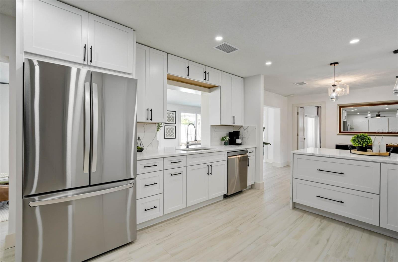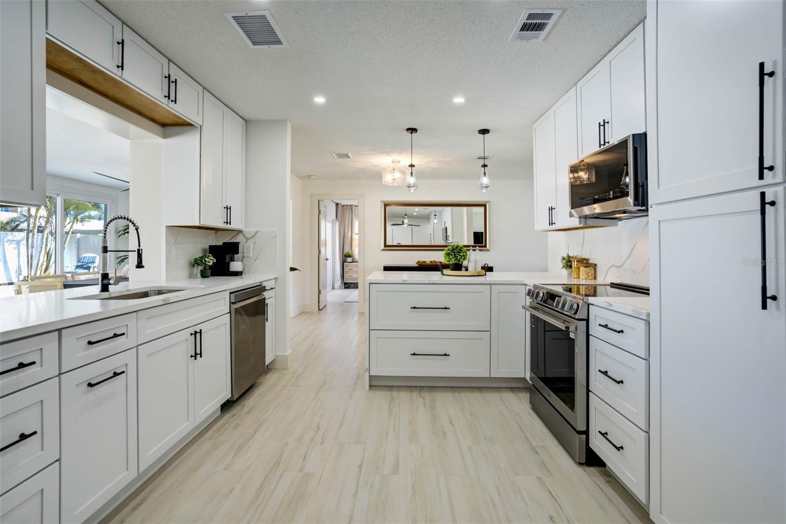Under contract-accepting backup offers. Only one block from Belleair Beach’s sugar-sand shoreline, this beautifully renovated ranch-style home offers 1,862 square feet of thoughtfully designed coastal living. Completely updated from top to bottom, the property blends timeless charm with modern, high-end finishes and an unbeatable beachside location. The split-bedroom floor plan provides excellent privacy, while the expansive central living space is ideal for both everyday living and entertaining. A charming wood-burning fireplace anchors the kitchen/living area, adding warmth and character. The kitchen features KraftMaid cabinetry, brand-new appliances, designer lighting, and a clean, sophisticated aesthetic that flows seamlessly throughout the home. Major upgrades include a 2025 roof, 2025 HVAC system, new impact-rated windows and doors, fresh interior and exterior paint, bathrooms and kitchen custom-built in 2025, and all-new lighting, offering peace of mind and turnkey convenience. An indoor laundry/mud room adds functionality and convenience, and the two-car garage provides ample storage. Step outside to your private backyard oasis, complete with a large swimming pool, paver patio, and green space perfect for relaxing after a day at the beach or hosting friends and family. Excellent curb appeal completes the picture. Ideally located just a five-minute walk to Belleair Beach access, this home is perfect for beach lovers seeking a fully renovated, move-in-ready retreat in one of Pinellas County’s most desirable coastal communities.