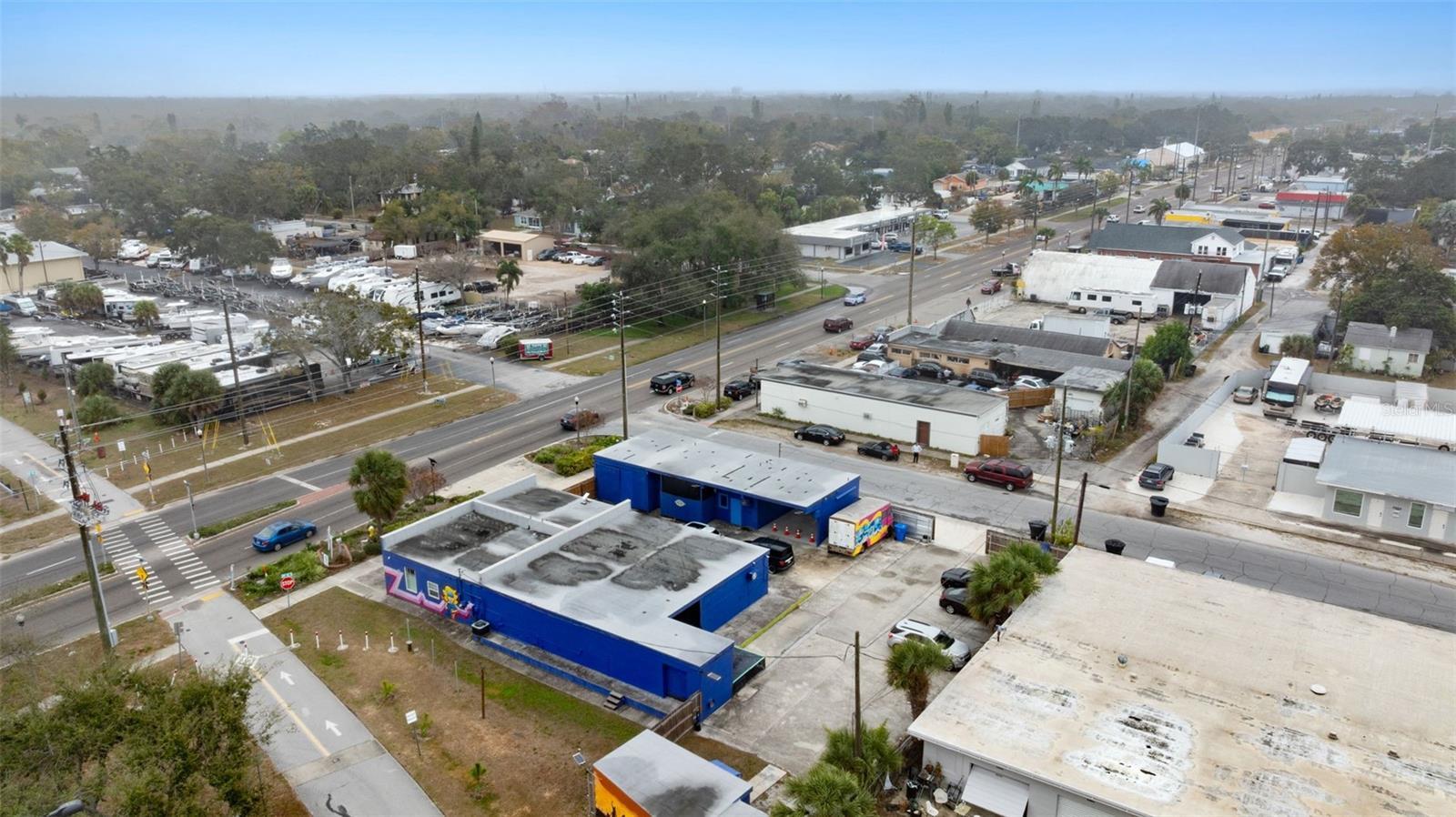 This is a unique, two-building flex property located directly on the Pinellas Trail with frontage on 49th Street South, the main north–south corridor into Gulfport with approximately 22,000 vehicles per day. This property is a rare opportunity to purchase a property with both high traffic road frontage and direct frontage on The Pinellas Trail. The site consists of 4,924 SF gross SF across two concrete block buildings (3,460 SF and 1,464 SF), plus a bonus storage shed fronting the trail, situated on a 0.31-acre lot with 10+ parking spaces. The interior configuration includes multiple small rooms and studios, making it well-suited for creative users, multi-tenant concepts, or owner-operators looking to generate multiple income streams. The property is zoned Commercial General, allowing for a wide range of uses including retail, office, personal services, restaurant, warehouse, trade shops, automotive and marine-related uses, fitness, and many conditional uses. The outdoor areas provide functional space for pop-up markets, events, vendor stalls, or customer gathering, which pairs naturally with the heavy pedestrian and cyclist traffic along the Pinellas Trail. With an average of 160,000 trail users per month, this property functions as a true destination site, offering visibility not just to vehicles, but to a constant stream of cyclists, pedestrians, and local residents. Whether repositioned for creative studios, retail, wellness, trades, or a potential hybrid live-work or market concept, this is a highly adaptable property in the City of Gulflort, FL.