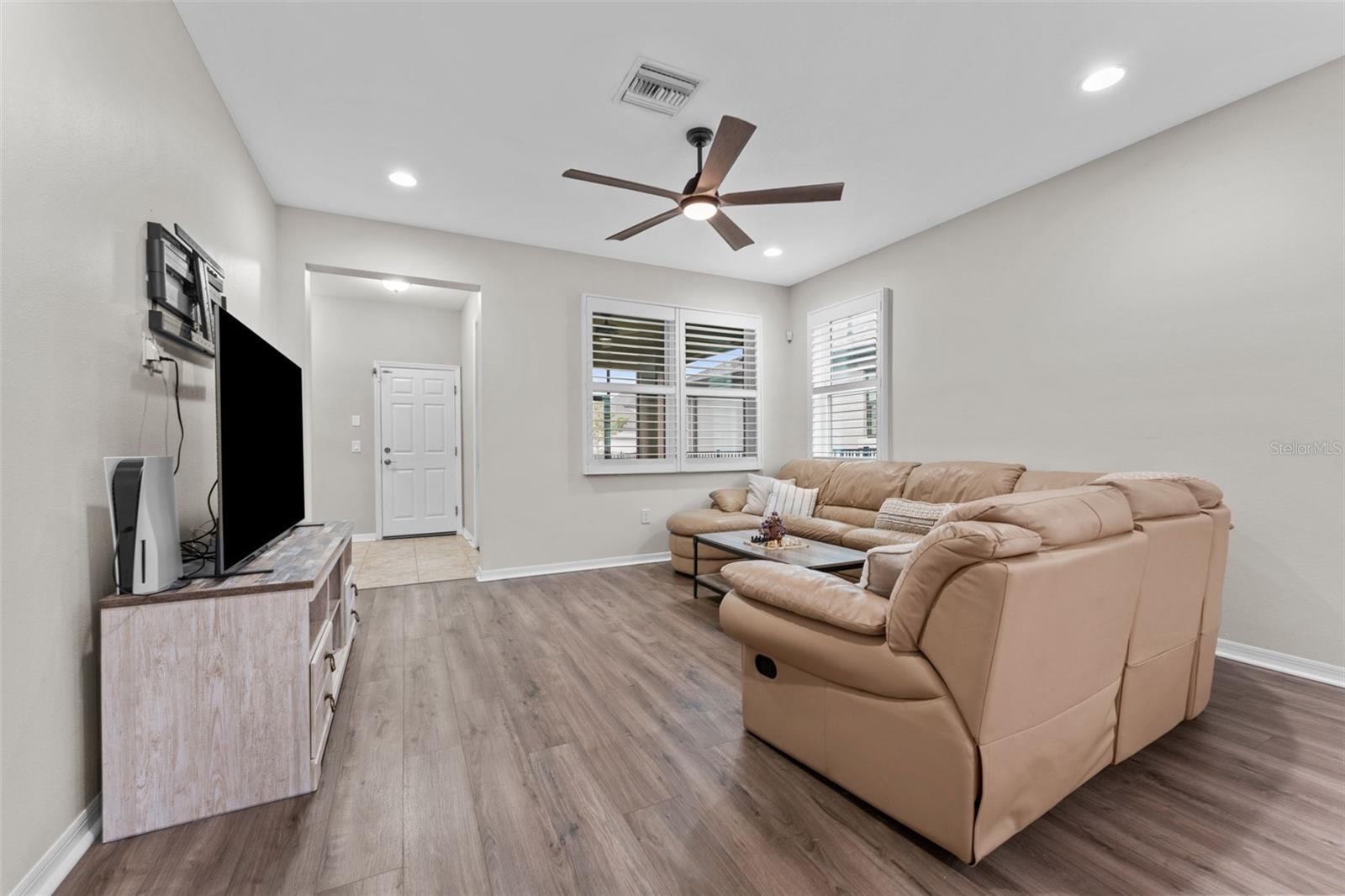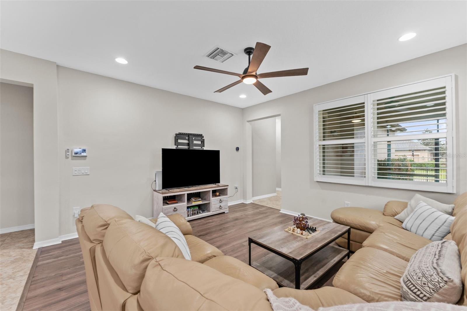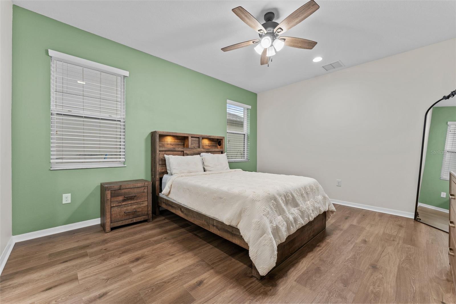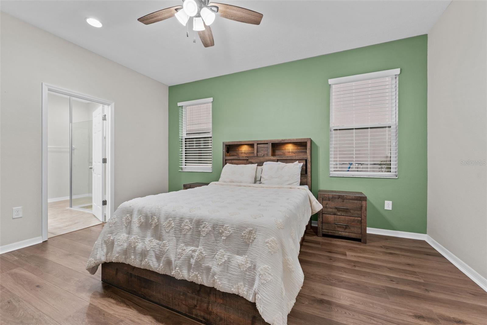 - Ceiling Fans(s), Eat-in Kitchen, High Ceilings, Kitchen/Family Room Combo, Open Floorplan, Solid Wood Cabinets, Split Bedroom, Walk-In Closet(s)