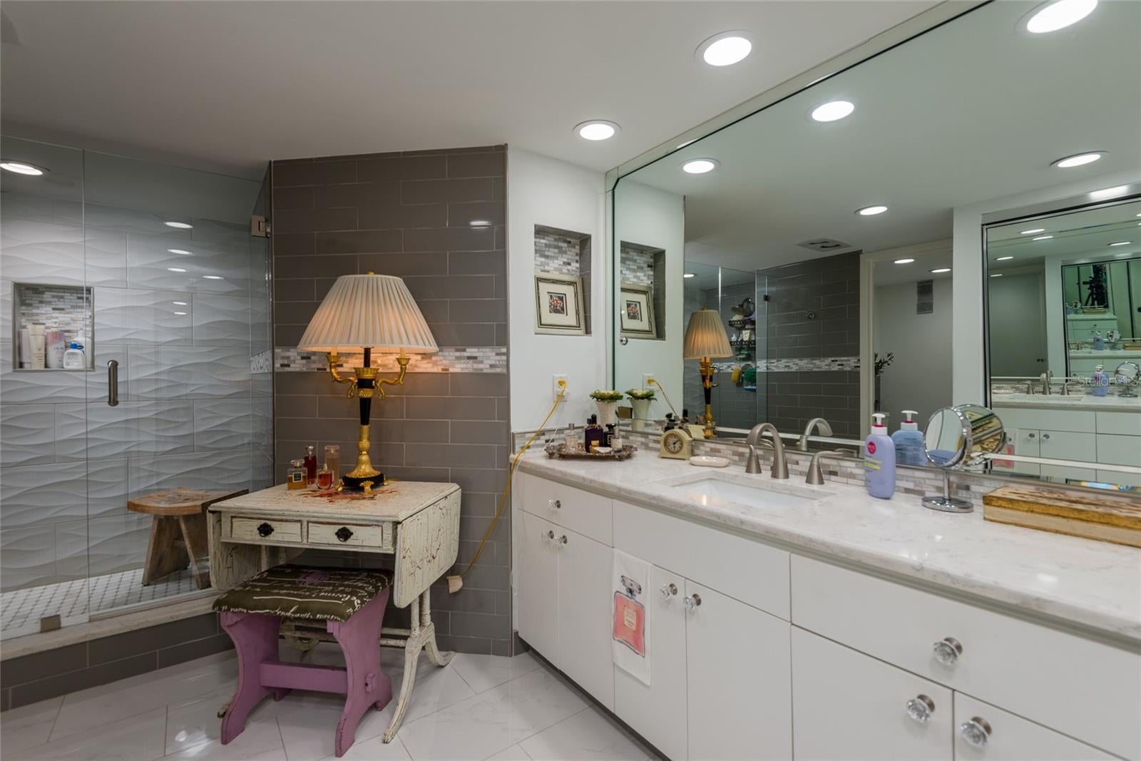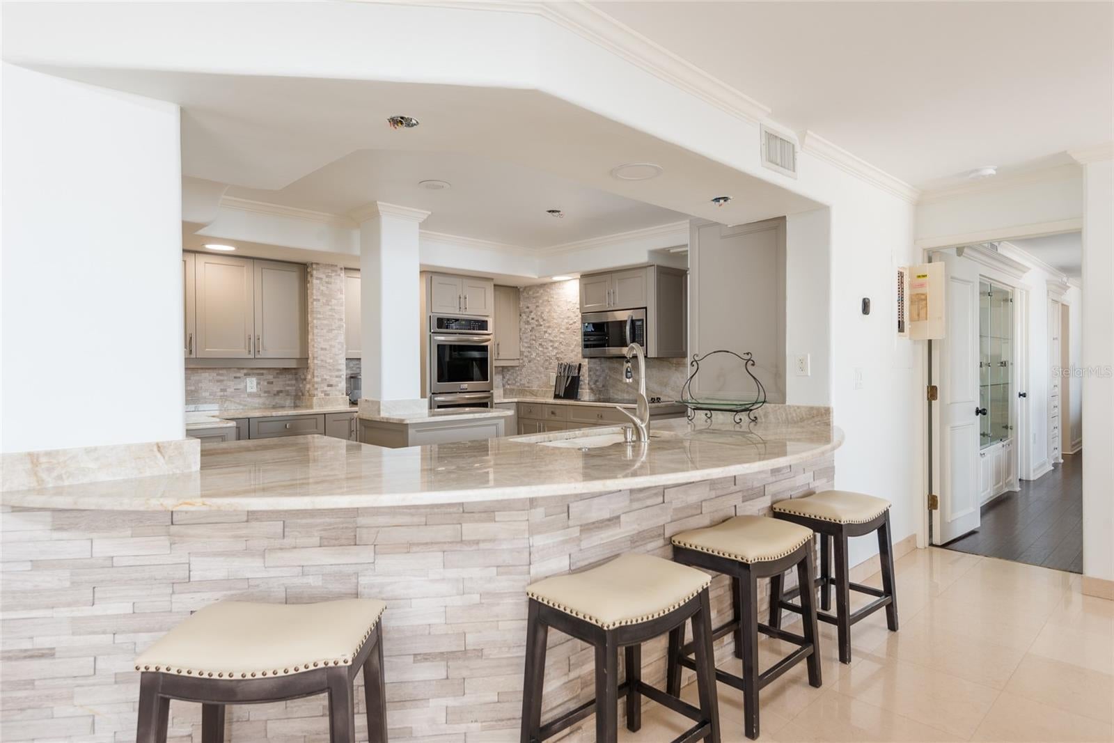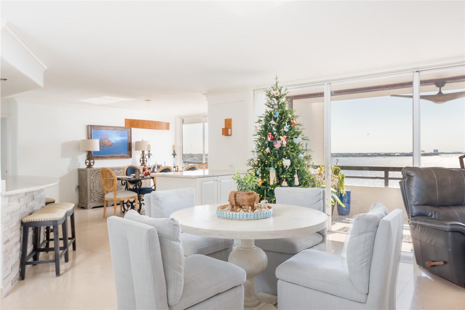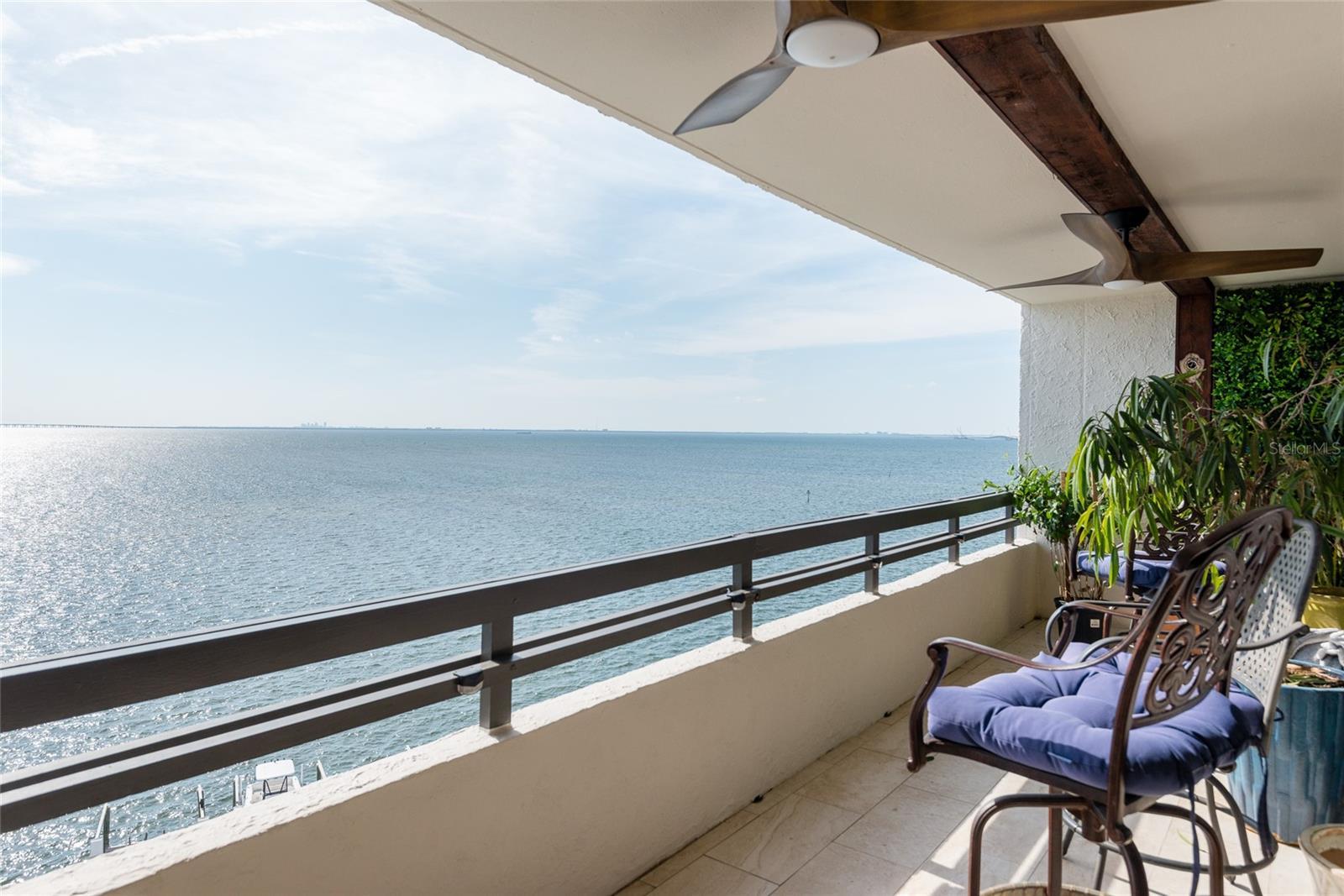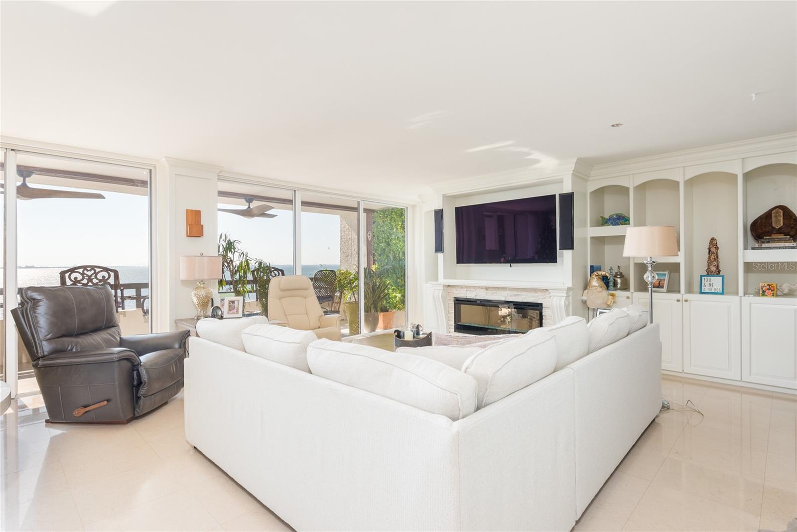 Enjoy breathtaking sunsets and sweeping direct water views of Old Tampa Bay from one of three expansive private balconies. This rare and beautifully upgraded residence with over 3300 sq ft offers an exceptional opportunity to live in a premier waterfront condo just five minutes from Tampa International Airport. Flooded with natural light, the condo welcomes you with stunning water views upon entry and features cream marble flooring and engineered hardwood throughout. The chef’s kitchen boasts imported granite countertops, a center island, and abundant cabinet and counter space, perfect for both everyday living and entertaining. This unique combined-unit floor plan provides two true primary suites plus a third bedroom with its own private bathroom, along with a potential fourth bedroom, office, or dressing room. The thoughtfully designed split-bedroom layout ensures privacy, while both primary suites offer generous closet space and en-suite baths with dual vanities. The largest primary suite showcases water views, plantation shutters, and a spa-like bath with soaking tub and separate walk-in shower. Additional interior highlights include an oversized laundry room with front-load washer and dryer, dual-zone A/C, and a spacious great room featuring electric fireplace and complete with a dry bar and two beverage refrigerators—ideal for hosting guests. Brand-new hurricane-impact sliding glass doors are currently being installed, enhancing storm protection, noise reduction, and overall aesthetics. Mariner Condos offers resort-style amenities including a waterfront pool, fitness center, and two garage parking spaces beneath the building. Ideally located near Tampa International Airport, shopping, dining, and all the entertainment South Tampa has to offer, this exceptional residence truly has it all. This is a must-see luxury waterfront condo.