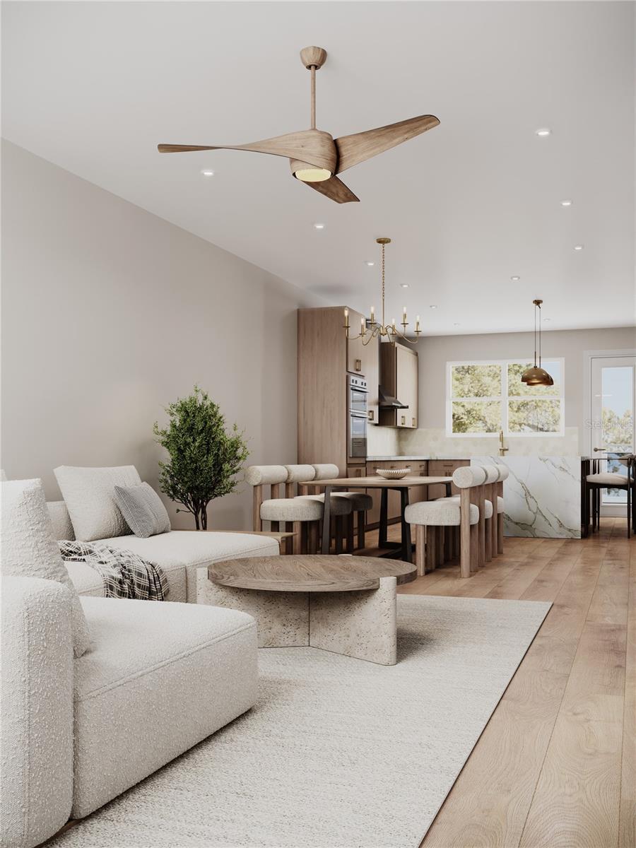 Under Construction. **Under Construction.Offering up to $21,000 towards closing costs for qualified buyers Experience elevated urban luxury at Sunset Palms Townhomes, a boutique collection of just five fee-simple residences located in St. Petersburg, ideally positioned in the heart of one of Florida’s most vibrant and walkable urban environments. Just minutes from Downtown St. Petersburg, residents enjoy effortless access to award-winning restaurants, cafés, fitness studios, shopping, galleries, and cultural destinations, with the St. Pete Pier, waterfront parks, and Tampa Bay’s iconic marina all nearby, perfect for morning walks, sunset strolls, and an active coastal lifestyle. World-renowned Gulf beaches are a short drive away, offering easy access to white-sand shores while maintaining the convenience of city living. This residence is one of only two exclusive end units available, offering added privacy with no adjacent townhome on one side, enhanced natural light, and a more refined, spacious living experience, an increasingly rare advantage in boutique urban developments. Each three-story residence features 3 bedrooms, 3.5 bathrooms, 2,053 sq ft of refined living space and 3,198 sq ft under roof, designed with intentional architecture and elevated finishes that far exceed typical townhome standards. At the heart of the home is a show-stopping designer kitchen crafted for both everyday living and upscale entertaining, showcasing custom flat-panel wood cabinetry extending floor to ceiling, premium stone countertops, and a dramatic oversized waterfall-edge island with generous seating. The kitchen is equipped with built-in appliances, including a wall oven, sleek cooktop with custom vent hood, panel-ready refrigerator, and built-in wine refrigerator, delivering a seamless, high-end aesthetic. Thoughtfully integrated open wood shelving, designer brass pendant lighting, and layered recessed lighting elevate the space, while wide-plank flooring and expansive windows flood the home with natural light and create an effortless flow into the open living and dining areas. Additional highlights include a private 1.5-car garage, 2–3 on-site guest parking spaces per unit, a rare luxury in this urban setting, and a private front yard that can be fenced, ideal for pets or outdoor lounging. The crown jewel is the private rooftop terrace, designed as an entertainer’s retreat with the option to add a custom rooftop outdoor kitchen, creating the perfect setting for hosting, dining, and relaxing under the Florida sky. Located in Flood Zone X (no flood insurance required) and offering a low HOA covering common utilities, insurance, landscaping, irrigation, pressure washing, and reserves, while preserving full fee-simple ownership, Sunset Palms presents a rare opportunity to own new-construction luxury in a walkable, coastal-urban location positioned for long-term appreciation, with estimated completion in Q2 2026.