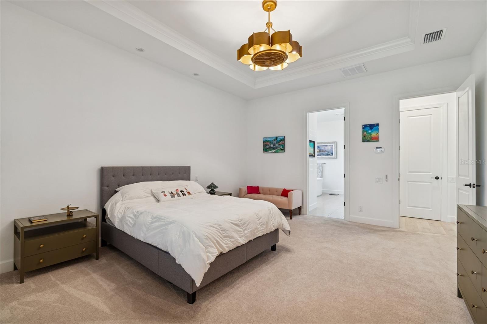 - Ceiling Fans(s), High Ceilings, Open Floorplan, Primary Bedroom Main Floor, Split Bedroom, Stone Counters, Tray Ceiling(s), Walk-In Closet(s), Window Treatments
