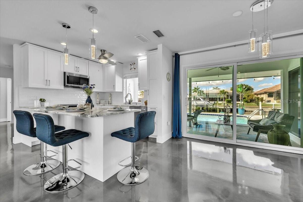 Stunning Coastal Contemporary with Sailboat Access | Punta Gorda Isles A true boater’s paradise in an exceptional location. Ideally positioned on the second canal to open water, this premier 95-foot waterfront homesite features a city-maintained seawall and a 30’ x 8” concrete dock. With no fixed bridges and effortless access to Charlotte Harbor, the Peace River, and the Gulf of America, this is waterfront living without compromise—perfectly suited for yacht and all boat owners. Northwest backyard exposure delivers breathtaking sunset views. Enjoy resort-style outdoor living with a shimmering pool, covered lanai, and lush tropical landscaping—ideal for entertaining and relaxation. Beautifully remodeled and thoughtfully upgraded three-bedroom, two-bath residence, where a sense of calm immediately welcomes you. Bathed in natural light, the open and airy layout is designed to capture breathtaking water views from every room, creating a seamless connection between indoor living and the tranquil surroundings. Enhancing both comfort and quality of life, the home is equipped with a premium water softening and filtration system, delivering exceptional water for both drinking and bathing. Step inside and be welcomed by striking metallic epoxy floors that flow throughout the home, setting a tone of modern elegance. The fully reimagined kitchen is a true showpiece, adorned with exquisite quartzite countertops, custom white Shaker cabinetry with abundant drawer storage, a beautifully designed pantry, and an expansive island. Premium stainless steel appliances, a built-in wine refrigerator, and generous counter space complete the space, hurricane impact sliders, all thoughtfully integrated into a seamless open-concept design. Ideal for sophisticated entertaining or effortless everyday living, this home offers comfort wrapped in refined style. The primary bedroom ensuite offers direct access to the lanai, showcasing breathtaking water views and glowing sunset vistas. A generously sized walk-in closet with custom organizers complements the serene retreat, while the spa-inspired bath features a rain shower, dual vanities topped with quartzite, abundant storage, and a dedicated linen cabinet for effortless elegance. Tucked away on a private cul-de-sac, this home offers a quiet, secure setting with a strong sense of community. Mature landscaping, an oversized 2.5-car garage, a durable metal roof, and a transferable flood insurance policy provide exceptional value, security, and peace of mind. From golden sunsets on the lanai to effortless days on the water or poolside, this home delivers your own private coastal paradise. An exceptional opportunity to own a Premier Waterfront residence within one of Southwest Florida’s most prestigious communities. NO HOA! Dream Location! Profitable Short Term Rental! Minutes to Charming Fisherman's Village and Historic downtown Punta Gorda, Shopping, Restaurants, Weekend Farmers Market, Parks, Pickleball, Yacht Clubs, Golf Clubs and more! Schedule your private tour today.