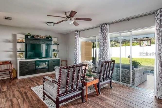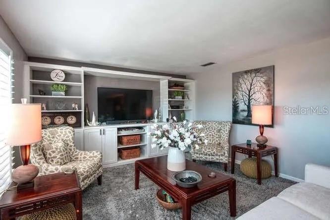 - Built-in Features, Ceiling Fans(s), Eat-in Kitchen, Kitchen/Family Room Combo, Living Room/Dining Room Combo, Solid Wood Cabinets, Thermostat, Window Treatments