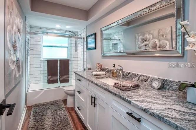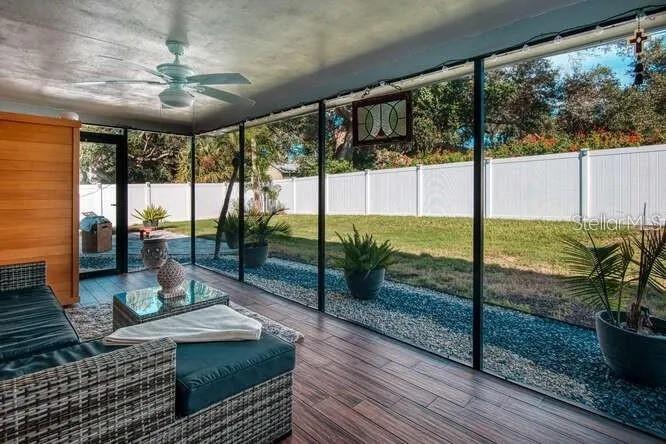 Located in the desirable Imperial Point neighborhood of Largo, this 3-bedroom, 2-bathroom single-family home delivers both space and modern comfort over approximately 1,990 sq ft of living area. Interior Highlights A functional split floor plan ensures privacy, with the primary bedroom and ensuite bath separated from the other two bedrooms via a hallway. The interior features include both a family room and a living room, offering versatile living space. Stylishly updated: the open kitchen is outfitted with granite countertops, stainless steel appliances, and hardwood flooring in main areas, complemented by classic terrazzo flooring in the bedrooms. Practical amenities include an inside laundry room with a desk for a small office. Exterior & Additional Features Complete with a 2-car garage with ample storage that will still accommodate 2 cars. A screened porch ideal for enjoying Florida's nice weather bug-free. Pets are welcome (restrictions apply: up to 2 cats or 1 dog under 50 lbs, non-aggressive). The yard is fenced, adding privacy and secure outdoor space. NON-FLOOD NON evacuation zone - live with peace of mind! ENJOY Imperial Point Community's amenities: HEATED & COOLED waterfront pool, community boat ramp & fishing pier, Club house, billiards, fitness center, tennis courts, Bocce ball court, BBQ area. Located just minutes to Indian Rocks Beach with easy public accesses. Property is near schools, shopping, grocery stores, Interstates. INCLUDED in rent: Club house/pool amenities access, landscaping and pest control. There's a small storage closet attached to the house that has yard / landscape tools in it. The tenant will not have access to this closet.