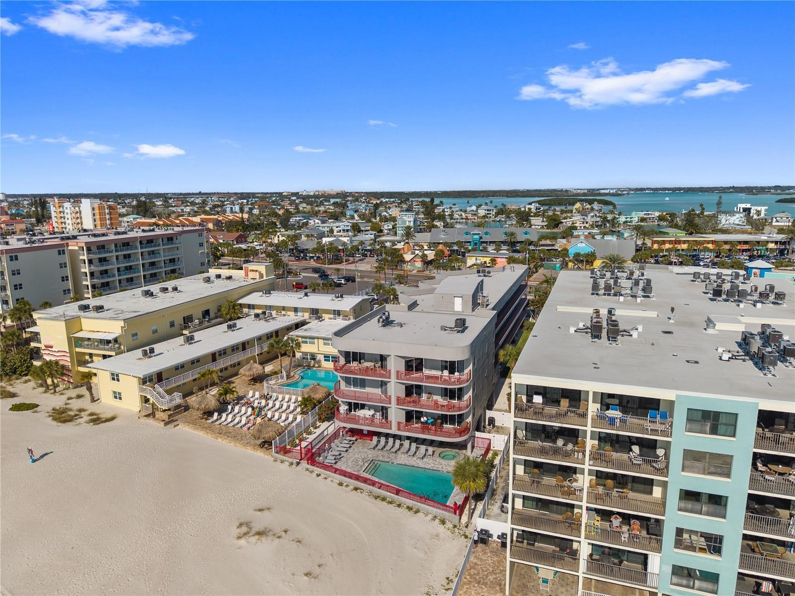Ocean Front, Penthouse, 1 week min rental, 2bed 2bath turn-key beach condo with high income potential directly across the street from the FAMOUS John's Pass Village of Madeira Beach, in the youngest condo complex in John's Pass, Crimson on the Gulf, a first class 15 unit boutique complex with direct gulf views offering nightly sunsets, a heated pool and hot tub, in a tastefully designed elevated building. From your bed, wake up to gorgeous views of the Gulf and step out to the huge balcony to take in the breathtaking scenery as far as the eye can see. 1031 Exchange Buyers take note; here is what you have been looking for! This is the most desirable location for snow birders and vacationers, so the demand is huge for these rental units. Enjoy years of memories with your family and friends, then rent it out when you are not there to generate excellent income all year! Updated with porcelain flooring throughout, new HVAC in 2024, Hot water heater 2019, updated open kitchen design, updated bathrooms, huge walk-in closet in the primary bedroom and lots of closet space throughout, including "owner's closets". Directly across the street in John's Pass Village, there are over 100 shops, eateries, pubs, kid friendly attractions, deep sea fishing boats, dolphin watching, jet skiing and the list goes on!! This is a primo location, to say the least, and this is the first condo to be listed for sale at 'The Crimson' in over 5 years, so this one won't last long. You have private access to the beach or just sit on your balcony and enjoy the birds-eye view.....this is the paradise you have been looking for! Close to airports, malls, shopping, restaurants and pubs, fishing, boating, hospitals and clinics, sports venues and the other dozen beach towns up and down Gulf Blvd. There is a private, secured lobby entrance, BBQ grills, shaded parking under the building, picnic tables and SUNSETS! Come take a look before this one gets sold!