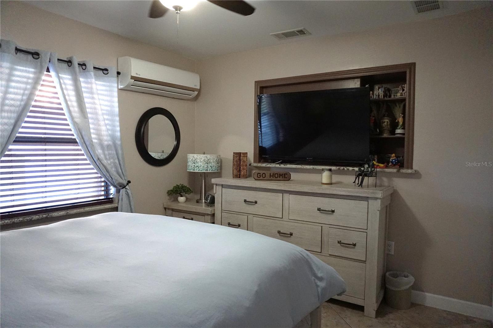 - Built-in Features, Ceiling Fans(s), Eat-in Kitchen, Open Floorplan, Solid Wood Cabinets, Split Bedroom, Stone Counters, Thermostat, Window Treatments