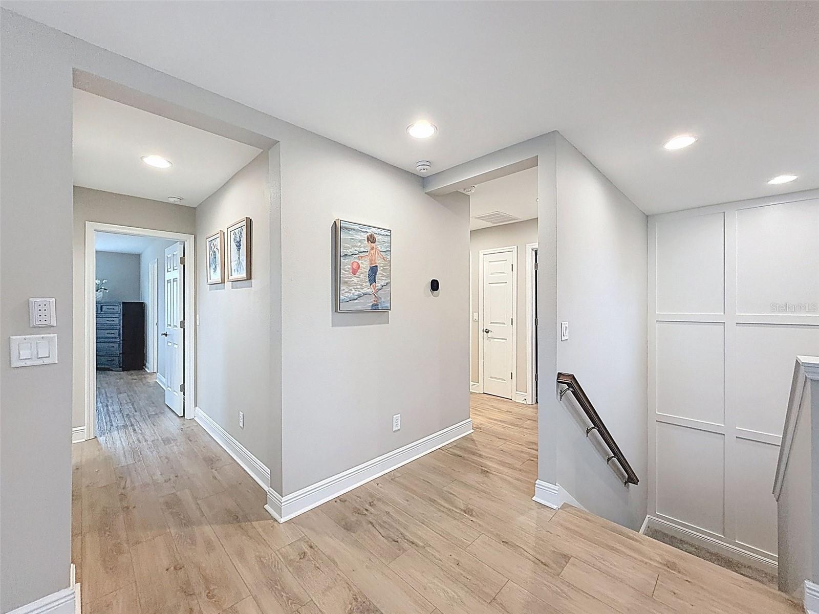 Immaculately maintained and beautifully updated, this corner-lot home in the heart of Starkey Ranch offers exceptional curb appeal and an unbeatable location directly across from Albritton Park. Enjoy park views and immediate access to trails, playgrounds, and community amenities from one of the most desirable settings in the neighborhood. The home features a spacious and functional floor plan with four bedrooms, three full bathrooms, an enclosed den, and a large upstairs loft—providing flexible living space ideal for a variety of needs. The interior has been freshly repainted and showcases thoughtful upgrades throughout, including laminate flooring upstairs and a cozy fireplace anchoring the main living area. The well-appointed kitchen and open living spaces are designed for both everyday living and entertaining. All closets feature custom built-in inserts, offering excellent storage and organization. The primary suite serves as a private retreat with generous space and a well-designed bath. Notable upgrades include a three-car garage with professionally coated floors, additional blown-in attic insulation, a whole-home water softener and chlorine removal system, APCO HVAC air quality system, HVAC Micro-Air soft start, generator hookup electrical panel, and a SafeTouch security system with exterior cameras. Starkey Ranch residents enjoy resort-style pools, parks, trails, community events, top-rated schools, and convenient access to shopping, dining, and major roadways. A rare opportunity to own a meticulously cared-for, park-front home in one of Tampa Bay’s premier master-planned communities.