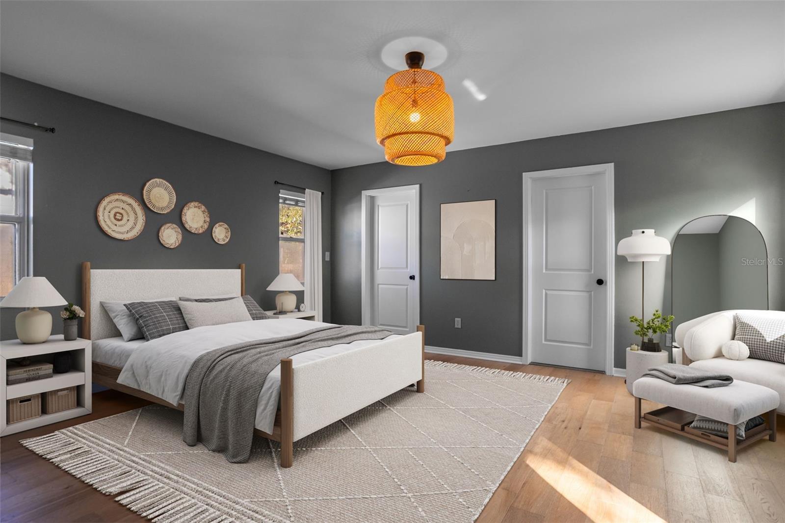 - Ceiling Fans(s), Crown Molding, Primary Bedroom Main Floor, Solid Surface Counters, Solid Wood Cabinets, Walk-In Closet(s)