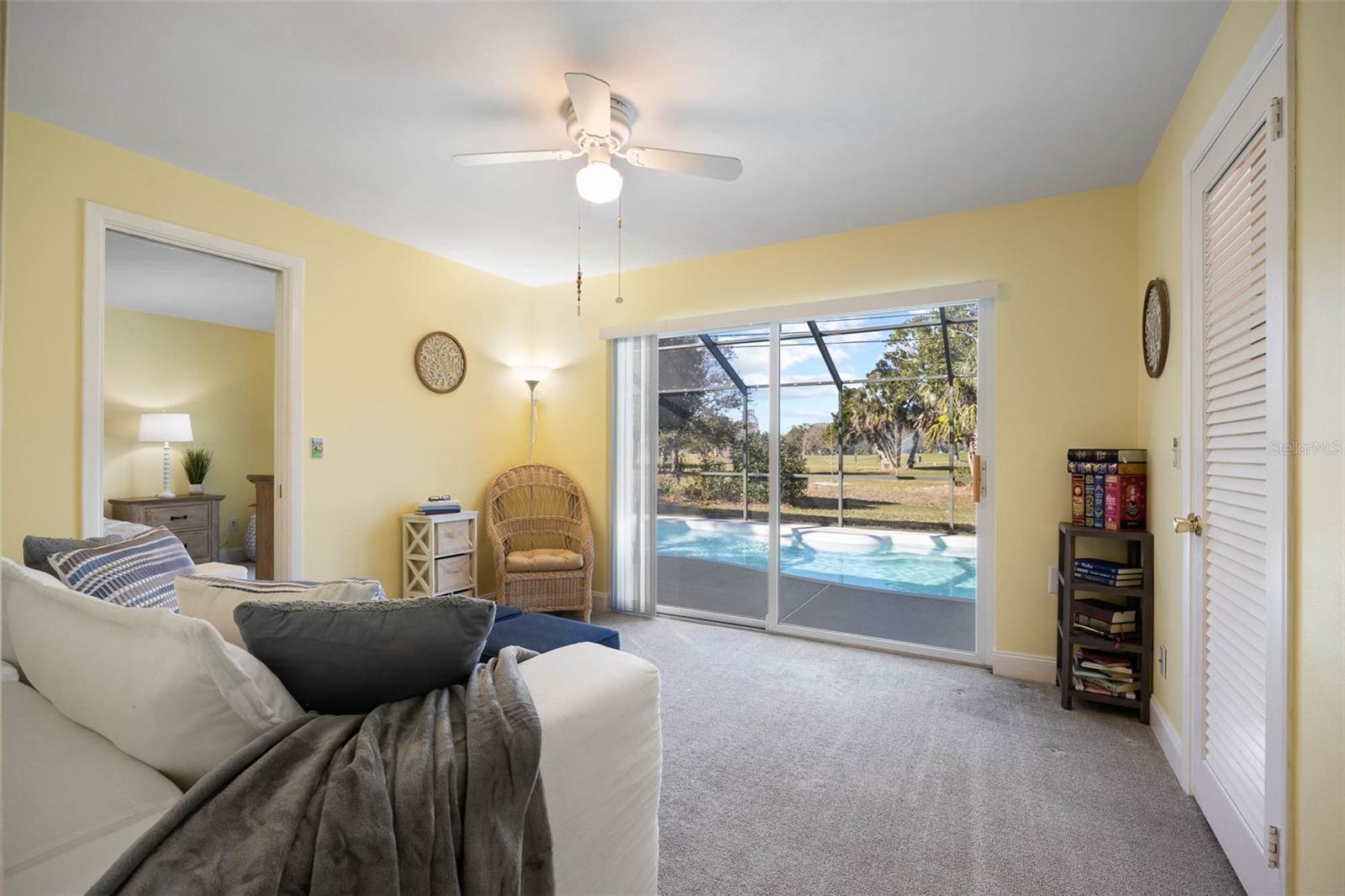 Golf course frontage opportunities in Fairway Estates are exceptionally rare, and this home offers a chance to secure one with views of portions of Holes 3 and 4 at the iconic Donald Ross designed and recently restored Dunedin Golf Club. This 3–4 bedroom, 3 bathroom home is designed for entertaining, featuring a generously sized living room with expansive windows, an oversized dining room, and adjoining bar area ideal for hosting gatherings large or small. The updated kitchen anchors the main living spaces and offers both style and functionality for everyday living. The flexible floor plan includes two bedrooms with ensuite baths and access directly to the pool, while a fourth bedroom is currently configured as a library with a relaxing view and access as well to the pool —perfect for a home office, study, or bonus space. Outdoor living centers around a screened lanai and fiberglass pool, providing a private retreat just steps from the golf course. This home presents an excellent opportunity for buyers who value location! Additional highlights include a 2020 water heater, select updated windows, and a charming retro pink bath that adds personality and vintage flair. Roof (2005) and HVAC systems (2017/2002) reflect typical age for the neighborhood and are priced accordingly. Located in golf-cart-friendly Fairway Estates, just minutes from downtown Dunedin, the Pinellas Trail, waterfront parks, and award-winning beaches, this home offers lifestyle, location, and long-term upside. Golf-front homes in this community seldom come available—especially at a price point well below other current golf course frontage offerings. Select furnishings may convey separately; inquire for details.