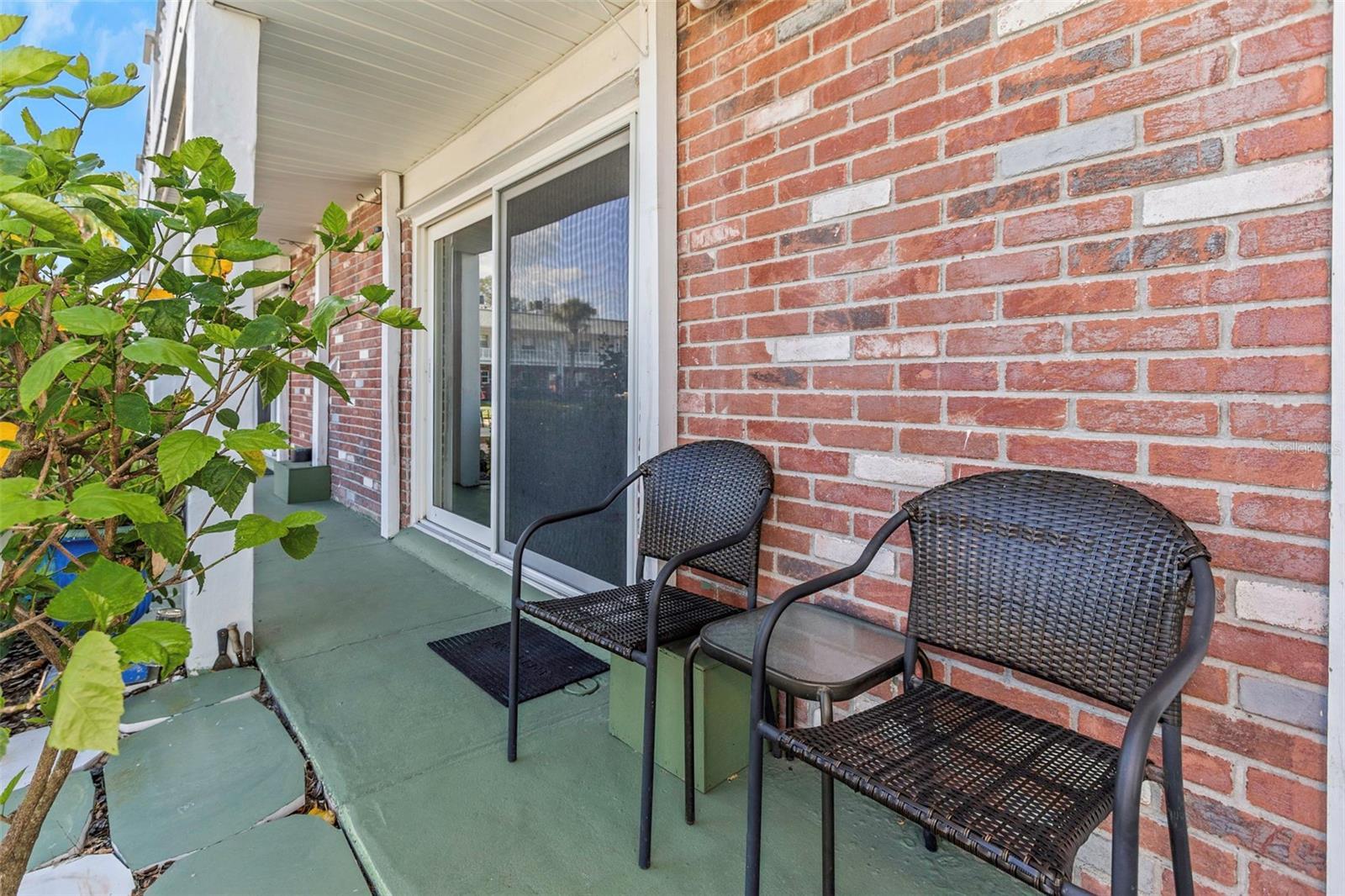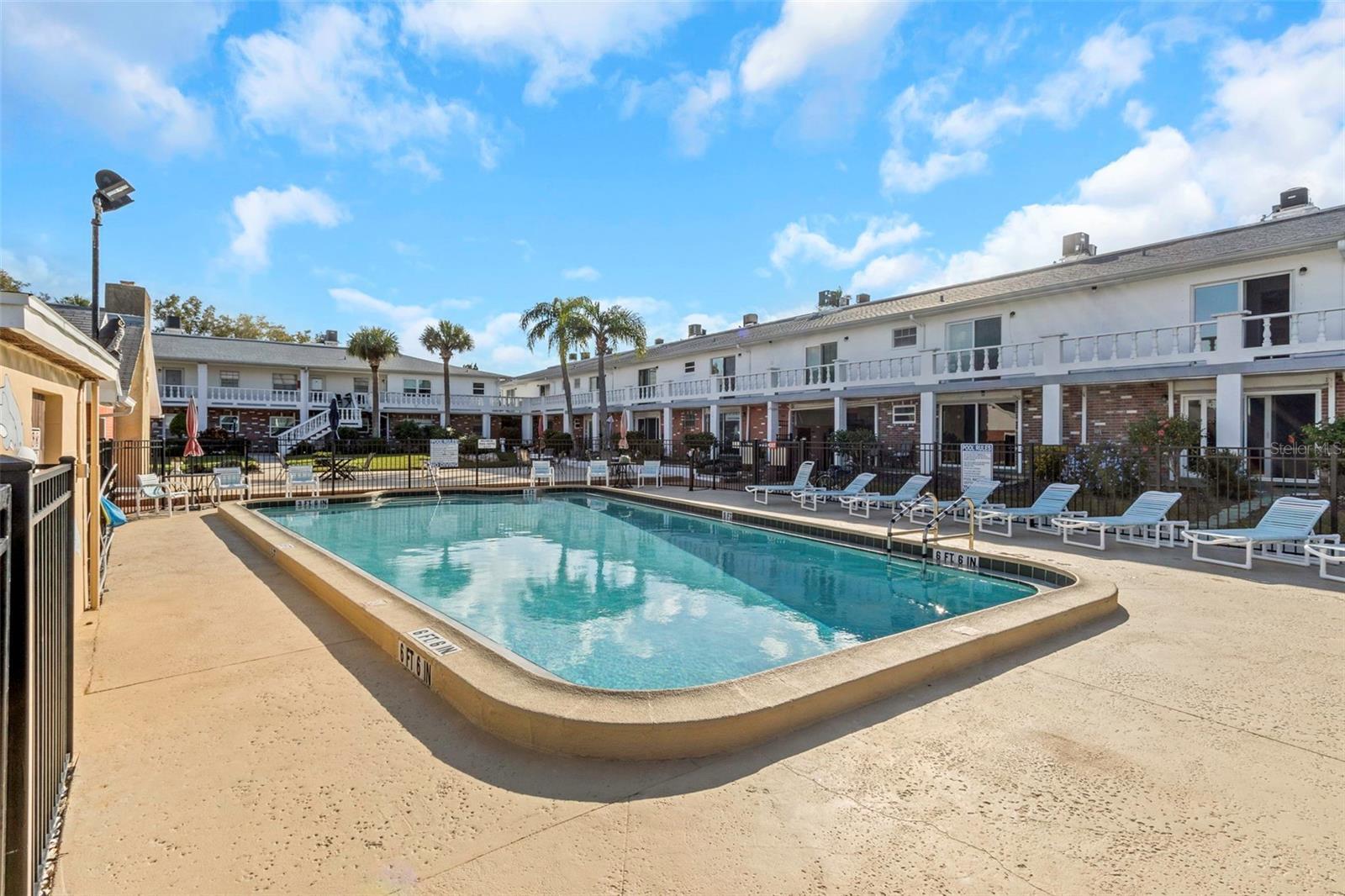 Enjoy Florida Lifestyle living in this 1/1 first floor condo in 55 and over community. Fully furnished and move-in ready. Just bring your toothbrush. It features newer kitchen, flooring, impact windows and doors for peace of mind. Cozy up to the decorative fireplace or step through the back sliders from the large size primary bedroom to a stunning community pool view. Outside, take advantage of the pretty courtyard, clubhouse, shuffleboard and amenities in this vibrant community. Centrally located to everything, nearby gorgeous beaches and parks. Close to downtown New Port Richey for local events, festivals, great restaurants and shopping. LOW HOA, NO FLOOD INSURANCE REQUIRED. No damage from the 2024 Hurricanes.