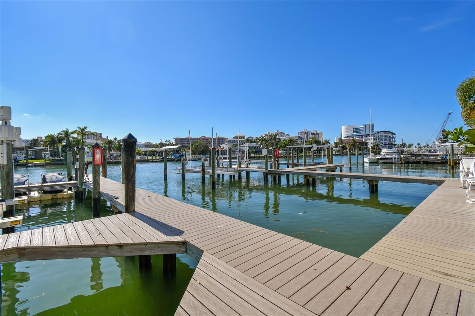 Welcome to Coastal Bliss at Paradise Cove Townhomes on Clearwater Beach, featuring 4 levels of luxury living along with a deeded boat slip & 12K lb boat lift with remote control! The Perfect Place for the entire family or perfect for an income producing Vacation Rental (Very Rare 3 night Minimum Rental on Clearwater Beach). Currently set up for and being used as a very popular vacation rental. This beach townhome is located on the very exclusive Brightwater Drive on the intercoastal, yet just several blocks from restaurants, shopping, beach, bars, night life, and more. This 2400 sf, 3 bedroom and 3 full bath town home comes with everything your family or renters need including an additional private 1,000+ sf rooftop entertainment sun deck, with an elevator that stops at all levels, including the sun deck. Plus plenty of parking with your own private 1200 sf 2 car private garage, with 2 car private driveway (parked in tandem). The garage also has a lounge area that is currently set up with sectional couch, ping pong table, full size fridge and TV. The Lounge area leads to the 1st floor lanai with your own private Gas barbecue grill overlooking the heated pool & boat slips. The porch has direct access to the beautiful community heated pool and docks. Second Floor features: Living & dining rooms and fully stocked kitchen with stainless steel appliances. You will love the beautiful view of the Intracoastal Waterway overlooking the boat docks and pool deck from the 2nd floor balcony! Down the hallway is the 1st guest bedroom with queen size bed and full bathroom. 3rd Floor features: The Primary suite with a King size bed and in-suite bath that includes a large jetted whirlpool tub and separate large shower and two vanities. Down the hallway is the laundry room with newer washer & dryer, & the 3rd bedroom with 2 twin beds with it's own private bathroom. This bedroom has 10 foot high double doors with a small balcony for a streetside view & glimpse of the Gulf. All beds have very large cedar lined drawers under them and all night stands, and dressers are also cedar lined. 4th Level Features: Private Rooftop Terrace & Entertainment Sun Deck area. From the rooftop terrace you get 360 views of the sunsets over the Beach and the Intracoastal Waterway as well as the night lights of the bayside. Enjoy a glass of wine or cup of coffee at the outdoor table gas fire pit surrounded by a comfy outdoor sectional. Extras Include: HD Smart TV’s in every room; a Beach Wagon loaded with 6 beach chairs, 2 Beach Umbrellas, beach towels & cooler! All Major components have been updated & maintained over the years including: Exterior recently painted, Brand new roof (2021) with lifetime warranty; and 2 brand new HVAC units (Feb 2026). While Only 2-3 blocks from the soft sands of Clearwater Beach and the main strip, this townhome community still feels like private luxury retreat to live the amazing Florida Salt Life.... Make your appointment to view today!