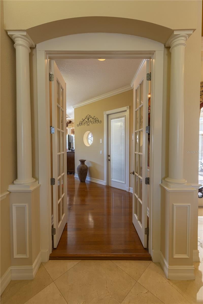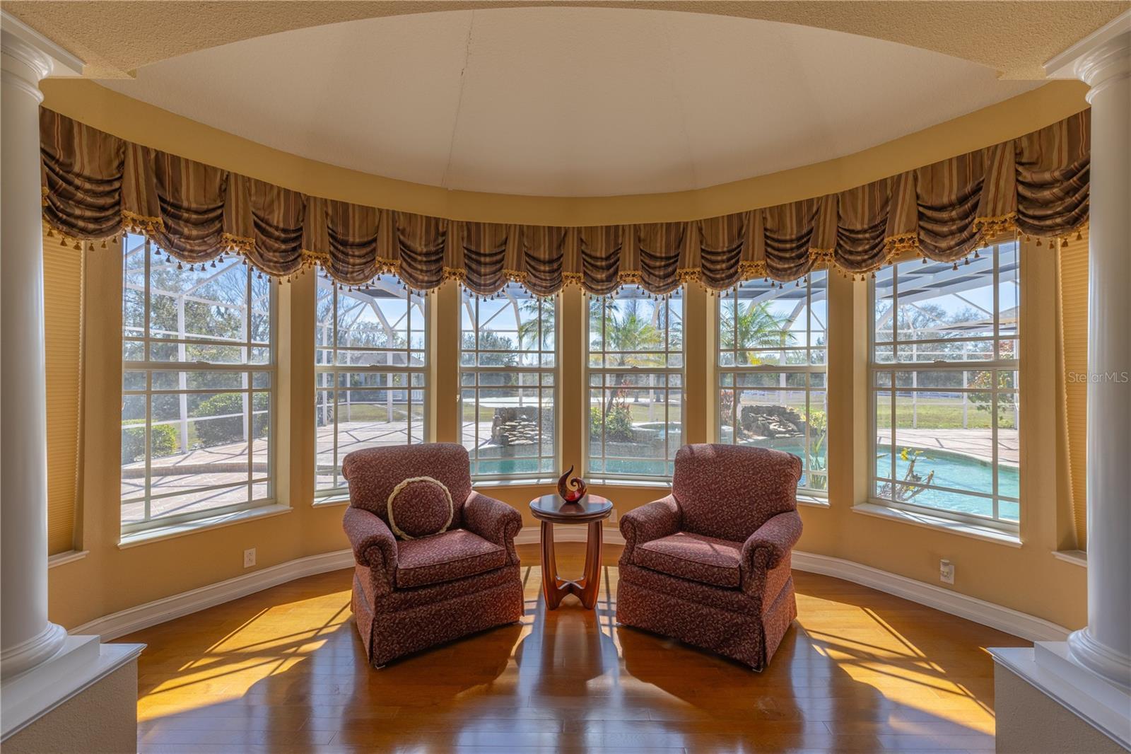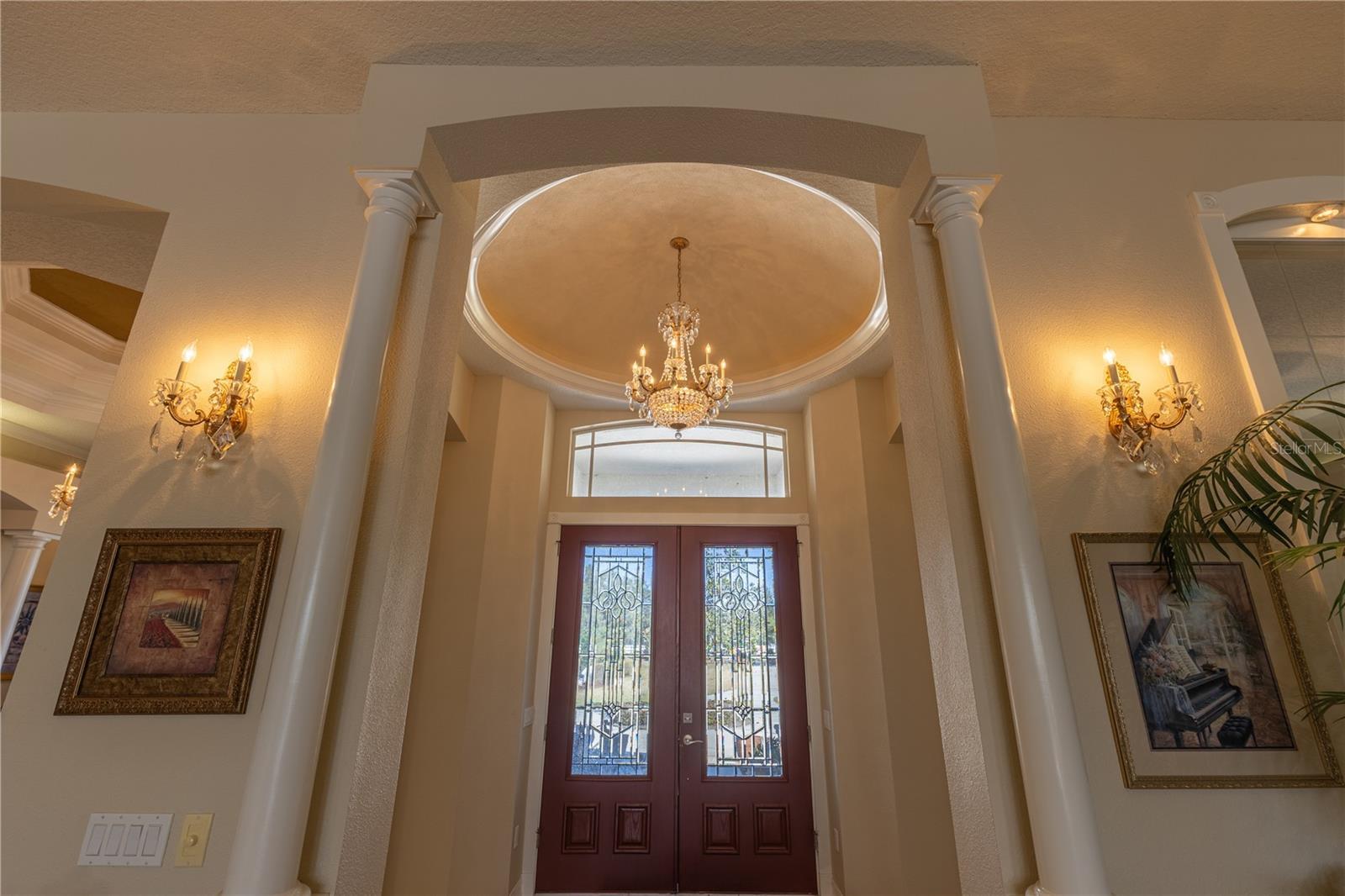A sprawling 6,349 sq. ft. luxury residence set on 5 pristine acres, this exceptional equestrian estate blends refined living, privacy, and country elegance within the exclusive, gated 5-home equestrian community of Canterfield Farms. Thoughtfully designed for both grand entertaining and everyday comfort, this home features four bedrooms, five baths, four living rooms, a home movie theater, executive office, exercise/flex room, and abundant storage throughout. A dramatic formal entry welcomes you with polished travertine marble floors, soaring 12’ coffered and inlaid wood-beam ceilings, and a striking double-sided fireplace. To the right, the formal dining room is anchored by a radiant crystal chandelier; to the left, an impressive executive office offers a quiet retreat. The chef’s kitchen is the heart of the home, showcasing high ceilings, two sinks, a pot filler, and generous prep and storage space. It flows seamlessly into the expansive great room, creating an ideal setting for gatherings. The first-floor primary suite is a true sanctuary, featuring a private glass atrium, rich wood floors, oversized tub, walk-in glassed shower, dual vanities, and a double walk-in closet. With four distinct family rooms, there is space for every lifestyle need—from relaxation to recreation. All bedrooms are on the first floor. Two guest rooms have a Jack & Jill bathroom with separate double vanities and a shared workspace. The fourth guest room or in-law suite is in a private cove with adjacent full bath and private living room. The home movie theater with half bath elevates entertainment to a cinematic experience. Outdoor living is equally captivating: a resort-style pool, gazebo overlooking the serene pond and fountain, and a cozy fire pit create a peaceful, picturesque environment. For the horses or workshop needs there is a 3-stall concrete block barn, tack room, and two-car carport. Located in this gated community is a private equestrian center with boarding and training facilities. Nearby, miles of scenic riding and walking trails wind through Triple Creek Nature Preserve, Balm Boyette Scrub Preserve, and FishHawk Nature Preserve, offering endless outdoor adventures. Top-rated schools and convenient access to major roadways further enhance the appeal of this exceptional location. Experience the rare combination of luxury, acreage, and equestrian living. Contact us today to schedule your private tour.