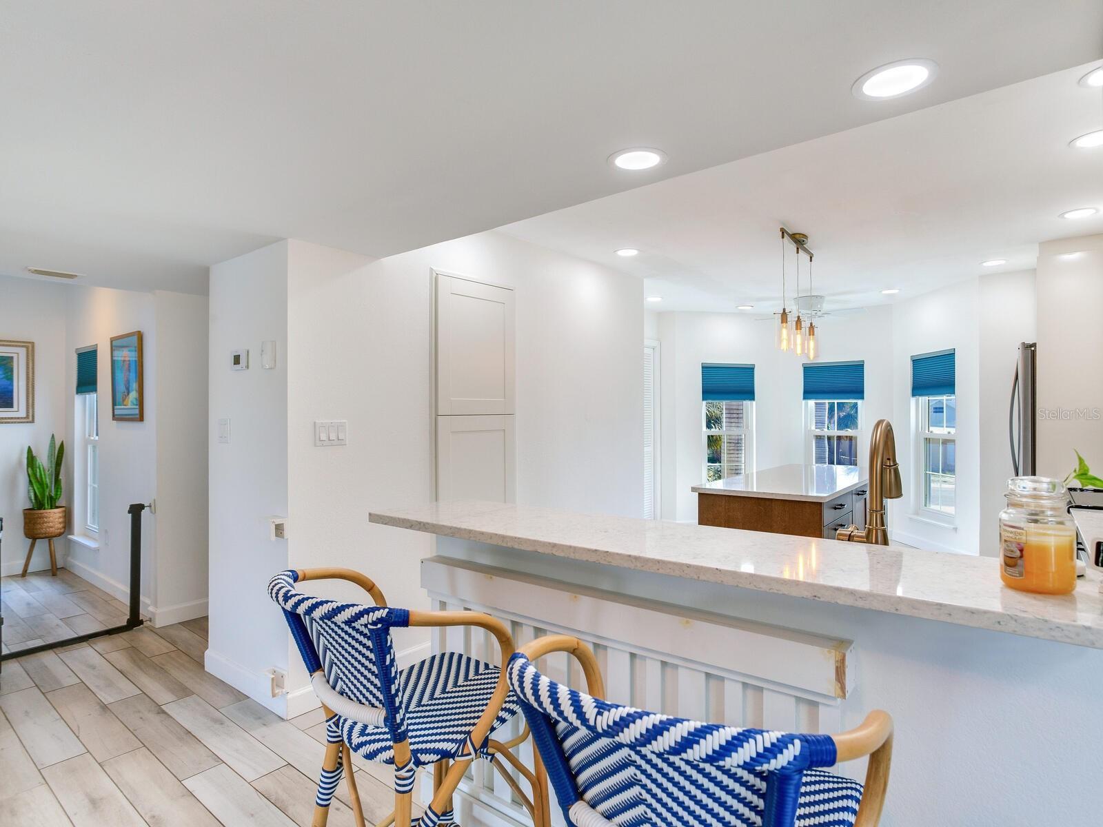 ELEVATED WATERFRONT LIVING | POOL | PRIVATE DOCK | NEW ADDITION | MODERN UPDATES Welcome to 410 140th Ave E in the heart of Madeira Beach — a beautifully elevated waterfront residence where modern coastal design meets relaxed Florida living. This light-filled home offers clean architectural lines, fresh contemporary finishes, and tranquil water views that capture the essence of beachside luxury. The exterior welcomes you with a soft coastal palette, tropical landscaping, and elevated construction designed for both curb appeal and peace of mind. Inside, the open and airy layout is enhanced by updated flooring, neutral coastal tones, and an abundance of natural light throughout. The kitchen features crisp white cabinetry, sleek countertops, stainless appliances, and a functional breakfast bar ideal for everyday living or entertaining. Multiple living spaces provide flexibility for guests, a home office, or multigenerational living arrangements. A brand-new addition completed in September significantly expands the home’s functionality, introducing an additional spacious family room, a private bedroom with its own ensuite bath, and a full laundry room — creating an ideal guest suite, in-law quarters, or private retreat. This thoughtful expansion blends seamlessly with the original design while adding valuable square footage and versatility. The primary suite serves as a tranquil escape with soothing coastal hues, generous proportions, and access to outdoor views. The primary bath is beautifully appointed with elegant finishes, a freestanding soaking tub, and designer lighting that creates a spa-like ambiance. Step outside to your private backyard oasis where lush tropical landscaping surrounds a sparkling pool and paver deck overlooking the water. Boating enthusiasts will appreciate the composite dock and jet ski lift, completed in 2023 and capable of housing a pontoon boat. Enjoy direct water access for kayaking, paddleboarding, jet skiing, fishing, or a quick boat ride to the Gulf through Johns Pass Inlet. From your private dock, you can marvel at daily sightings of dolphins, occasional manatees, and breathtaking sunsets. Located just one mile from the famous Johns Pass Village, the home offers easy access to vibrant shopping and dining. This elevated coastal dream truly embodies the ultimate beach lifestyle. Additional upgrades include a new roof, hurricane-impact windows, and sliding glass doors, offering enhanced durability, energy efficiency, and storm protection. A rare opportunity to own a thoughtfully updated waterfront home where every day feels like a vacation.