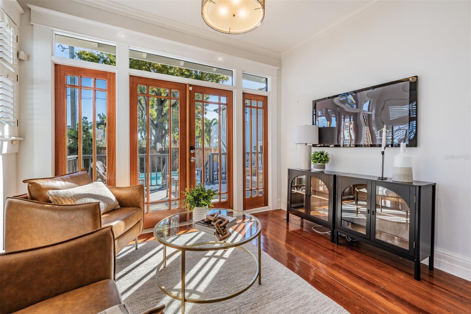 Welcome to 1008 S Dakota Ave, ideally situated in the heart of Historic Hyde Park, just steps from the iconic Bayshore Blvd. This charming 1916 bungalow welcomes you with a classic front porch, perfect for entertaining family and friends. Inside the main home (2267sqft), you’re greeted by original heart pine wood floors and a versatile floor plan designed to adapt to today’s lifestyle. Off the foyer are a formal living room and dining room, both easily suited for a home office, playroom, or additional flex space. Throughout the home, original windows are beautifully accented with trim and plantation shutters. Moving through the home, an open-concept kitchen and family room creates an inviting gathering space. The 2024 renovated kitchen is a real standout, featuring custom soft-close cabinetry, a full quartz backsplash, apron-front sink, and premium Thermador appliances, including a microwave/wall oven combo, warming drawer, and induction cooktop. The large island with full-depth cabinetry offers ample storage and is sure to be a crowd favorite. Just off the kitchen, a morning bar provides the perfect spot for an espresso station, complete with a paneled beverage refrigerator. On the other side is a conveniently located laundry room and is complete with custom cabinetry. The main level also includes two bedrooms and a full bath. Upstairs, the private primary suite awaits with newer wood floors, dual vanities, a marble shower, a dedicated makeup vanity, and multiple closets ideal for shared living. Back downstairs, a flex space leading to the pool area works beautifully as a secondary TV room or cozy reading nook. Outside, enjoy a spacious deck ideal for summer barbecues and poolside gatherings. The heated saltwater pool, completed in 2023, is ready for its next owners. A detached two-car garage offers ample storage and parking with a studio apartment (approx. 450sqft) above which was built in 2019 and is approximately 450 sq ft and includes a kitchenette and full bath, perfect for guests. Unbeatable location, just four homes from Bayshore Blvd, Plant High School and minutes from Hyde Park Village, dining, shopping, and all that Hyde Park has to offer.
