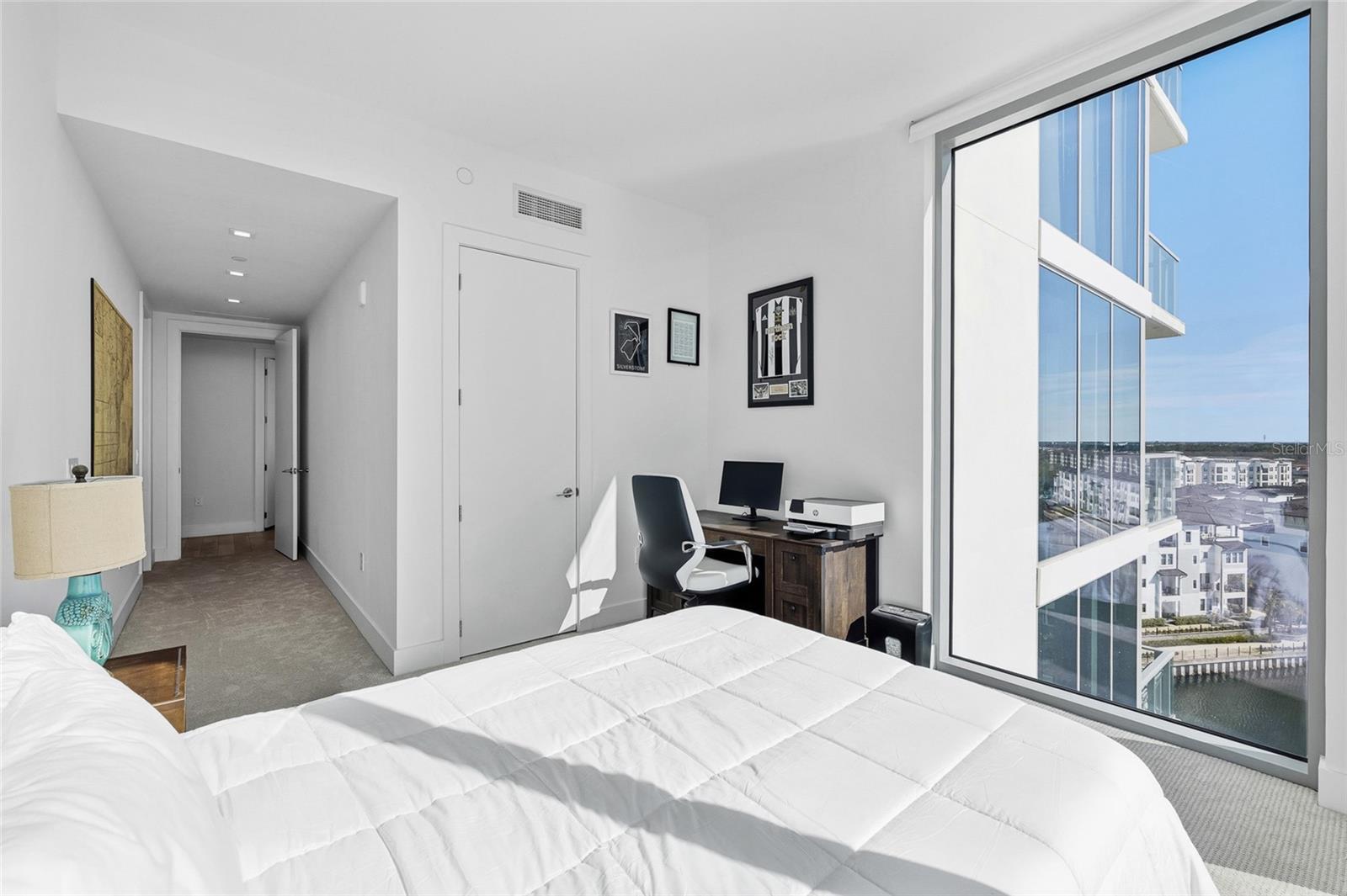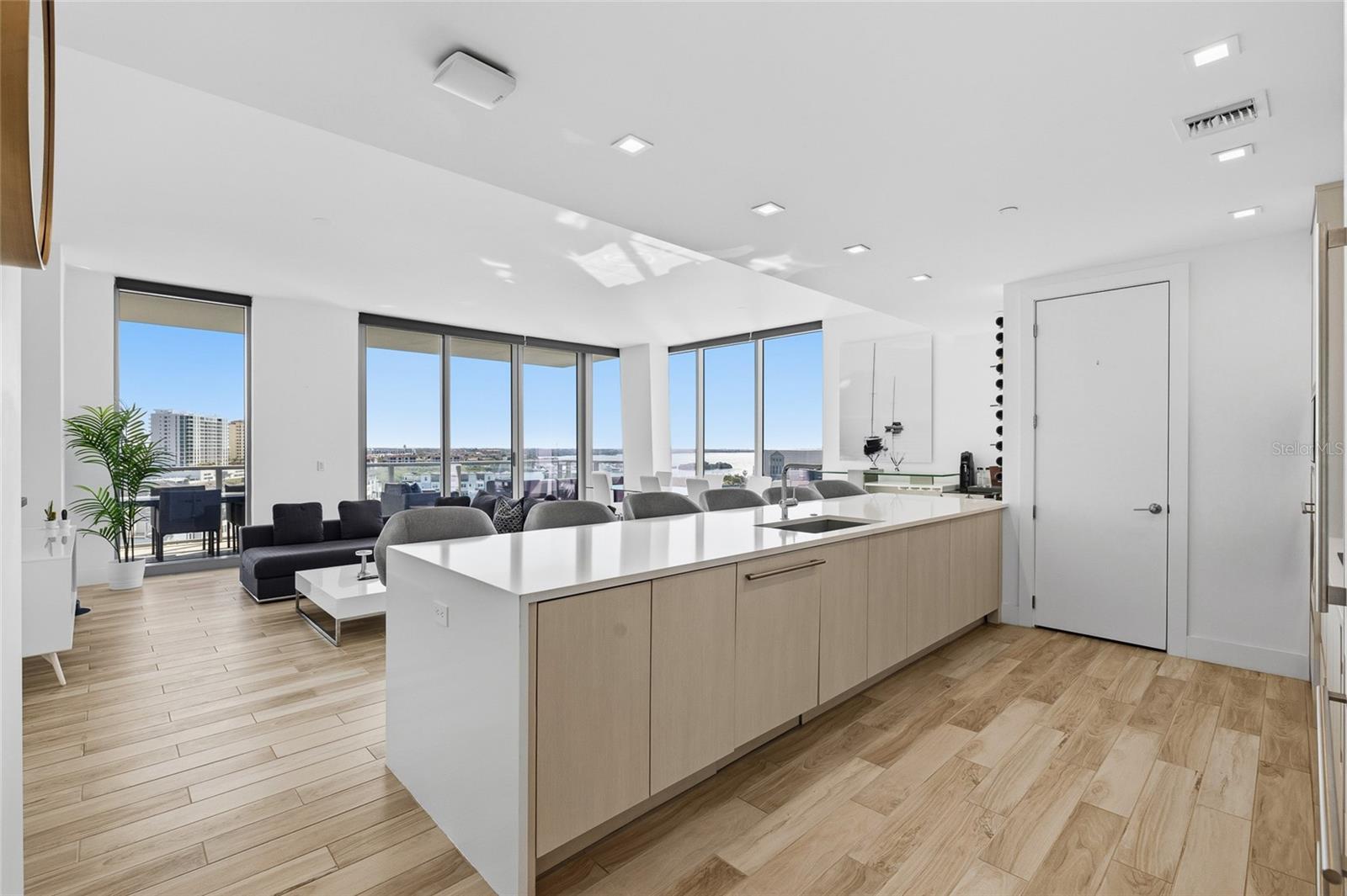Sunlight pours across shimmering bay waters and the Tampa skyline into this 8th-floor, 4 bedroom, 3.5 bath Marina Pointe residence, where every room frames the bay and every balcony invites you outdoors with breathtaking views that will never be obstructed. Enter into a 24-hour staffed lobby that leads to the elevator sending you up 8 floors to the light and bright private foyer. Inside, the living room, dining room, and kitchen flow together seamlessly, with floor-to-ceiling, hurricane-rated windows keeping the water at the center of daily life. One of this unit’s two terraces is off the living room, creating an effortless space for morning coffee, sunset cocktails, or dining alfresco. This chef’s kitchen is incredibly functional and refined, featuring European cabinetry, quartz countertops, a backlit wine display, SubZero and Wolf appliances, and a pantry with added shelving, a space that serves everyday living while remaining strikingly elegant for guests. A convenient half bathroom sits in the hallway for visitors, keeping sleeping quarters private. The primary suite is secluded at the rear of the home, offering its own balcony, 2024 tile flooring, and an expansive walk-in closet with extensive custom organizers. The spa-like primary ensuite bath provides dual sinks, a vanity seat, LED-lit mirrors, two water closets (one easily converted to storage), and a wet room with a freestanding soaking tub, glass enclosure, bench, and intricate tile detailing. Bedroom two sits on the opposite end of the home, set up like an additional suite it is the perfect spot for guests! It has its own access to the main balcony, 2 spacious built-in closets, and a full ensuite bathroom with a walk-in shower. Bedrooms three and four are both comfortable sized, joined together by a full Jack-and-Jill bathroom, each offering generous storage and striking views. This unit’s value just keeps building! It also provides electric shades, closet organizers throughout, a laundry room with extra storage, 2 parking spaces, and a climate controlled storage unit! Marina Pointe elevates waterfront living with amenities that rival a resort: a heated rooftop pool overlooking the bay, a state-of-the-art fitness center, golf simulator, steam and massage rooms, social lounges, guest suites, fire pits, grilling areas, and a dedicated dog park. The community’s prime location in the Westshore Marina District places Downtown Tampa, St. Petersburg, and Tampa International Airport just minutes away. This residence is a rare opportunity to experience Tampa Bay at its finest. Schedule a private tour today to see how Marina Pointe transforms everyday life into an extraordinary waterfront experience- and for those looking to expand the Marina lifestyle even further, there is a separate 40 ft boat slip for sale. Do not miss out on this incredible opportunity!