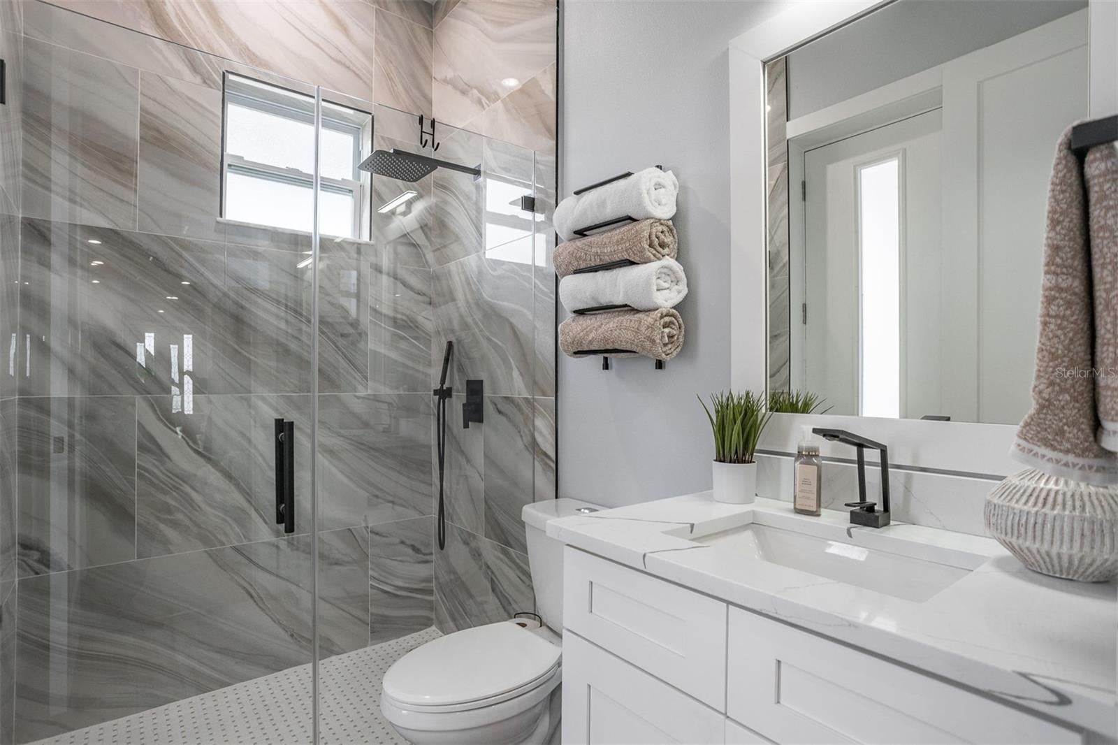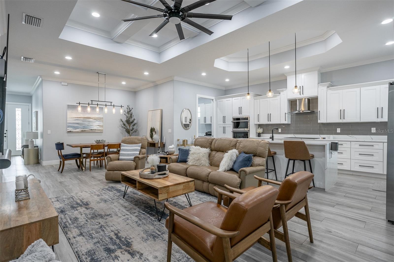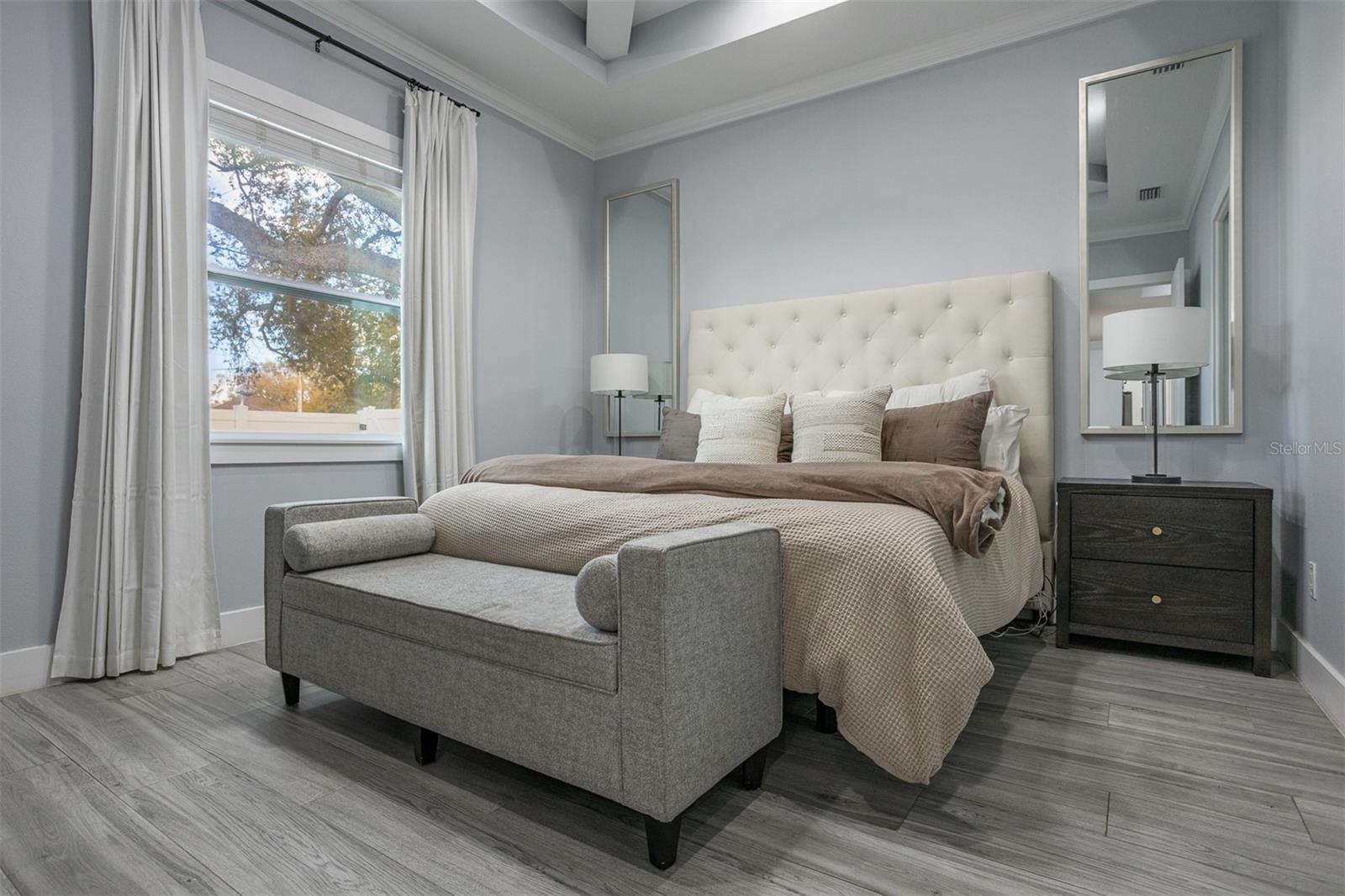 Newer construction without the WAIT, this modern, move in-ready home is located in the heart of West Tampa, just minutes from Raymond James Stadium. The exterior features crisp white stucco, a contemporary roofline, and an expansive paver driveway leading to a two car garage. Inside, enjoy an open concept layout with plank tile flooring, soft neutral finishes, an abundant natural light and WHOLE HOUSE FILTRATION SYSTEM (soft water and carbon filter) throughout. The chef’s kitchen anchors the home with a large quartz waterfall island, white shaker cabinetry, moody matte black hardware, stainless steel appliances, and modern pendant lighting- perfect for everyday living and entertaining. The primary suite offers a true retreat with tray ceilings and a spa inspired bathroom featuring a double vanity with quartz countertops and a striking freestanding soaking tub. ENJOY the CUSTOM upgraded, designed-walk in closet system. Step outside to your FULLY fenced in backyard, featuring an integrated irrigation system, a cozy lani, and plenty of room to customize your own personal landscaping vision or pool. Centrally located near St. Joseph’s Hospital, AdventHealth Tampa, Tampa General Hospital, James A. Haley VA Hospital, Shriners Children’s Hospital, and numerous specialty medical centers. Convenient to University of Tampa, Downtown Tampa, Midtown, Tampa Heights, the Riverwalk expansion, and Tampa International Airport. Schedule your private showing today and experience newer construction living in one of Tampa’s most convenient locations.