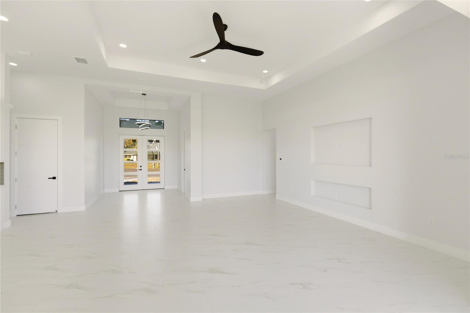 Where architecture, space, and fairway living come together. Tucked away at the end of a quiet cul-de-sac in the heart of Rotonda West, this newly built 2026 custom home is something special, created for those who don’t just enjoy golf, but truly live the lifestyle. Set on a rare premium tip lot, the home offers exceptional privacy along with peaceful, open views of shimmering ponds and beautifully maintained fairways. Designed for those who appreciate the golf-course lifestyle, the home enjoys front-row views of the fairway while remaining free from through traffic. Eastern exposure allows for soft morning light throughout the main living areas and comfortable shaded evenings, ideal for outdoor relaxation and entertaining. The interior is defined by architectural scale, light, and thoughtful proportions. Twelve-foot ceilings in the great room, foyer, and office create a bright, open atmosphere, while a 14-foot wall height at the front patio adds a strong architectural presence. A 10-foot sliding glass door frames golf-course views and enhances indoor-outdoor flow. The home offers 3 bedrooms, 3 bathrooms, and a dedicated office/den, along with a 3-car garage featuring oversized 18’ x 8’ and 9’ x 8’ garage doors. Every element of the home is custom-made, with no builder-grade finishes. The kitchen is custom-designed and finished with granite countertops. Additional features include impact-rated windows and sliding glass doors, as well as gutters installed around the entire home for long-term durability. Rotonda West is a deed-restricted community known for its five championship golf courses, scenic waterways, and proximity to boating, fishing, and Gulf beaches. The community offers a balanced lifestyle with natural beauty, recreation, and a peaceful residential environment. A rare opportunity to own a newly built, custom home in one of Rotonda West’s most private and desirable golf-course settings.