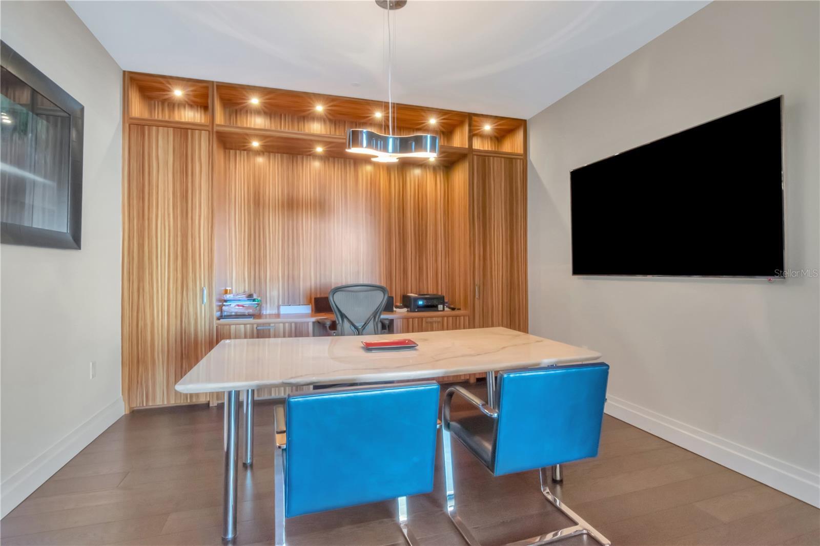 A rare and extraordinary penthouse residence crowns The Plaza on Harbour Island, offering an unrivaled lifestyle defined by scale, sophistication, and sweeping coastal views. Encompassing 4,369 square feet, this one-of-a-kind, custom home features four bedrooms, four baths, a private home office, and a generous bonus room, all thoughtfully curated for both grand entertaining and everyday living. Arrive via a private elevator foyer and step into a light-filled, open-concept residence framed by breathtaking 180-degree southern vistas spanning the Port of Tampa, Hillsborough Bay, Bayshore Boulevard, and the St. Petersburg skyline beyond. Floor-to-ceiling windows and seamless indoor-outdoor flow capture the drama of the waterfront, while a full Lutron system elegantly controls lighting and motorized shades throughout the home. The chef’s kitchen is both striking and highly functional, anchored by 2" marble countertops, custom cabinetry, double pantries, and a suite of premium appliances including Sub-Zero refrigeration and Miele cooking and 204 wine bottle storage. A large island and connecting peninsula create a natural gathering space, complemented by a separate seating area and wine storage for up to 204 bottles—perfect for hosting with style. The primary suite is a true sanctuary, featuring a custom-designed, floor-to-ceiling closet with tailored storage, a private vanity area, and a spa-inspired bath with marble finishes, dual vanities with ambient toe-kick lighting, and a steam shower. Each secondary bedroom offers custom closets and en-suite baths adorned with refined mosaic tile, while one oversized bedroom functions beautifully as a private in-law suite. A flexible bonus room invites endless possibilities—media lounge, wellness studio, or game room—while the spacious laundry room provides exceptional storage and convenience. Four parking spaces, including one with an EV charger, and two climate-controlled storage units complete the residence. Residents of The Plaza on Harbour Island enjoy access to recently renovated, resort-style amenities including an infinity-edge heated pool and spa, valet parking, 24-hour front desk and concierge services, a fully equipped wellness center and spa, business facilities, and elegant community spaces. Perfectly positioned within walking distance to Water Street, Sparkman Wharf, Benchmark Arena, the Tampa Riverwalk, dining, shopping, and entertainment, this exceptional penthouse offers effortless access to downtown Tampa, St. Petersburg, major interstates, and Tampa International Airport. This is waterfront penthouse living at its finest—refined, rare, and truly unforgettable. Washer, dryer and all TVs convey. Guest site is available as an additional purchase. Buyer to make a one-time contribution of 0.2% of the purchase price to the Plaza capital reserve fund at closing.