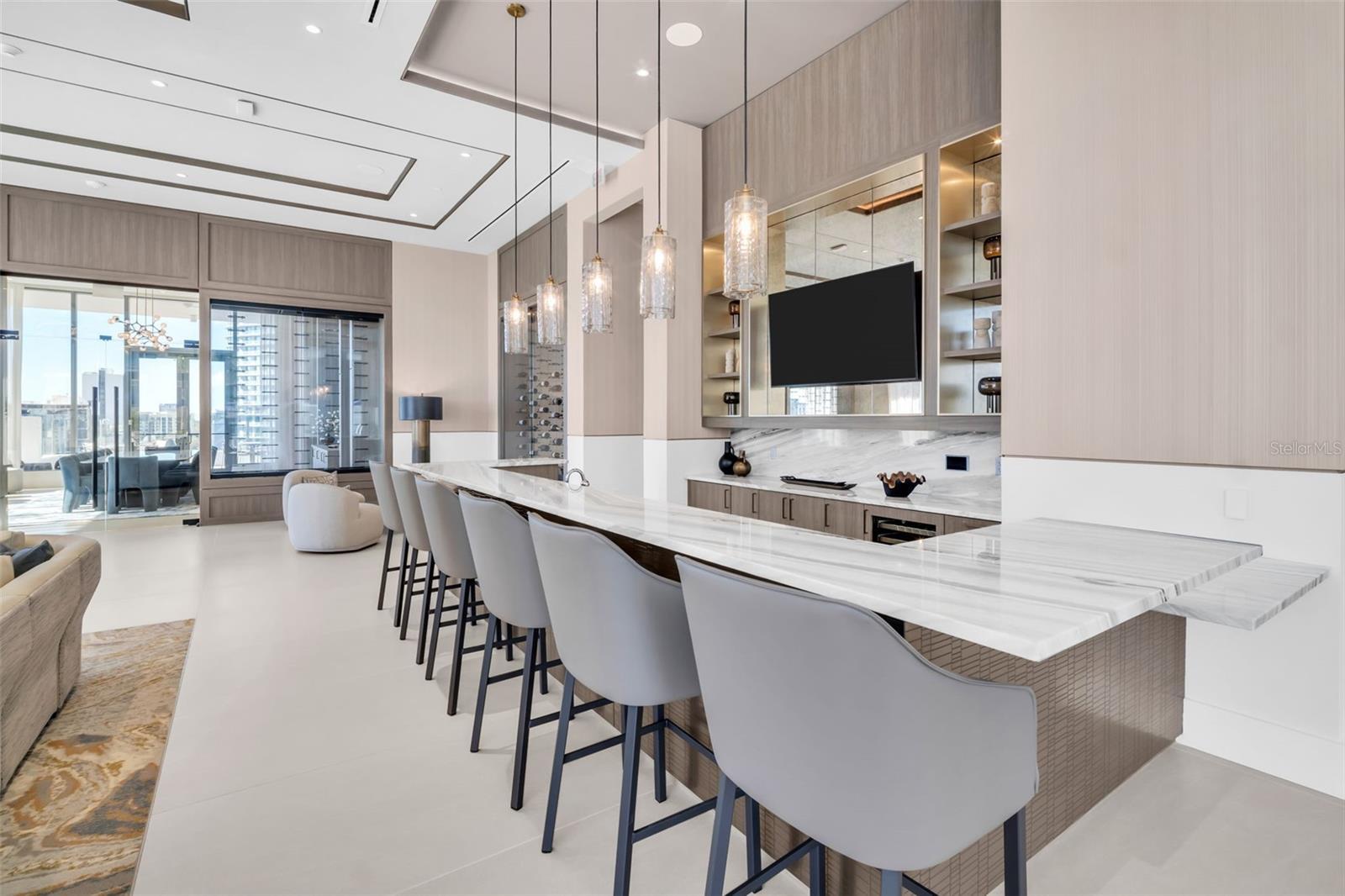 Welcome to elevated downtown living at the newly completed Art House, St. Petersburg's striking 42-story architectural landmark. Positioned on the 21st floor, this expansive Artisan corner residence offers 2,167 square feet of interior living space with an additional 359 square feet of private outdoor terraces, totaling 2,526 square feet of thoughtfully designed indoor-outdoor living. This 3-bedroom, 3.5-bath residence is framed by dramatic floor-to-ceiling glass walls that capture sweeping bay and city views, filling the home with natural light and delivering spectacular sunset backdrops. The open-concept Great Room is ideal for both everyday living and entertaining, seamlessly extending to a generous main terrace-perfect for dining al fresco or relaxing above the city. The chef-inspired kitchen features European-style cabinetry, quartz countertops, large-format porcelain surfaces, and a premium JennAir appliance package, thoughtfully curated to balance modern design with functionality. The Owner's Suite serves as a private retreat with its own dedicated terrace, walk-in closets, and a spa-like bath complete with a glass-enclosed shower, elegant vanities, and premium fixtures. Two additional guest suites offer ensuite baths, providing comfort, flexibility, and privacy. A rare and highly coveted offering at this price point, this residence includes TWO assigned parking spaces-an exceptional convenience in Art House, where many units are limited to a single space. This added value enhances both everyday livability and long-term appeal in the heart of downtown. Ownership at Art House extends well beyond the residence itself. Residents enjoy a 24/7 staffed lobby with concierge-style services, valet or self-parking, and an exceptional suite of resort-level amenities. The Cloud 9 amenity level features an elevated pool deck with cabanas and spa, firepit lounges, state-of-the-art fitness and yoga studios, luxury spa facilities, private dining and club rooms, theater, game lounge, business hub, guest suites, and thoughtfully designed pet amenities. Perfectly positioned in the heart of downtown St. Petersburg, Art House places you moments from the waterfront, marina, museums, world-class dining, shopping, cultural attractions, and co-work spaces-offering a lifestyle that is both effortlessly refined and distinctly urban.