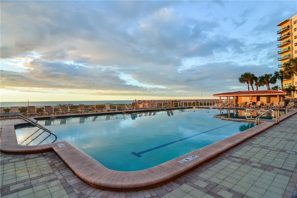 Come HOME to the beach everyday OR use this condo as a great waterfront weekend getaway! Simplify your lifestyle and enjoy watching the dolphins play and the spectacular sunsets over award winning Clearwater Beach while eating dinner or drinking a cocktail on the patio. Let the crashing waves lull you to sleep at night and help you relax. The building is located on North Clearwater Beach and is a short distance walk or golf cart ride away to all of the restaurants and fun things to do! Enjoy all of the awesome amenities this building has to offer including an Olympic size swimming pool which is waterfront, outdoor gas grills, private fishing pier, media room, fitness room, game room and shuffleboard. Experience the Lifestyle! This unit is available May 1, 2025 thru October 31, 2025.