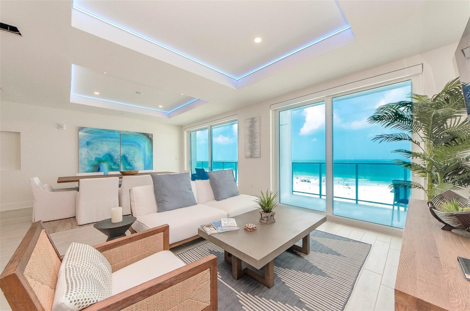 Located on the world renown northern end of Clearwater Beach, this exclusive building offers privacy, and a spacious unit at the height of luxury. Its offers 4 bedrooms 3.5 bathrooms, its luxurious design mixes style with pleasure and the latest technology, color changing led lighting, electronic sunshades, TVs in every room, kid studio that sleeps 6 , all while enjoying the breathtaking views Clearwater Beach has to offer. Direct elevator access leads to the private foyer which spills into the gourmet kitchen equipped with stainless steel appliances. High ceilings, spa-like master bedrooms, and recessed wall fixtures add lavish touches. This unit comes complete with surround sound, washer and dryer, dishwasher, and wine cooler. Walk to pier 60, Pura Vida allows for shopping and dining while maintaining the convenience and seclusion. View the dazzling expanse of the Gulf with views through the floor to ceiling hurricane-proof windows and glass paneled balcony. Amenities include 2 reserved covered parking spaces, resistance pool, spa, fitness and clubroom. Available for long term lease October 1 2024