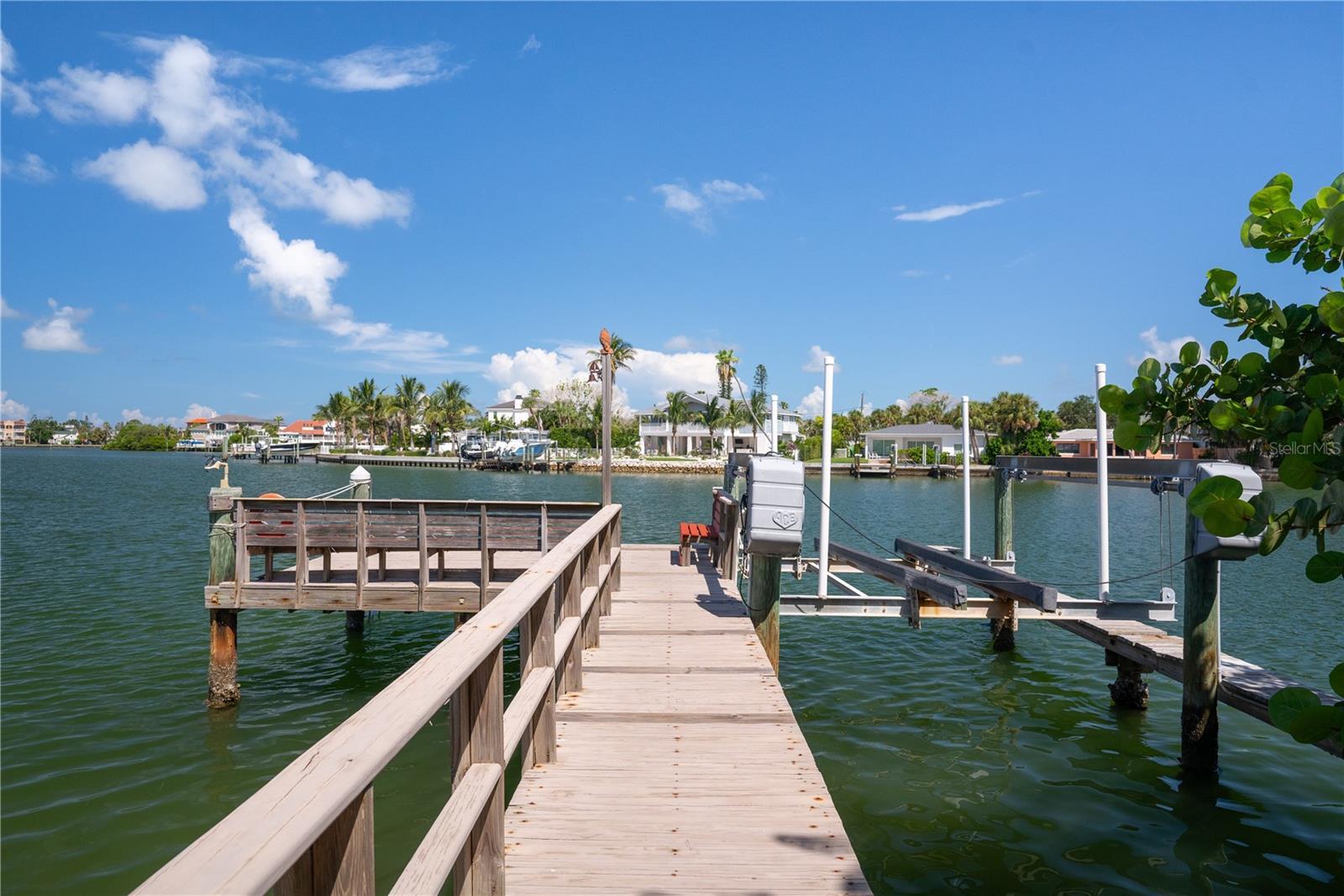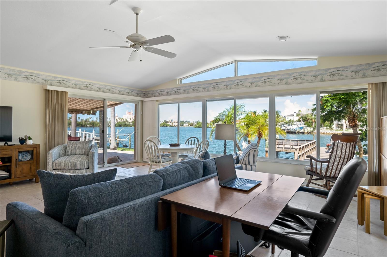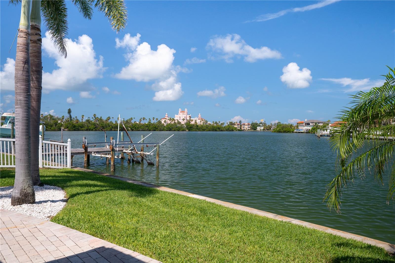 The ideal Vacation home directly on the water with 24/7 mesmerizing views of the famous Don Cesar Resort and Spa. Available SEPTEMBER 1, 2025. The daily sunsets are amazing! This home is all about the view and location. The island of Belle Vista in St Pete Beach is the perfect location with dining and shopping very close by with a private beach entry directly across Gulf Blvd for easy access to World renowned St Pete Beach. The house is situated on an oversized, quiet, private waterfront lot with mature landscape. There is a dock with a ladder and landing, perfect for the avid fisherman or kayaking, paddle boarding or just watching the abundance of marine life including Birds, Dolphins and Manatees. The large open waterfront patio is a great place to hang out, it even has a motorized retractable awning for those hot sunny days. The house has 3 bedrooms and 2 baths. It comes fully furnished and equipped. Even bikes, beach chairs and a gas BBQ grill. There is terrazzo and tile throughout with no carpet in the house. A washer and dryer is onsite for your convenience. The large waterfront great room includes a nice desk with a beautiful view for those who continue to work while on vacation. The Master en-suite has a queen bed, the middle room has twin beds and the third bedroom has a queen size murphy bed and retractable desk. The garage has plenty of parking space and comes with a new opener and remote control. There is a 30 day min stay required. Pets are welcome, certain breed restrictions will apply. Hurry before it's gone!