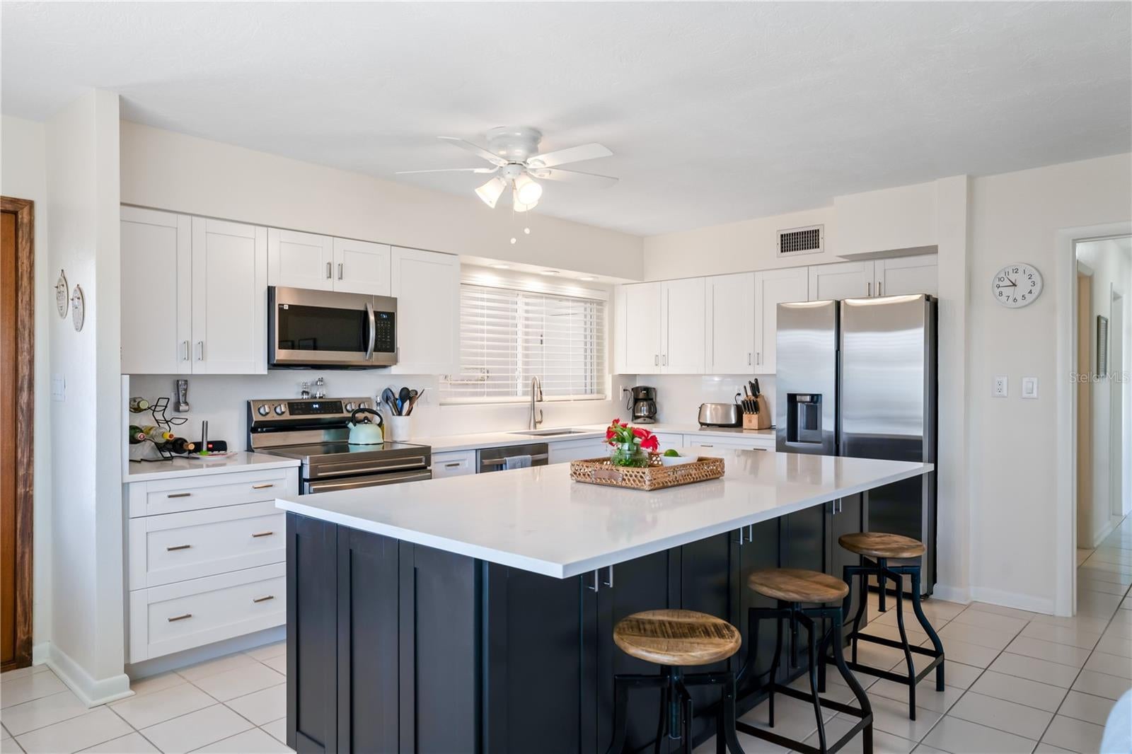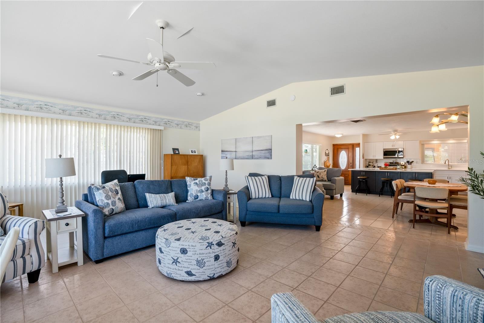 - Ceiling Fans(s), Kitchen/Family Room Combo, Primary Bedroom Main Floor, Open Floorplan, Solid Wood Cabinets, Thermostat, Window Treatments