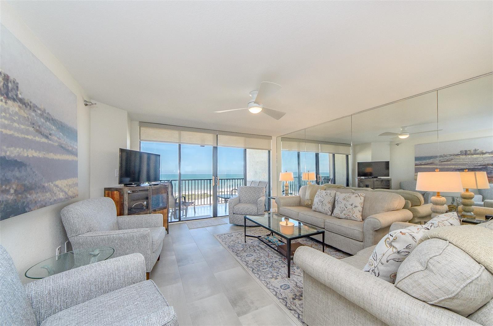 Booked Jan-May 2026. You will enter this STUNNING, NEWLY REMODELED, BEACHFRONT, GULF FRONT, rental and keep saying WOW over and over! NEW, immaculate, clean and beautiful 2 bedroom / 2 bath (sleeps 7) beachfront rental in the very desirable Lighthouse Towers. The entire condo has just been remodeled with new floors, kitchen, appliances, furniture, doors and windows etc. This gorgeous beachfront 9th floor condo has water views from every window! The expansive windows fill the rooms with natural light, and full views of the Gulf of Mexico. The large open floor plan allows for flow between the kitchen, dining area and large living room with wall to wall views of the Gulf. The large living room has brand new coastal inspired furniture, and is fully equipped with cable TV, and wireless internet. The brand new beautiful kitchen has all new appliances, cabinets, counters, and gorgeous views of the wide open Gulf. The kitchen has been fully equipped with all the essentials: dishes, cups, flatware, pots, pans, cookware and cooking utensils and Keurig coffee maker. The large master bedroom with en-suite bath and large walk-in closet has a king size bed, & access to the covered balcony. The 2nd bedroom is equipped with two queen size beds and a smart TV along with views of the sunrise. Sit on the back covered balcony and watch the gorgeous crimson sunsets over the Gulf. Resort-like amenities at Lighthouse Towers include gated entry, grills, cabana, shuffleboard, basketball and a tennis court with pickleball. Awesome location on Sand Key Beach and centrally located to Clearwater Beach, IRB and Belleair and all the fun, restaurants and entertainment the area has to offer. Easy access to St Pete Clearwater and Tampa International Airports. Rental price does not include processing fee, cleaning, association and taxes if rental period is less than 180 days. 2-Week minimum rental period with 10 days prior for association approval. No Pets / No Smoking.