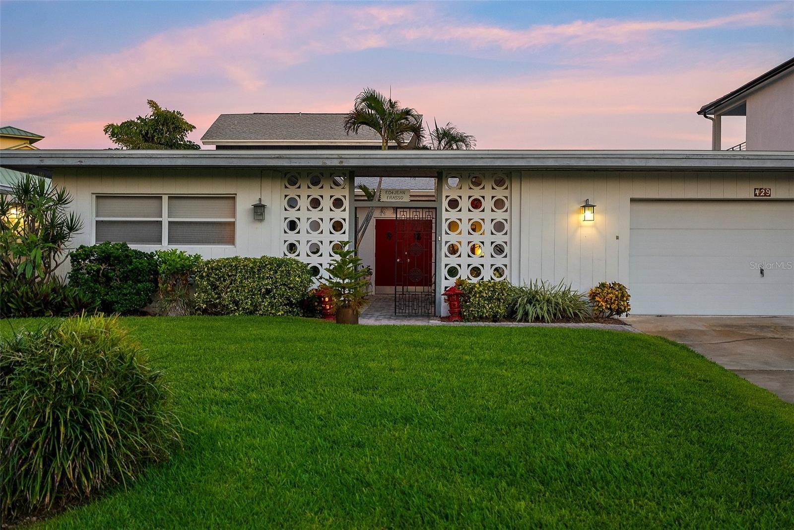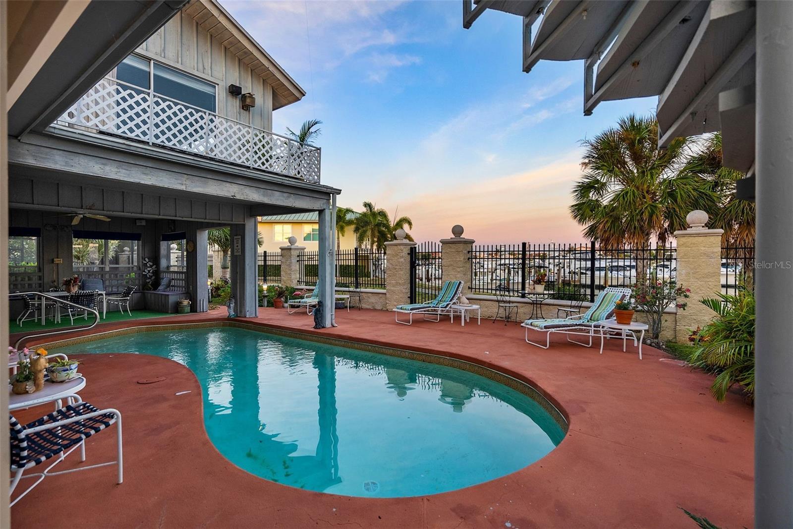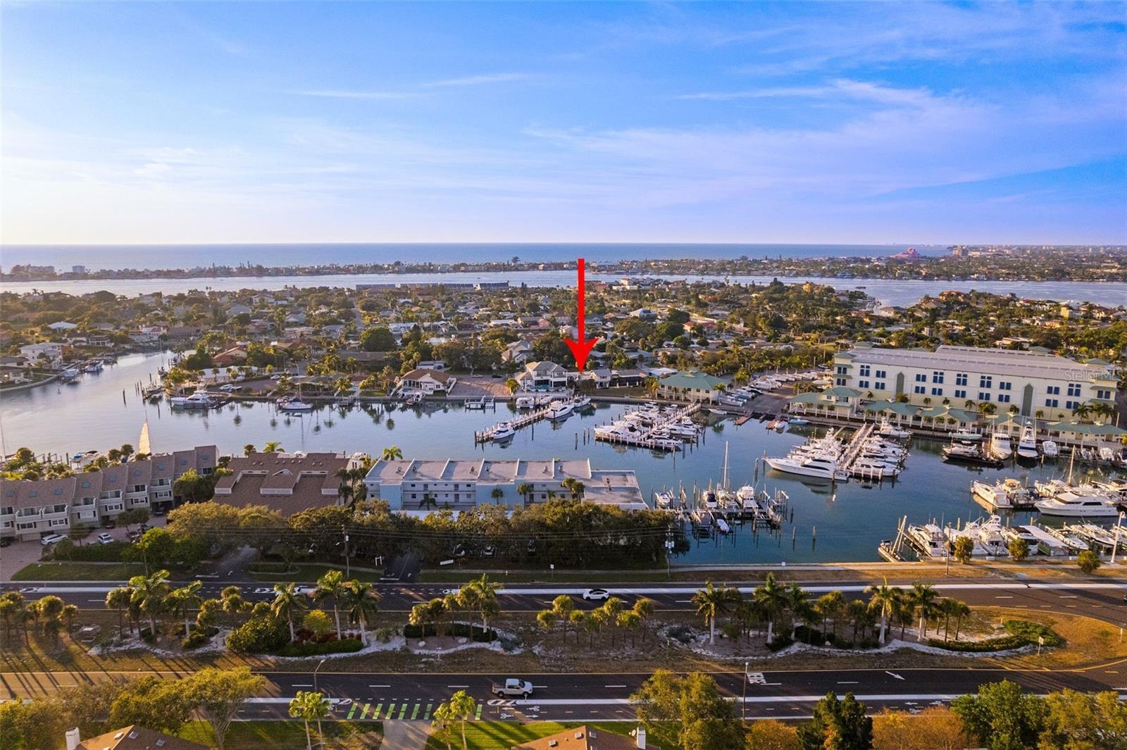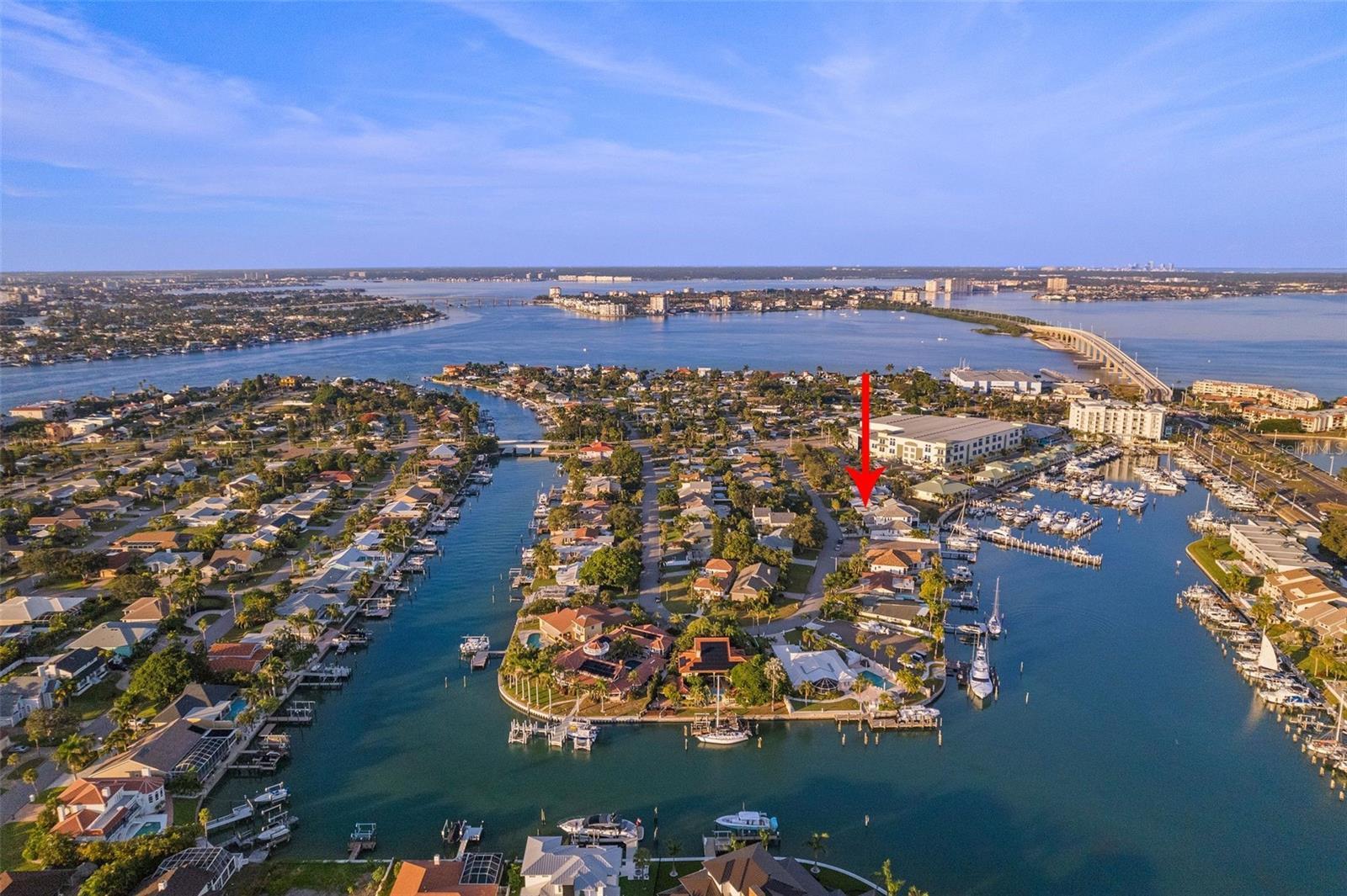 Under contract-accepting backup offers. High and dry, never flooded. A truly one-of-a-kind property with water views and direct access to the Port 32 Marina, right from your back yard, but without the trouble and responsibility of maintaining your own seawall or dock. This is a piece of history and a rare opportunity to own one of the most unique lots on the island paradise of Tierra Verde. The mid-century modern house was built in 1967 and is a testament to the high style of Tierra Verde's early history, the days when Frank Sinatra, Guy Lombardo, Marlene Dietrich, and other stars would gather at the old Port O'Call resort marina. With the original master bedroom on the ground floor and a second master on the 2nd floor, plus a guest bedroom and an office, the home offers a wide range of possibilities for exceptional island living. The pool is set in a generous patio overlooking the marina, and you'll enjoy water views from the main living areas and the upstairs master. Priced over half a million dollars less than the sale price of the home two doors down, which was sold at lot value, this house offers an affordable way to create a new headquarters for the perfect island life. Tierra Verde is one of the most sought-after communities in Tampa Bay, being perfectly located on the Pinellas Bayway between mainland St. Petersburg and the white sands of the Gulf Beaches. Surrounded by supreme boating water and stunning views, the island offers an unmatched lifestyle, with 11 excellent restaurants right on the island, tennis courts, a playground, and a vibrant community, plus, Tierra Verde is the gateway to Ft. DeSoto, featuring miles of walking/biking/running/blading trails, award-winning pristine beaches, world-class kayaking, and so much more. Cross over the new bridge and you'll find the Isla del Sol Yacht and Country Club, and you'll be within minutes of historic Pass-a-Grille, St. Pete Beach, and endless Gulf-front fun. In the other direction you have super quick access to 275, putting the vibrancy of downtown St. Petersburg within a short drive, and you'll have quick access to multiple airports, including TPA, PIE, and SPG. This is truly a rare opportunity to own a piece of the island paradise of Tierra Verde.