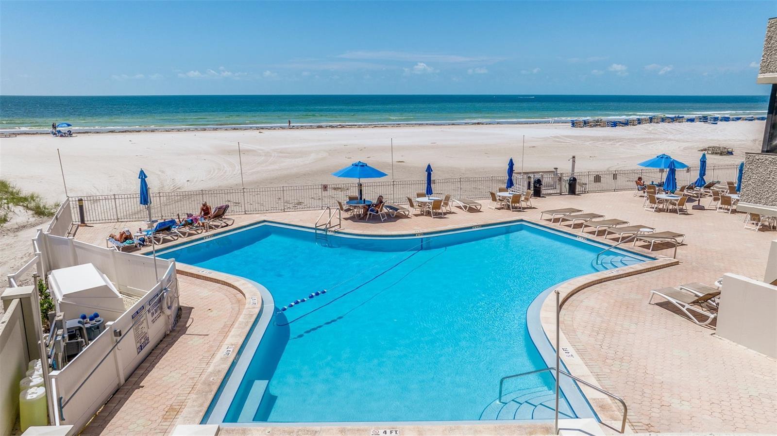Nestled on the second floor of this beachfront condominium in St. Pete Beach, you have beach and City views. This stunning two-bedroom, two-bathroom unit offers the perfect blend of coastal luxury and relaxed living. With direct access to the pristine shores and a sparkling pool, this newly remodeled condo promises an unforgettable coastal getaway. This condo is all about location! With direct access to the beach, you can relax under a beach umbrella, sunbathe, or take a dip in the Gulf at your leisure. Only a short distance away is downtown St. Pete where you’ll find a hub of culture and entertainment. Boasting world-class museums, diverse dining experiences, local breweries, and the Tropicana Field stadium home to the Tampa Bay Rays where you can enjoy a baseball game with the locals. The interior boasts a fresh and modern aesthetic, featuring neutral color palettes, natural textures, and chic furnishings that create an inviting and relaxing atmosphere. The open concept living area is perfect for spending quality time with family and friends. It flows seamlessly into the dining area and kitchen, creating a spacious and communal atmosphere, while the private balcony floods the space with natural light. The kitchen features modern appliances and ample counter space. Whether you're whipping up a fancy dinner or making a quick beach picnic, you'll have everything you need here. Two well-appointed bedrooms offer comfortable sleeping accommodation. Each bedroom is beautifully decorated and furnished with plush bedding to ensure a restful night's sleep. In addition to beach access, the condo complex features a refreshing pool for those days when you want to take a break from the salt and sand. Lounge by the poolside, soak up the sun, or cool off with a refreshing swim. The perfect escape for beach lovers and those seeking a stylish, yet comfortable coastal retreat. Whether you're looking for relaxation, adventure, or a bit of both, this condo has it all. Don't miss the opportunity to experience the ultimate beach getaway at The Seamark! Three-month minimum: Available 4/2026-12/2026.