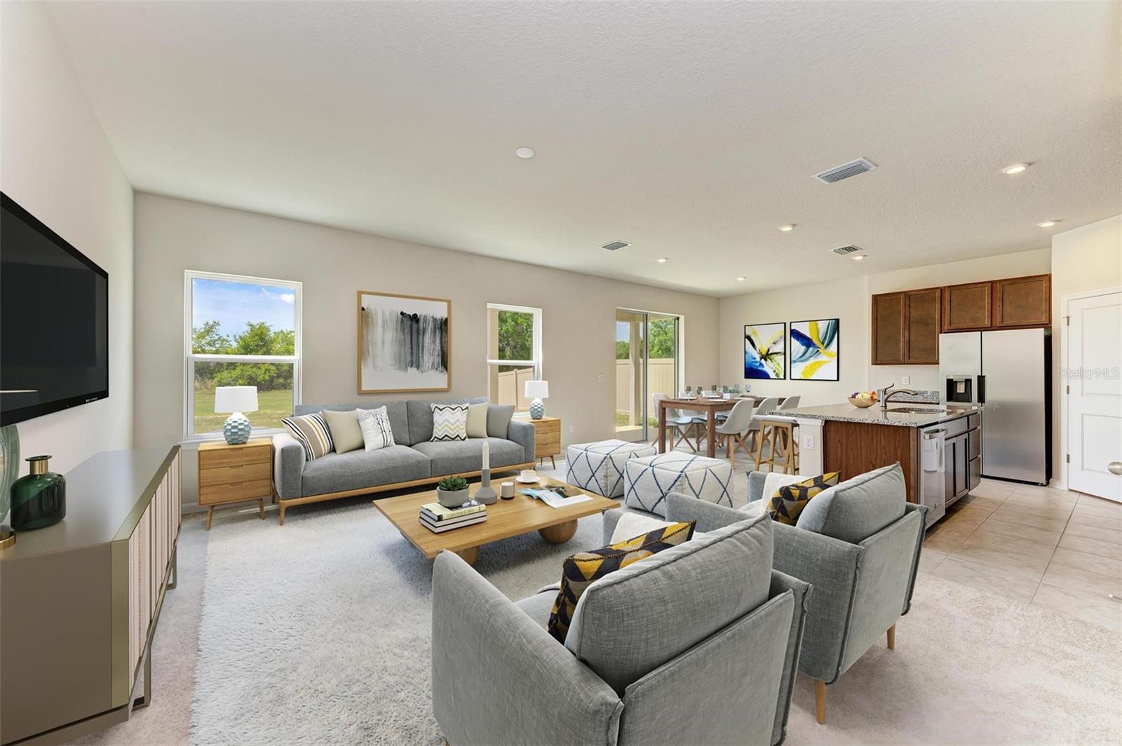 Welcome to Cypress Preserve, a thriving community nestled in Land O Lakes! This modern, brand new 2024 NEVER LIVED IN and ALL FINISHED! READY FOR IMMEDIATE OCCUPANCY home boasts 3 bedrooms, SPACIOUS LOFT, 2 1/2 baths, and a 2-car garage, spanning 2267 sq ft of well-designed living space. As you step into the foyer, you're greeted by tile flooring that guides you seamlessly through the open concept floor plan. The living room, dining area effortlessly blend into the well-appointed kitchen, featuring 42" wood cabinets crowned with molding, granite countertops, and a counter-height island with a 100% deep stainless sink and dishwasher! ALL BRAND NEW GE STAINLESS STEEL APPLIANCES INCLUDING REFRIGERATOR! Enjoy your morning coffee at the breakfast bar. A generously sized pantry provides ample storage. Sliding glass doors from the dining room lead to the OUTDOOR LIVING SPACIOUS COVERED LANAII of the large backyard for you to enjoy your Florida living!!! As you come back through tall 8 feet slider there you will find a spacious and open setup complete with great room, kitchen with large granite island, and separate dining area. There is also a powder room located downstairs for convenience. Upstairs you will find 3 bedrooms and loft, so everyone has room to hang out on the second story as well. LARGE Laundry room INCLUDING BRAND NEW WASHER & DRYER upstairs so no one has to run up and down to get a load done. The luxury continues in the spacious owners suite that leads into a double sink, restroom and large walk in closets! Lots of upgrades including WIFI-enabled garage opener and Ecobee thermostat!This coveted location falls within the highly regarded Pasco County School District. Experience the unparalleled amenities Cypress Preserve has to offer – from the zero-entry resort-style pool and inviting cabana to the off-leash dog park and playground, there's something for everyone. Take advantage of scenic walking trails, event lawn, and more. With easy access to The Shops at Wiregrass, Tampa Premium Outlets, dining and entertainment venues, cinemas, Publix, Tampa International Airport, and Florida's renowned beaches, you're never far from excitement. Low HOA & CDD, amenities include a resort style zero-entry pool, dog park, playground, and event lawn, walking trails surrounded by nature and wildlife, one of a kind homesites with conservation, wetland, and water views. Conveniently situated near I-75, SR 41, SR 52, and the Suncoast Expressway, commuting throughout Tampa Bay is effortless. Whether you crave the vibrancy of city life or the tranquility of resort-style living, Cypress Preserve offers the perfect blend. Don't miss out – schedule your appointment today and enjoy your piece of paradise!!!