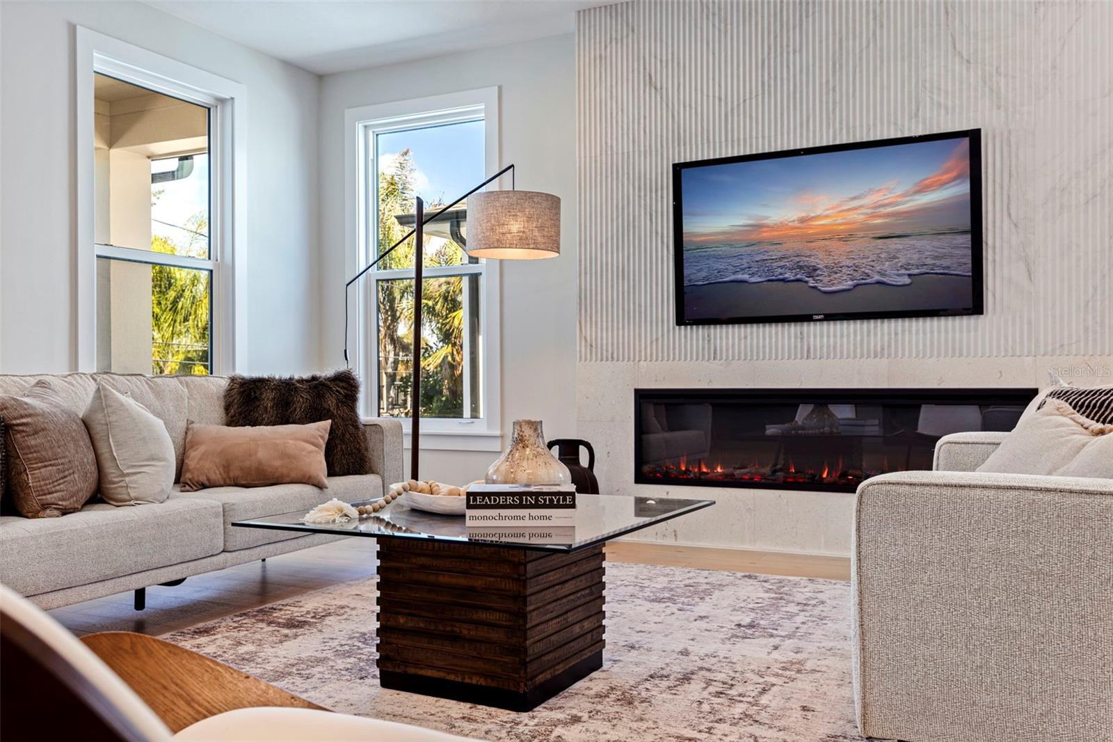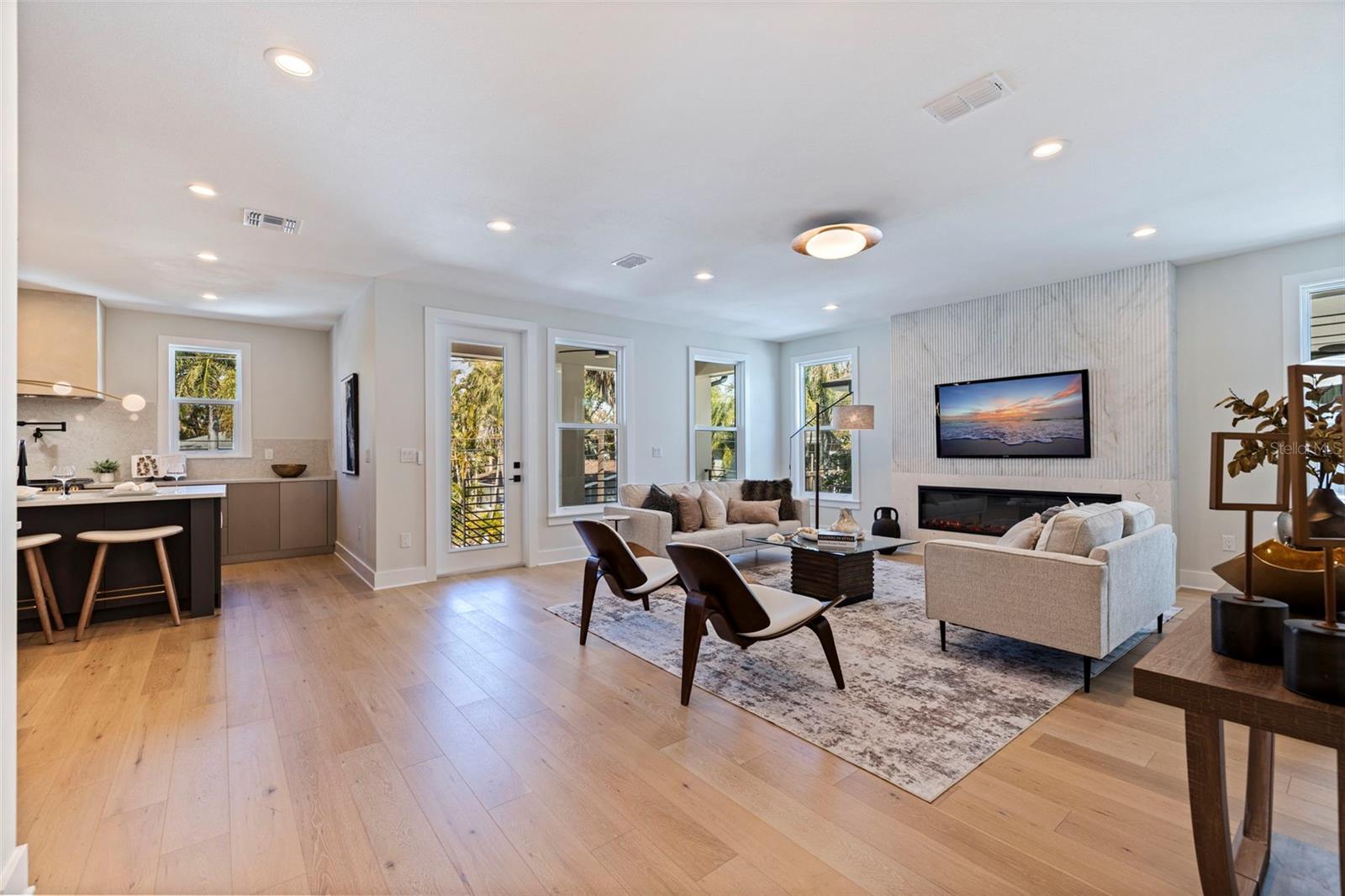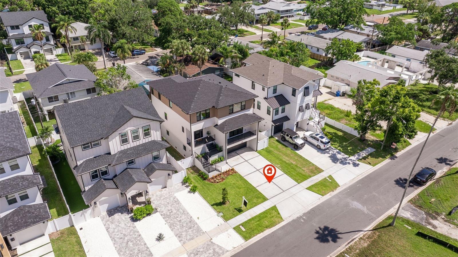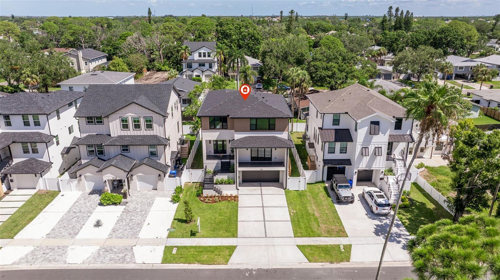 Skip the build time—this stunning new construction is finished and waiting for you to call it home! Experience unparalleled luxury and sophistication in this newly constructed masterpiece, crafted by the renowned Bay To Bay Group, a distinguished boutique builder in St. Petersburg. AFFORDABLE FLOOD INSURANCE ONLY $842 A YEAR! Nestled among other new homes in the coveted Northeast area of St. Pete, this 4-bedroom, 3.5-bathroom home with a 3-car garage and private elevator offers the ultimate in contemporary living. Enjoy the convenience of nearby serene water vistas, lush parks, the Shore Acres Recreation Center, the new YMCA, and a scenic path to Downtown St. Petersburg. The first level, built with solid block construction, features a spacious garage accommodating three cars and a golf cart, along with ample storage. The home includes dual primary suites—one on each level—showcasing modern comfort and luxury. Step into the grand great room with a fireplace, opening onto a balcony, perfect for entertaining. The expansive kitchen, with its large island, is designed for hosting gatherings, featuring sleek cabinetry, luxurious quartz countertops, and top-of-the-line GE Cafe appliances. Every detail of this home reflects the meticulous craftsmanship of the Bay To Bay Group, with engineered hardwood flooring, contemporary porcelain tiles in the bathrooms, and a dedicated laundry room. The main living area boasts 10-foot ceilings, while the upper level features 9-foot ceilings and an 8-foot front entry door with impact glass and hurricane-resistant windows. Inside, 8-foot solid doors, modern trim, chic hardware, and sleek ceiling fans enhance the sense of contemporary elegance. Take your private elevator to the third level, where the primary bedroom awaits with a covered balcony ideal for enjoying your morning coffee. The en-suite bathroom is a spa-like retreat with a spacious shower and a standalone tub with exquisite finishes. Outdoors, a covered back balcony and a covered lanai offer serene relaxation spaces, while the expansive backyard, enclosed by a vinyl fence, provides privacy and lush landscaping, complemented by an automated sprinkler system. This exceptional home not only showcases meticulous design but also champions energy efficiency with Icynene attic insulation, pre-installed low voltage wiring, efficient LED lighting, and a high-efficiency air conditioning system. Schedule a private viewing today to immerse yourself in the splendor of this idyllic property. With the opportunity for the buyer to select some finishing touches, this is a rare chance to secure your place in one of St. Pete's most esteemed waterfront communities.