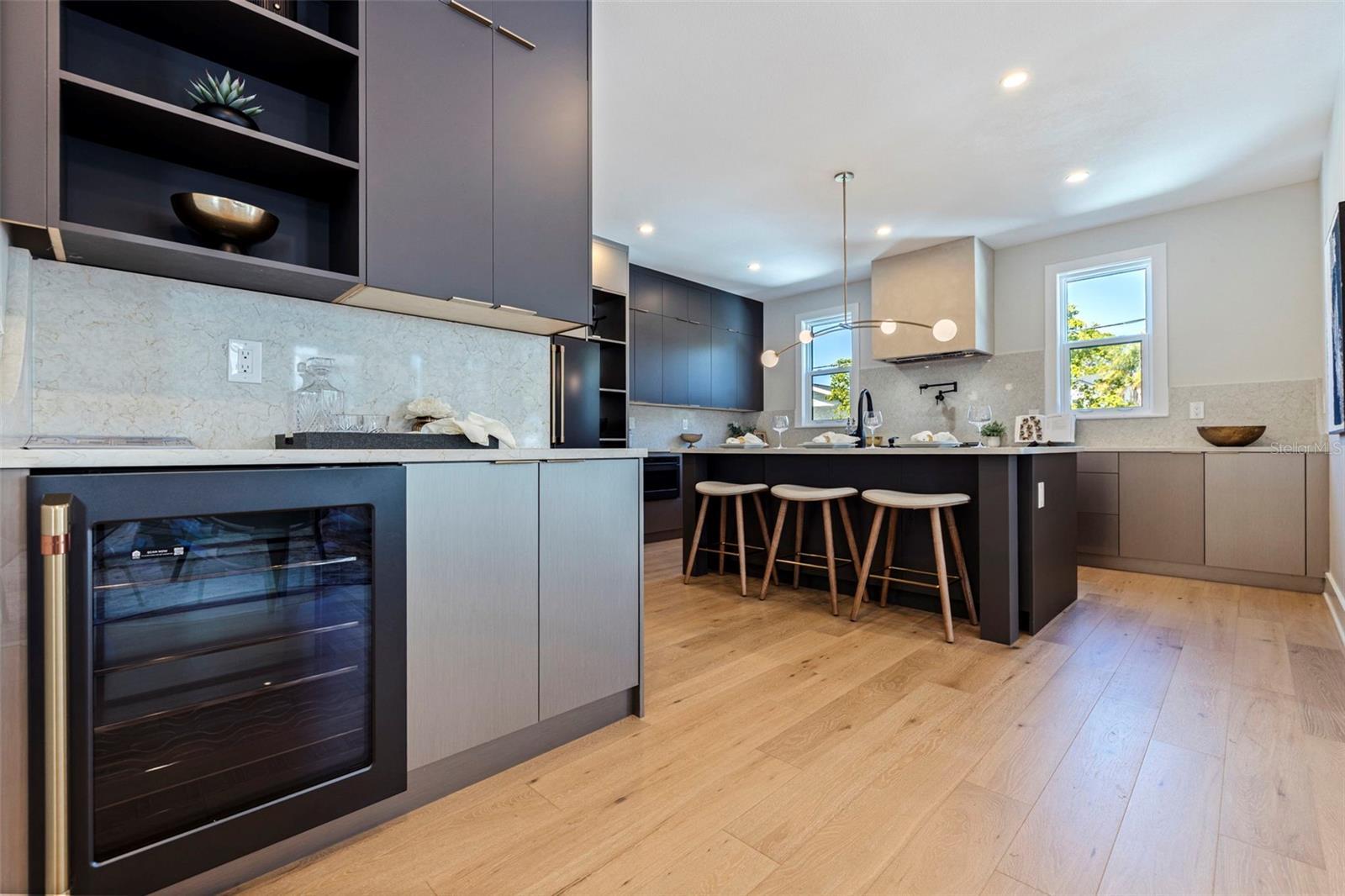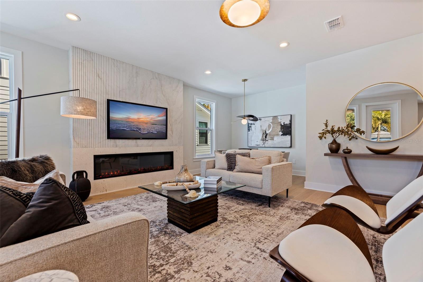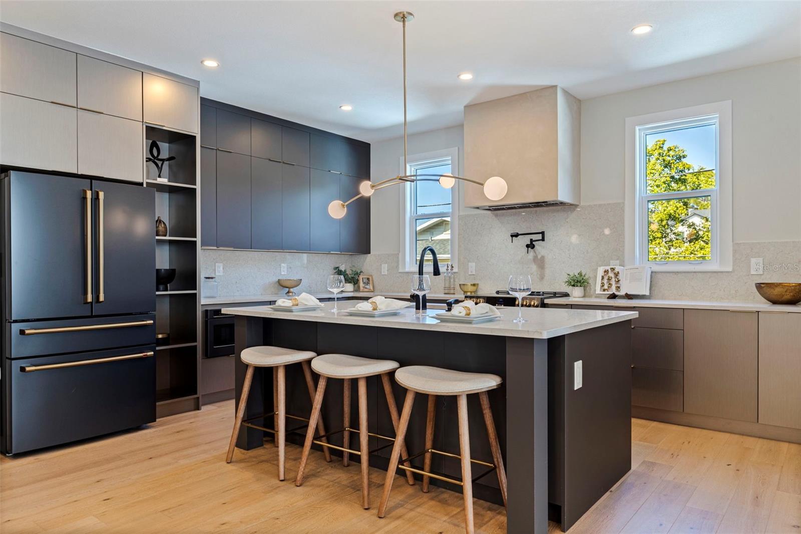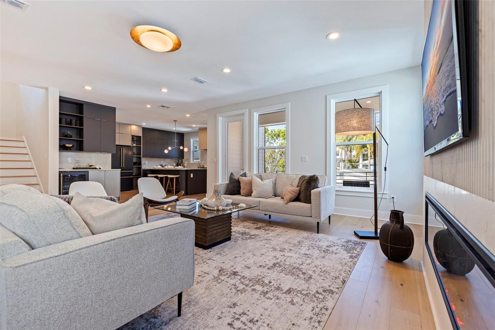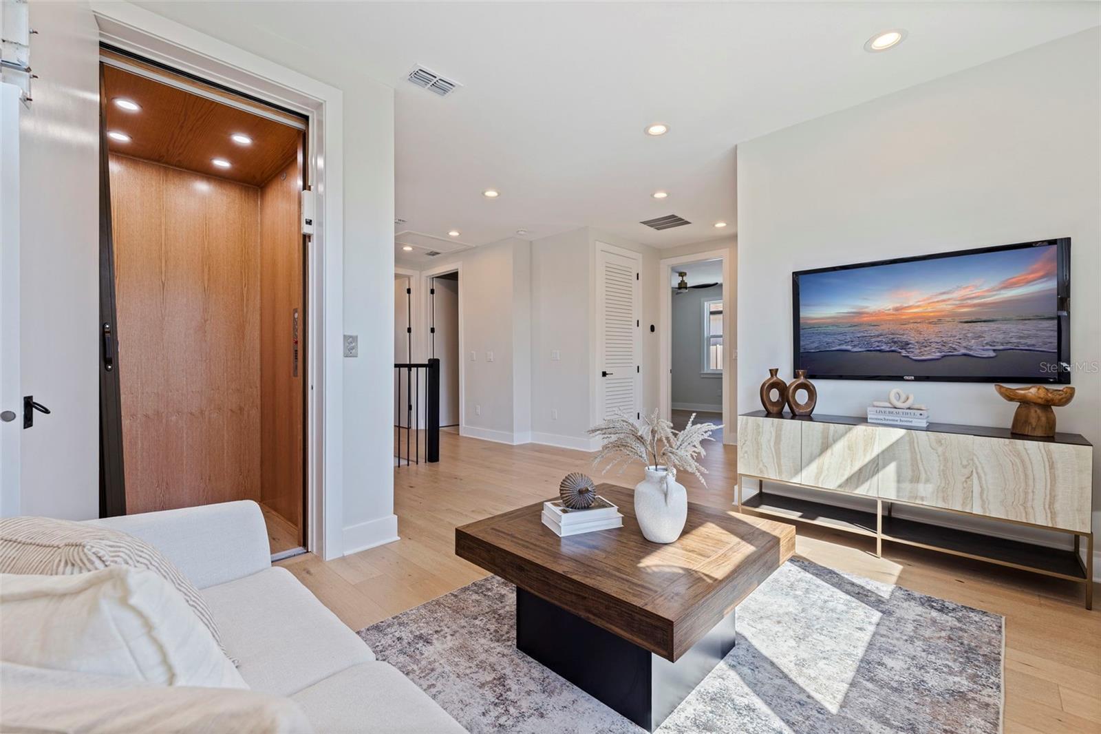 Skip the build time—this stunning new construction is finished and waiting for you to call it home! Experience unparalleled luxury and sophistication in this newly constructed masterpiece, crafted by the renowned Bay To Bay Group, a distinguished boutique builder in St. Petersburg. AFFORDABLE FLOOD INSURANCE ONLY $842 A YEAR! Nestled among other new homes in the coveted Northeast area of St. Pete, this 4-bedroom, 3.5-bathroom home with a 3-car garage and private elevator offers the ultimate in contemporary living. Enjoy the convenience of nearby serene water vistas, lush parks, the Shore Acres Recreation Center, the new YMCA, and a scenic path to Downtown St. Petersburg. The first level, built with solid block construction, features a spacious garage accommodating three cars and a golf cart, along with ample storage. The home includes dual primary suites—one on each level—showcasing modern comfort and luxury. Step into the grand great room with a fireplace, opening onto a balcony, perfect for entertaining. The expansive kitchen, with its large island, is designed for hosting gatherings, featuring sleek cabinetry, luxurious quartz countertops, and top-of-the-line GE Cafe appliances. Every detail of this home reflects the meticulous craftsmanship of the Bay To Bay Group, with engineered hardwood flooring, contemporary porcelain tiles in the bathrooms, and a dedicated laundry room. The main living area boasts 10-foot ceilings, while the upper level features 9-foot ceilings and an 8-foot front entry door with impact glass and hurricane-resistant windows. Inside, 8-foot solid doors, modern trim, chic hardware, and sleek ceiling fans enhance the sense of contemporary elegance. Take your private elevator to the third level, where the primary bedroom awaits with a covered balcony ideal for enjoying your morning coffee. The en-suite bathroom is a spa-like retreat with a spacious shower and a standalone tub with exquisite finishes. Outdoors, a covered back balcony and a covered lanai offer serene relaxation spaces, while the expansive backyard, enclosed by a vinyl fence, provides privacy and lush landscaping, complemented by an automated sprinkler system. This exceptional home not only showcases meticulous design but also champions energy efficiency with Icynene attic insulation, pre-installed low voltage wiring, efficient LED lighting, and a high-efficiency air conditioning system. Schedule a private viewing today to immerse yourself in the splendor of this idyllic property. With the opportunity for the buyer to select some finishing touches, this is a rare chance to secure your place in one of St. Pete's most esteemed waterfront communities.